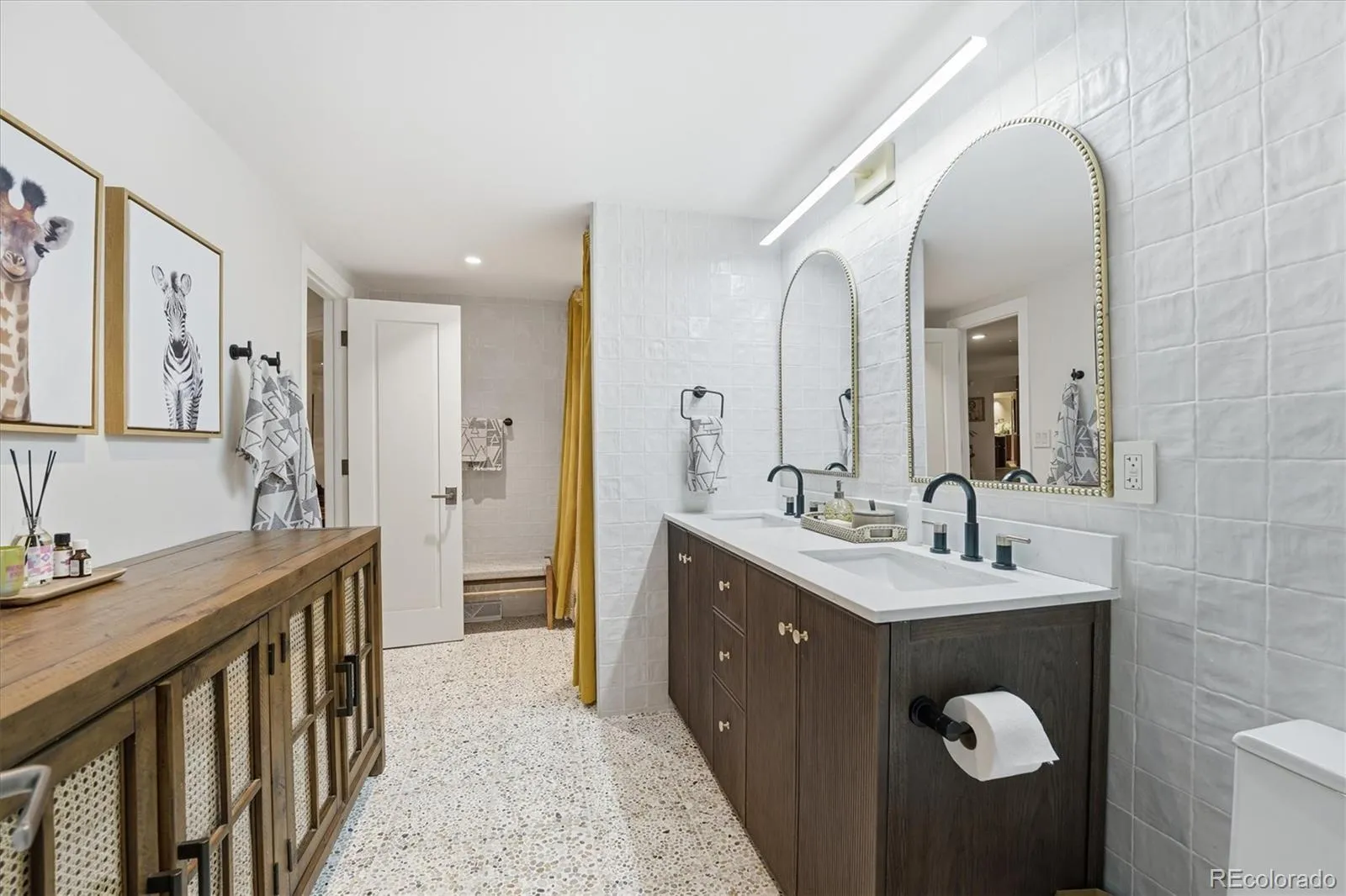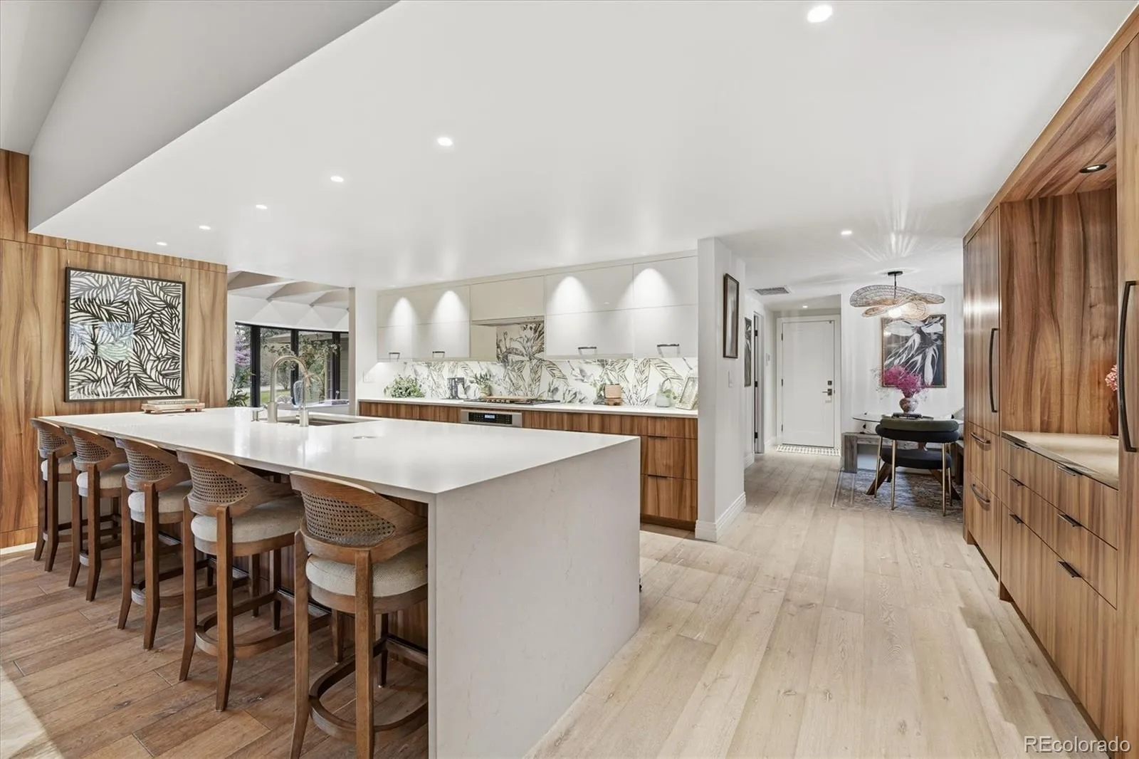 From the moment you step inside, this fully updated mid-century gem captivates with its striking design and elevated finishes. Nestled in the coveted community of Bow Mar, this thoughtfully reimagined ranch blends timeless architecture with a high-end, custom renovation—creating a warm, intimate, and sophisticated retreat. Captivating open-concept living, dining, and kitchen space. Vaulted ceilings, wire-brushed white oak floors, and a bespoke gas fireplace set the tone, while expansive floor-to-ceiling windows seamlessly connect indoor and outdoor living. At the heart of the home, the kitchen is both functional and stunning—featuring quartz countertops, premium Thermador and Liebherr appliances, custom cabinetry, and a large waterfall island designed for both daily living and entertaining. A separate, spacious family room offers additional living space, anchored by a beautiful wood-burning fireplace and filled with natural light—perfect for relaxing or gathering. The bedroom wing features a primary suite, plus three additional bedrooms. Set on a .77-acre lot, the outdoor space is a true sanctuary. Mature landscaping and thoughtful positioning of the home create exceptional privacy—perfect for relaxing or hosting gatherings. Residents enjoy access to top-rated public schools and proximity to prestigious private institutions, including Colorado Academy, Mullen, and Denver Christian. Life in Bow Mar is truly special. This unique community centers around a private 100-acre lake, offering year-round recreation—from swimming, paddleboarding, and sailing in the summer to ice skating in the winter—along with tennis, swim teams, and community events. This is more than a home—it’s a lifestyle defined by comfort, design, and lakeside living.