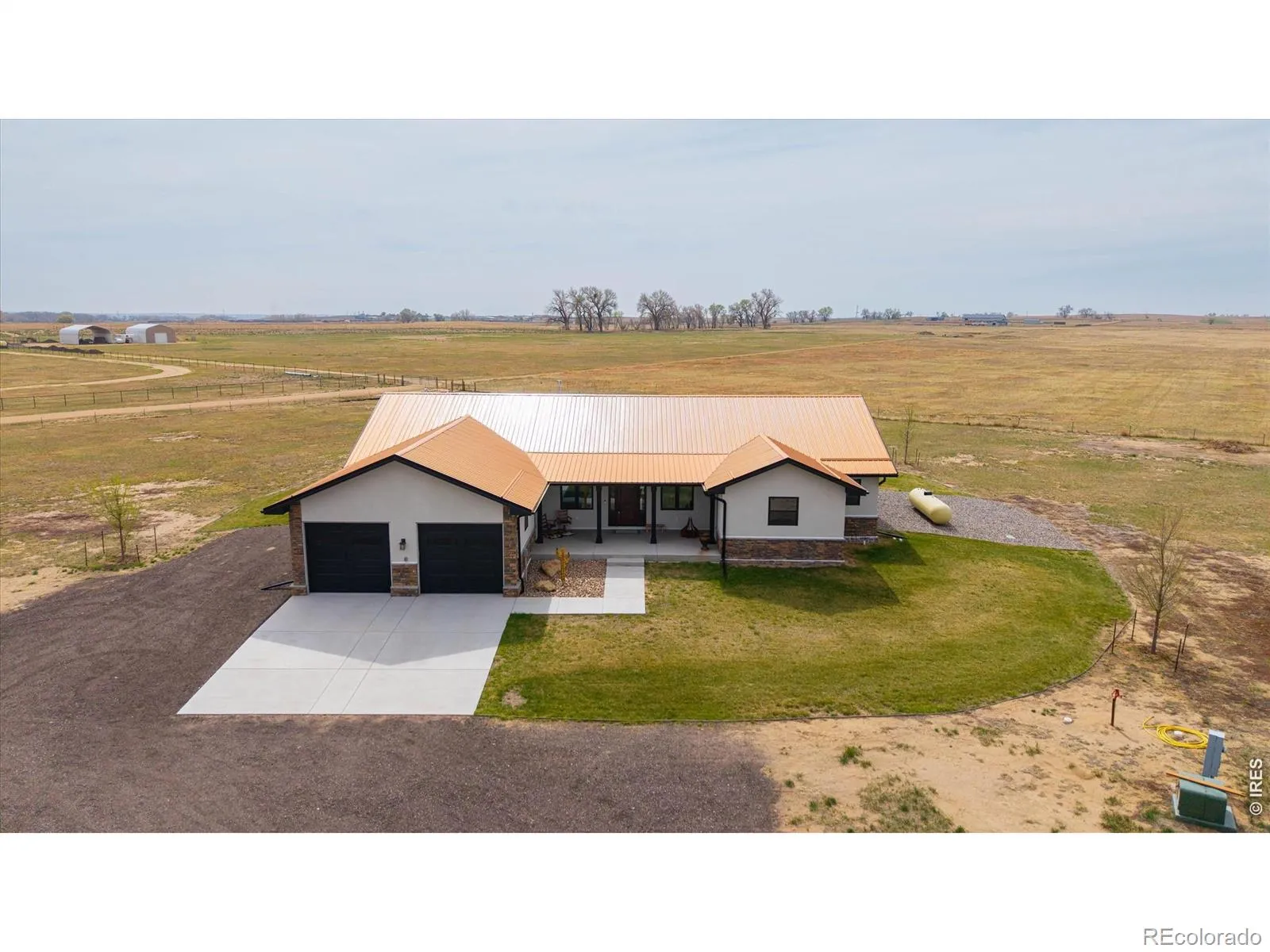 Custom and like brand new ranch style home situated on 10+/- acres located just outside of Frederick! This 3248 sq ft stucco /stone 3 bedroom 3 bath home features 8 ft knotty alder doors, custom cabinetry, walk in pantry, stainless appliances, granite countertops, kitchen island, ample storage, office with barn doors, huge laundry area, finished garage, Stone gas fireplace, on demand water heater, wet bar with refrigerator and ice machine, very open floorplan, surround sound, covered patio and outdoor living area, walk in closets, and so much more! Shop/barn with 14 foot overhead door, pipe runs, 4 stalls, automatic waterers, Apartment/office with laundry area 3/4 bath and kitchen. Pastures fully fenced and cross fenced. There is no work to be done just move in! Has Fort Lupton address but is west of HWY 85 and just outside Frederick limits.