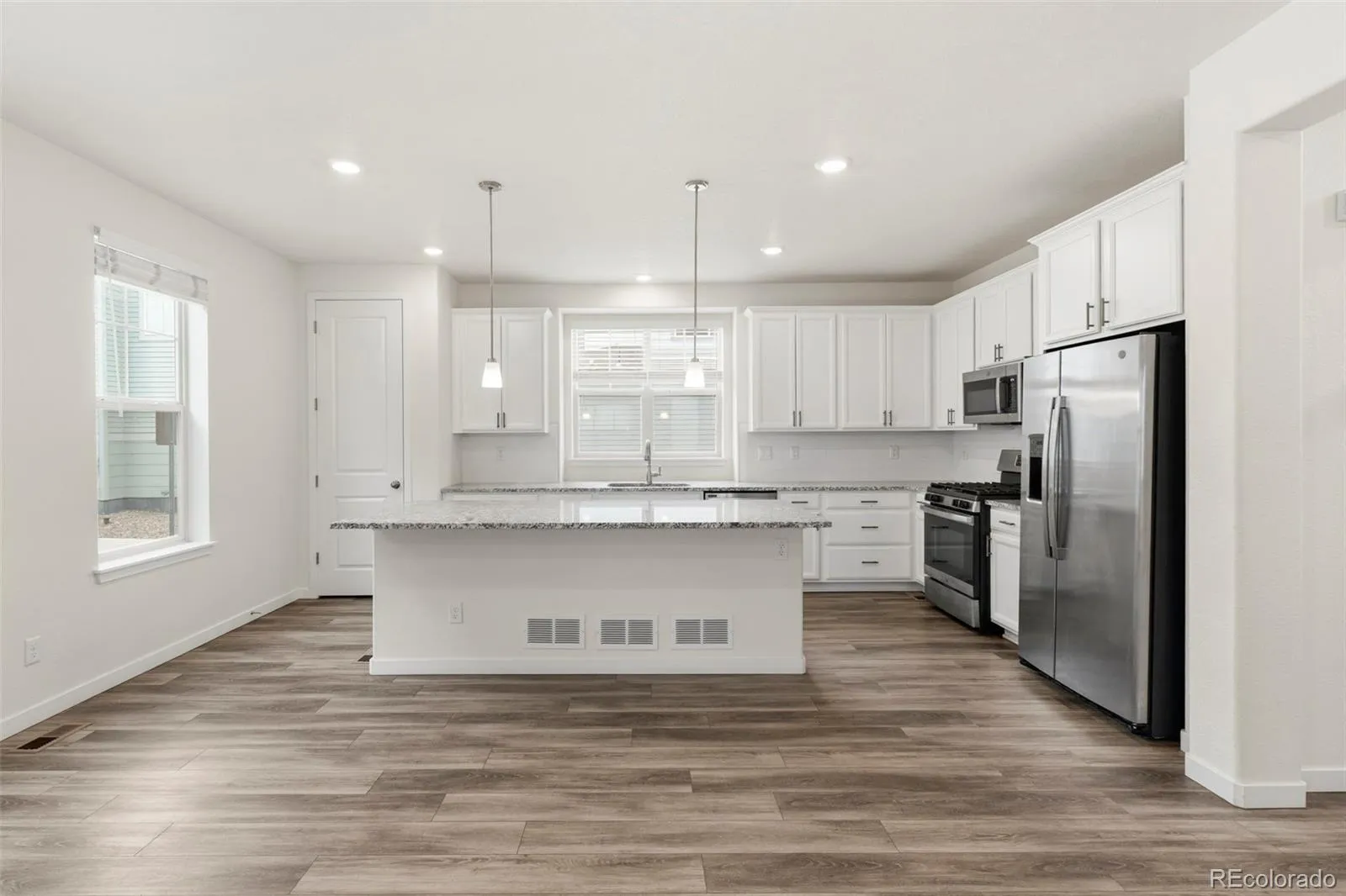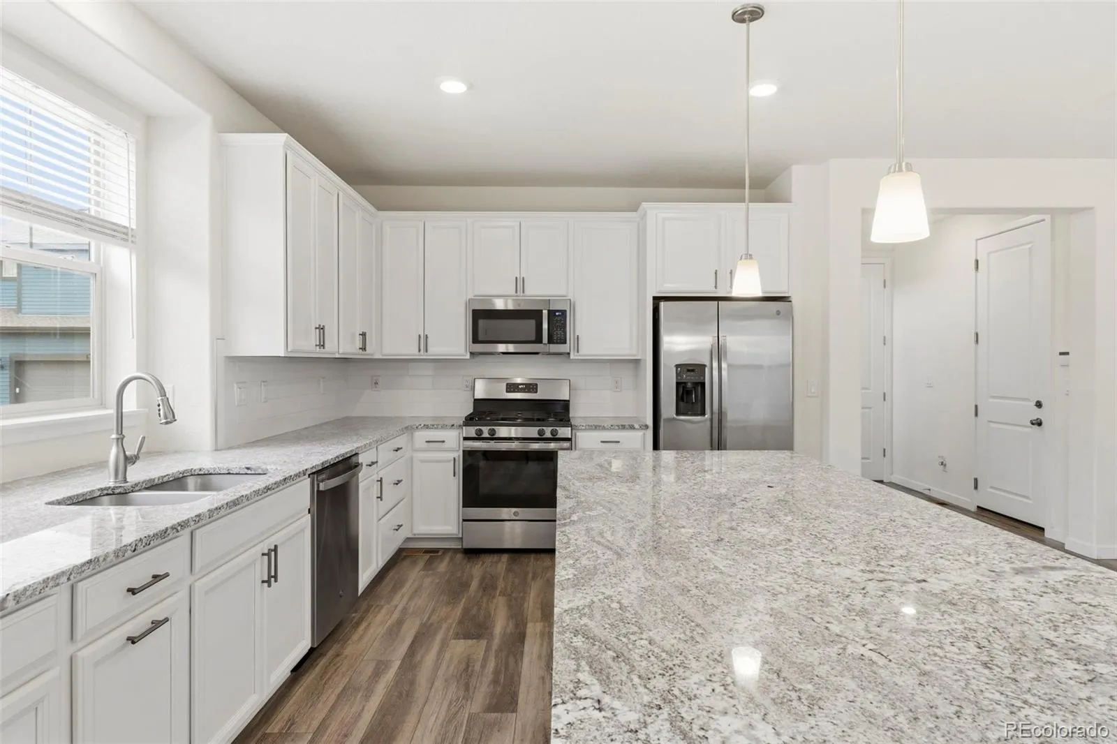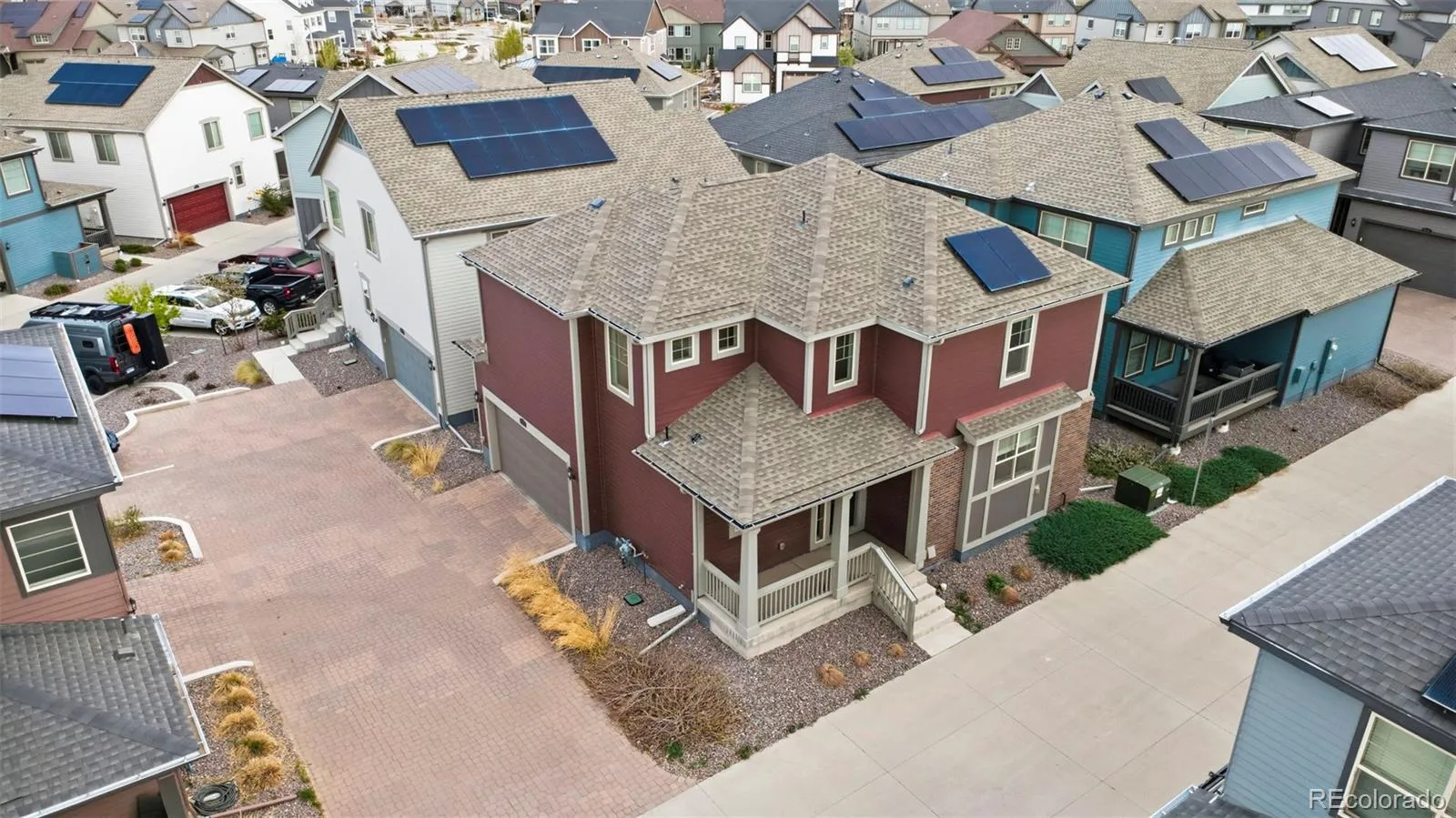 Beautiful, low-maintenance home in the award-winning community of Sterling Ranch. An inviting front porch welcomes you into a spacious entry with a convenient guest bath just off the front door. The main level features a stunning kitchen with a large eat-in island, white cabinetry, stainless steel appliances, granite countertops, and a generous pantry. Additional main-floor storage includes space under the stairs and a large crawl space. The kitchen flows seamlessly into the dining and living areas, creating an open and functional layout that extends to a covered porch for easy indoor-outdoor living. Upstairs, you’ll find all three bedrooms, a spacious laundry room, and brand-new carpet throughout. Additional highlights include an attached two-car garage and smart home technology with fiber internet for fast streaming and downloads, along with programming capabilities for security, irrigation, temperature control, lighting, and more. Residents of Sterling Ranch enjoy exceptional community amenities, including a clubhouse, pool, newly opened pickleball courts, fitness center, parks, playgrounds, local hiking trails, and close proximity to Chatfield State Park and Roxborough State Park. A coffee shop and brewpub are also just a short distance away. HOA fees, and all the amenities, are