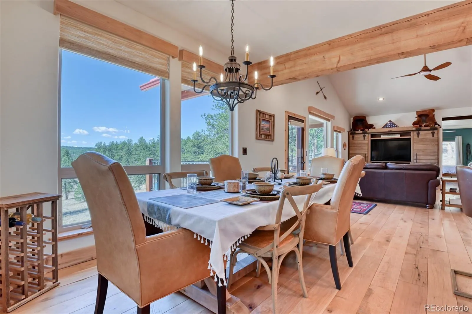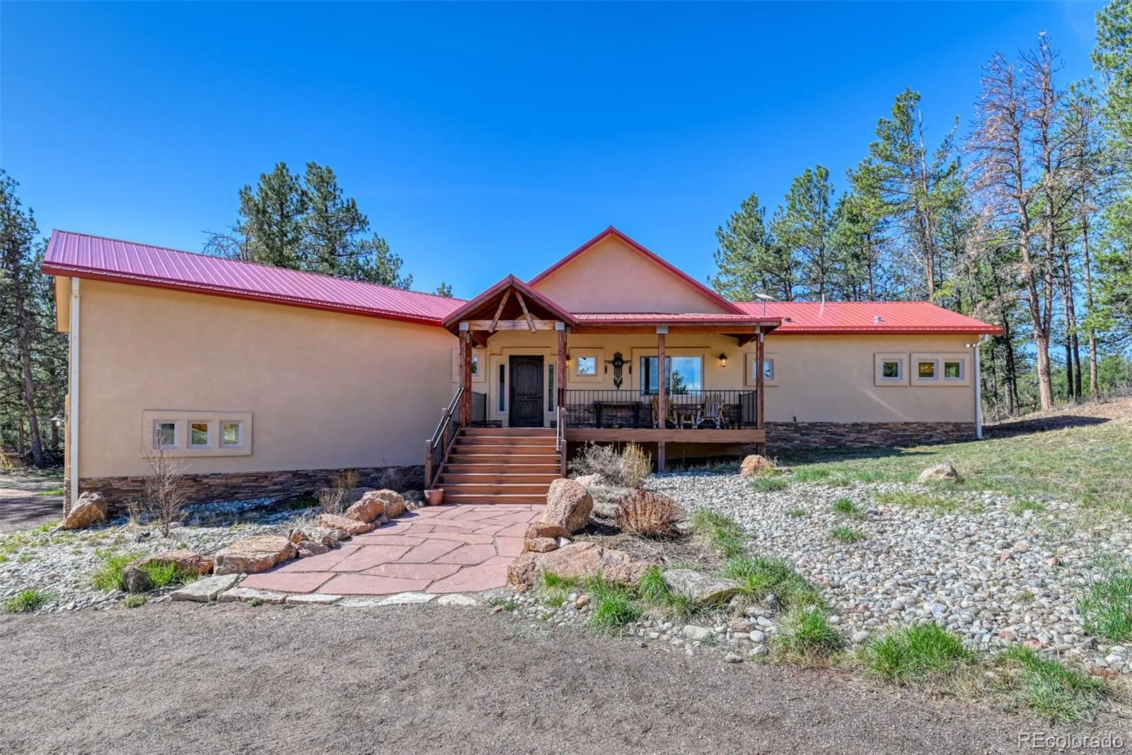 his spectacular fully remodeled home directly borders Pike National Forest! Located on 48+ acres, 5 miles from Lake George, accessed off a paved road this well appointed home w/ rich wide plank natural white oak floors, gourmet kitchen w/ custom hand made cabinetry, quartzite leathered countertops and top of the line appliances. Enjoy main level living w/ gorgeous views all around! Large master suite, beautiful spa bathroom and spacious closet for a true mountain retreat. An open floor plan w/ vaulted ceilings, large windows and expansive covered deck. The walk-out lower level features a family room, fireplace & wet bar complete w/ beverage refrigerator. Bonus room located next to ¾ bathroom that can serve as a 4th bd/office & laundry rm with 2nd washer and dryer w/plenty of storage. Equestrian Friendly ~ Fenced, Cross Fenced, Gated so set up for immediate use for horses. The large pole barn has a workshop, staging area for horses w/metal siding/roof, electric, water, drive through doors 9’W x 10’H (may accommodate RV), concrete pad, 8’ covered staging area for saddling and grooming, designed for (3) 12’x12’ stalls w/ dutch doors, & 12’x12’ tack room. In addition to the oversized 4 car garage, storage shed is located next to the new chicken coup. This is a prime location in the beautiful Tarry River Valley, with amazing access to recreation for miles around – yet only minutes to Lake George and an easy drive to Colorado Springs or the ski resorts. High speed internet available with Starlink. Recreational opportunities include fly fishing on Tarryall Creek less than one mile away, boating and fishing nearby at Eleven Mile Reservoir, Tarryall Reservoir, extensive hiking & off-roading throughout the area, as well as rock climbing, and enjoying wildlife. Already set up for short term rentals. Both COS/Denver Airports only 1-1.5 hrs. This low maintenance home w/ metal roof, stucco/stone, composite decks, natural landscaping is a must see!