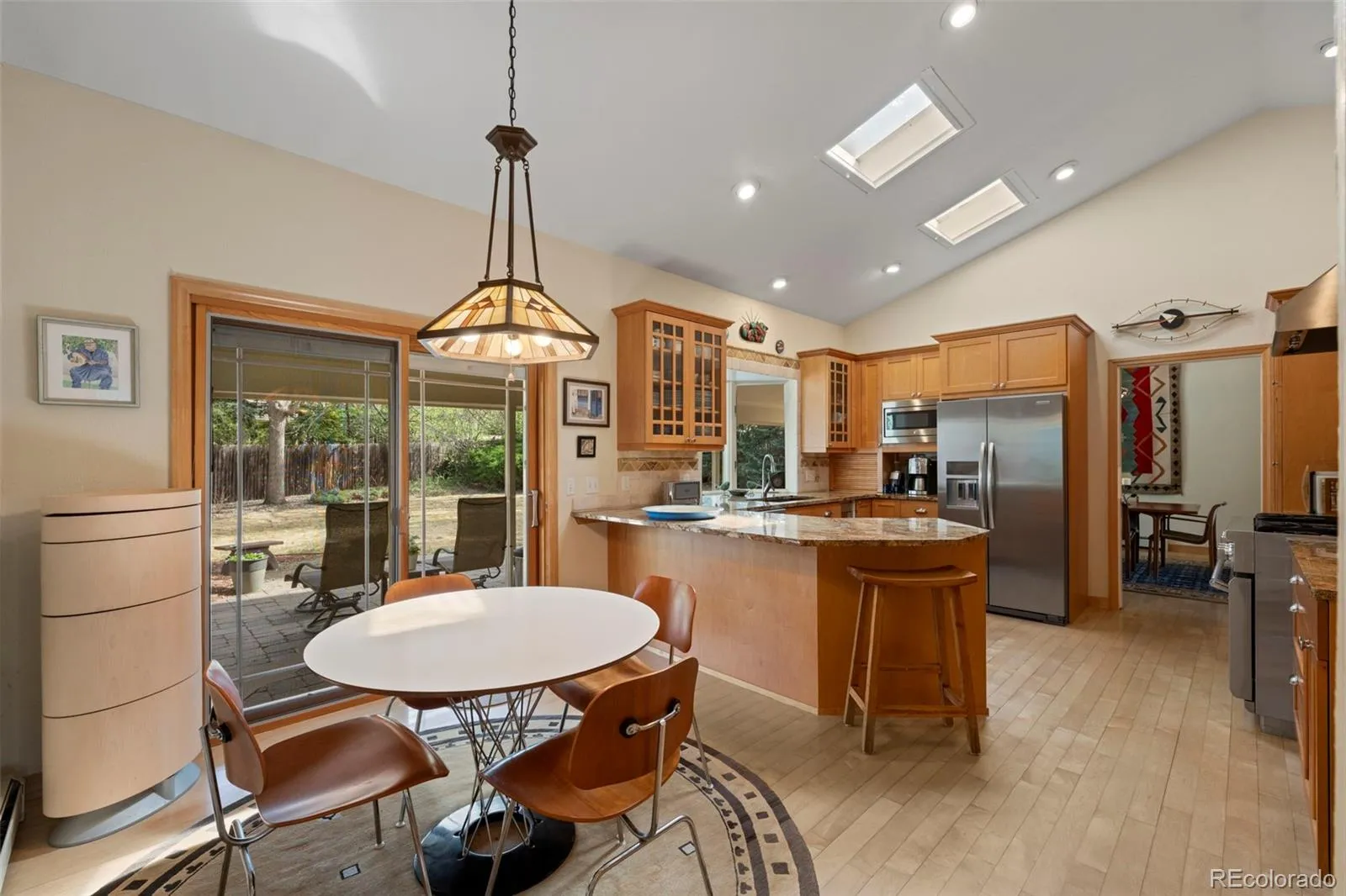 Set at the end of a secluded cul-de-sac on a beautifully landscaped .42 ACRE lot, this spacious split-level home offers privacy, mature trees, and a gorgeous backyard with a peaceful, park-like setting. Inside, a bright and welcoming living room with vaulted ceilings creates an airy first impression and flows seamlessly into the dining area-perfect for both everyday living and entertaining. The eat-in kitchen is thoughtfully appointed with maple cabinetry, slab granite countertops, and stainless appliances, including a 36″ Thermador Pro gas range w/ griddle & warming trays. A cozy breakfast nook overlooks the backyard. The upper level features 3 generously sized bedrooms, including a comfortable primary suite with walk-in shower and dual vanity. Two additional bedrooms share a full bath. On the lower level, a warm and inviting family room features a brick fireplace and is complemented by a custom wet bar with stylish backsplash, and beverage & wine fridges-an ideal space for relaxing or hosting. This level also includes a 4th bedroom with an adjacent bath, perfect for guests or multi-generational living, as well as a private office or optional fifth bedroom. The finished basement expands the home’s versatility, offering flexible space with built-in shelving for a media room, game room, home gym, or creative studio. Outdoors, enjoy a covered patio, a tranquil water feature, and an expansive backyard with plenty of room for recreation, pets, or quiet enjoyment. Conveniently located near Gunbarrel’s trails, dining, shopping, and breweries, and just minutes from Boulder Country Club, this home combines space, setting, and accessibility in one of Boulder County’s most established communities. Choose between Boulder and Fairview High School.