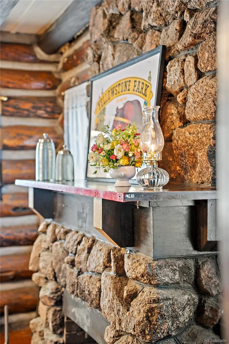 and inviting interior anchored by a classic wood-burning fireplace, rustic wood finishes, and timeless character throughout.