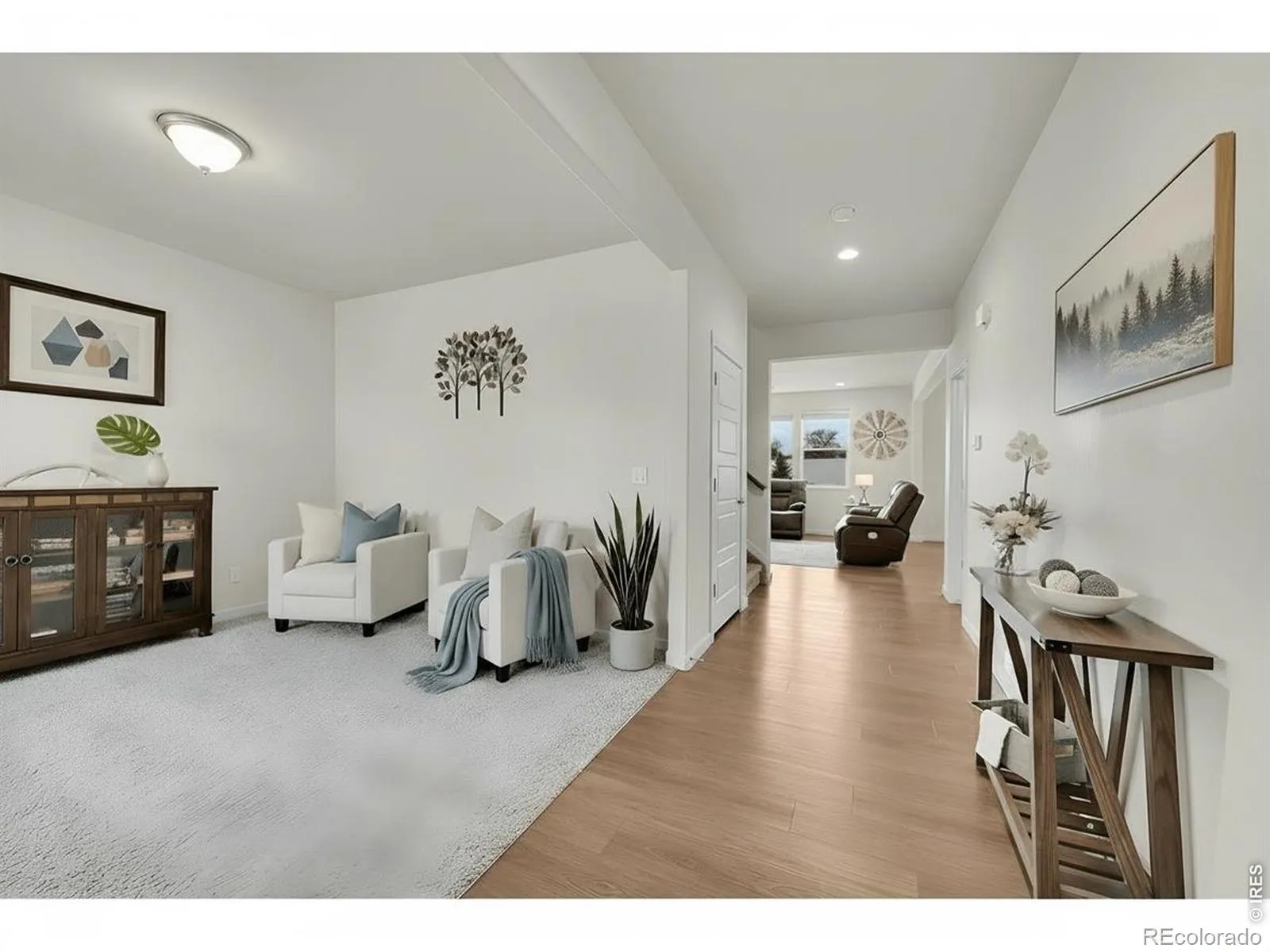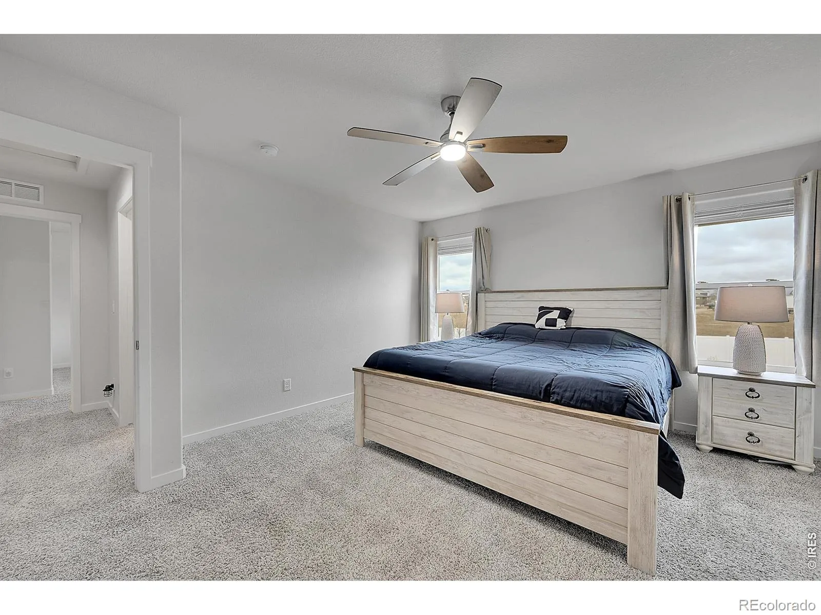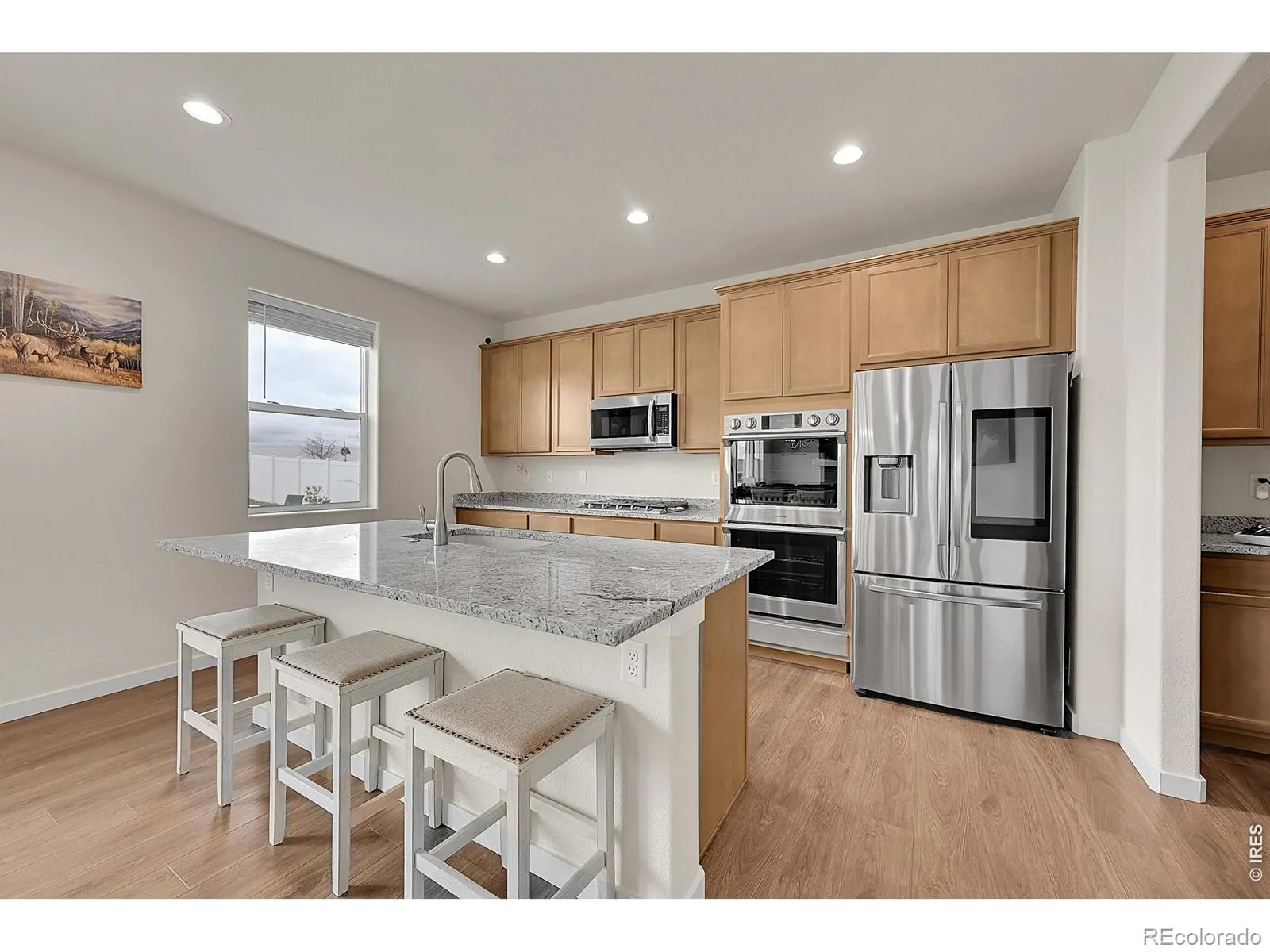 The Meadow Porch House. Perfectly placed in a quiet, friendly neighborhood, this inviting home welcomes you with a xeriscaped front yard and a charming front porch made for slow mornings and evening unwind time. Inside, the open kitchen-family-dining layout creates effortless flow for everyday living and entertaining. The kitchen is a standout with a breakfast bar, gas range with dual ovens, granite countertops, and a generous walk-in pantry. The backyard is truly exceptional-expansive, private, and framed by beautiful mountain views. Backing to open farmland, it offers a serene sense of space rarely found nearby. An attractive permeable paver patio sets the stage for outdoor dining, gatherings, and Colorado sunsets. Upstairs, two secondary bedrooms feel bright and spacious with large closets and natural light. The primary suite captures more of those mountain views and features a massive walk-in closet and a luxe en-suite bath. An unfinished basement offers incredible storage and future potential. With easy access to I-25 and everyday conveniences just minutes away, this is a special opportunity to enjoy comfort, views, and room to grow-all in a coveted location.
