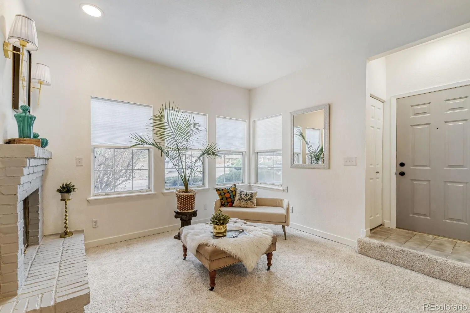 Inside, the thoughtfully renovated interior shines with modern upgrades throughout. The inviting living room features brand new carpet, recessed lighting, and a cozy wood-burning fireplace. The stylish galley kitchen is designed to impress, showcasing white shaker cabinets, lighted floating shelves, butcher block countertops, a classic subway tile backsplash, new stainless steel appliances, and under-cabinet lighting. Just off the kitchen, a bright and versatile flex space with floating shelves is ideal for a home office, coffee bar, or entertaining nook.