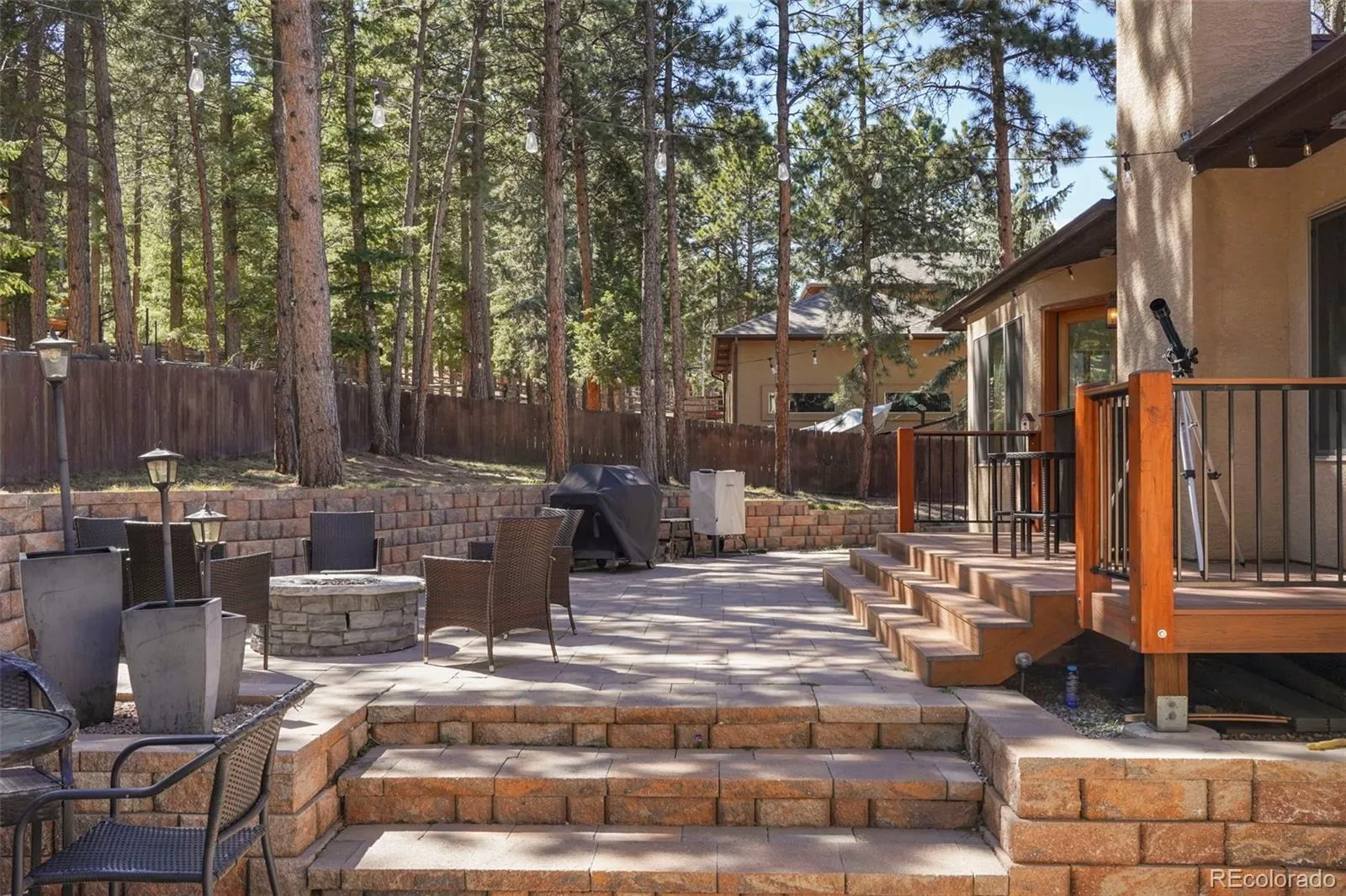 Beautiful mountain home in the pines of Woodland Park, CO. This property offers 3,532 square feet of living space, featuring 5 bedrooms and 3.5 bathrooms. The home is designed for comfortable main-floor living, highlighted by a primary suite that includes a walk-in closet, an attached bathroom, and a walk-out to the back patio. The main floor interior also boasts a cozy fireplace and a bright, inviting kitchen and dining space with another walk-out to the patio. Two additional bedrooms, a full bathroom, a half bathroom, and a laundry room round out the main floor. The garden-level basement contains two generous sized bedrooms and a large family/rec room complete with a wet bar. The home provides ample closet storage space and a 3-car, heated garage. One of the standout features of this property is the outdoor living area. The back patio and deck were added under current ownership and include composite decking and a large, bi-level paver patio and hot tub. For added convenience, there is a gas line connected to the outdoor grill, smoker, and firepit. The backyard is very private, as it borders larger lots and provides a pristine setting for wildlife viewing. Additionally, the home is within walking distance to the local amenities of Woodland Park.