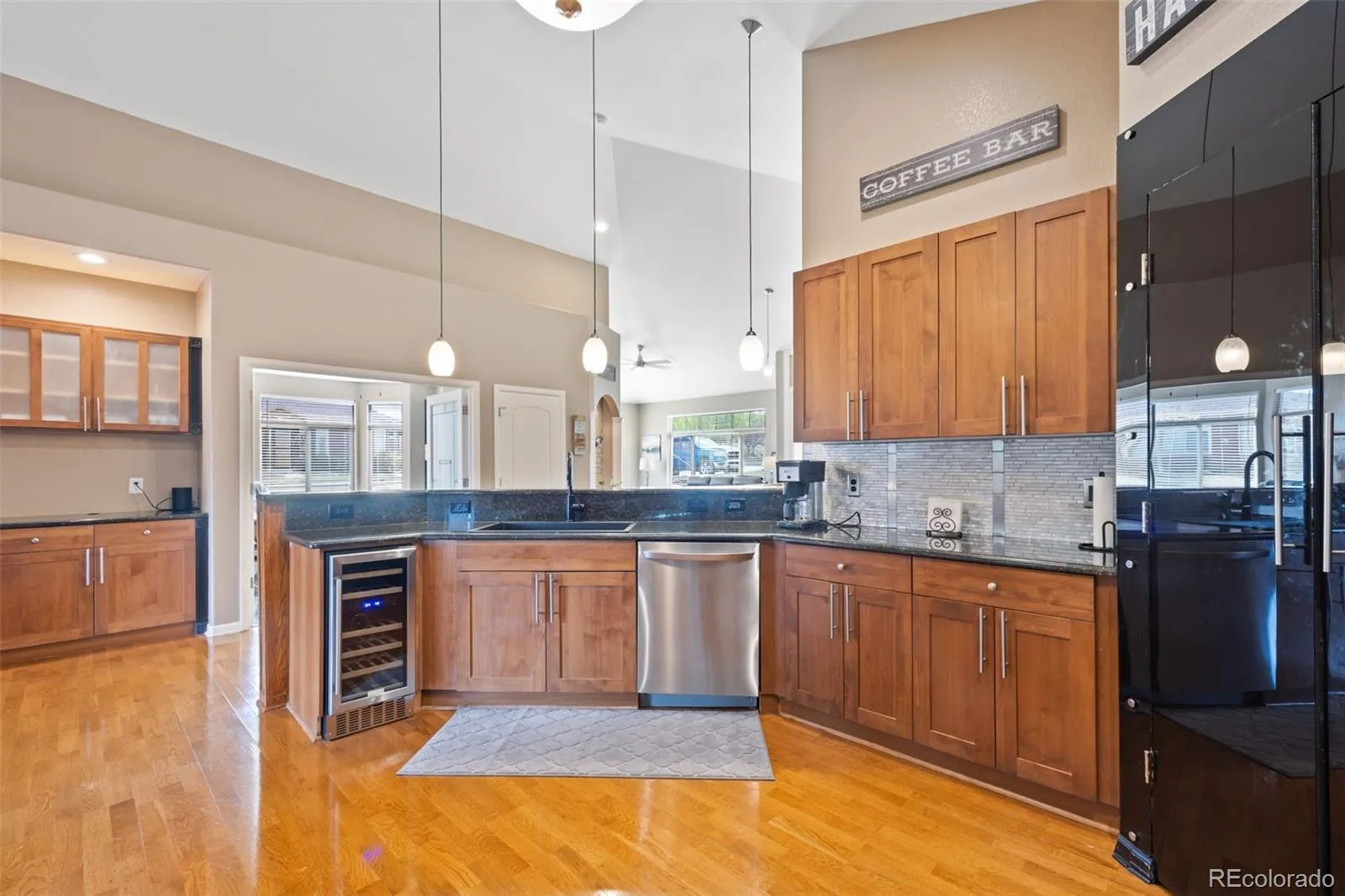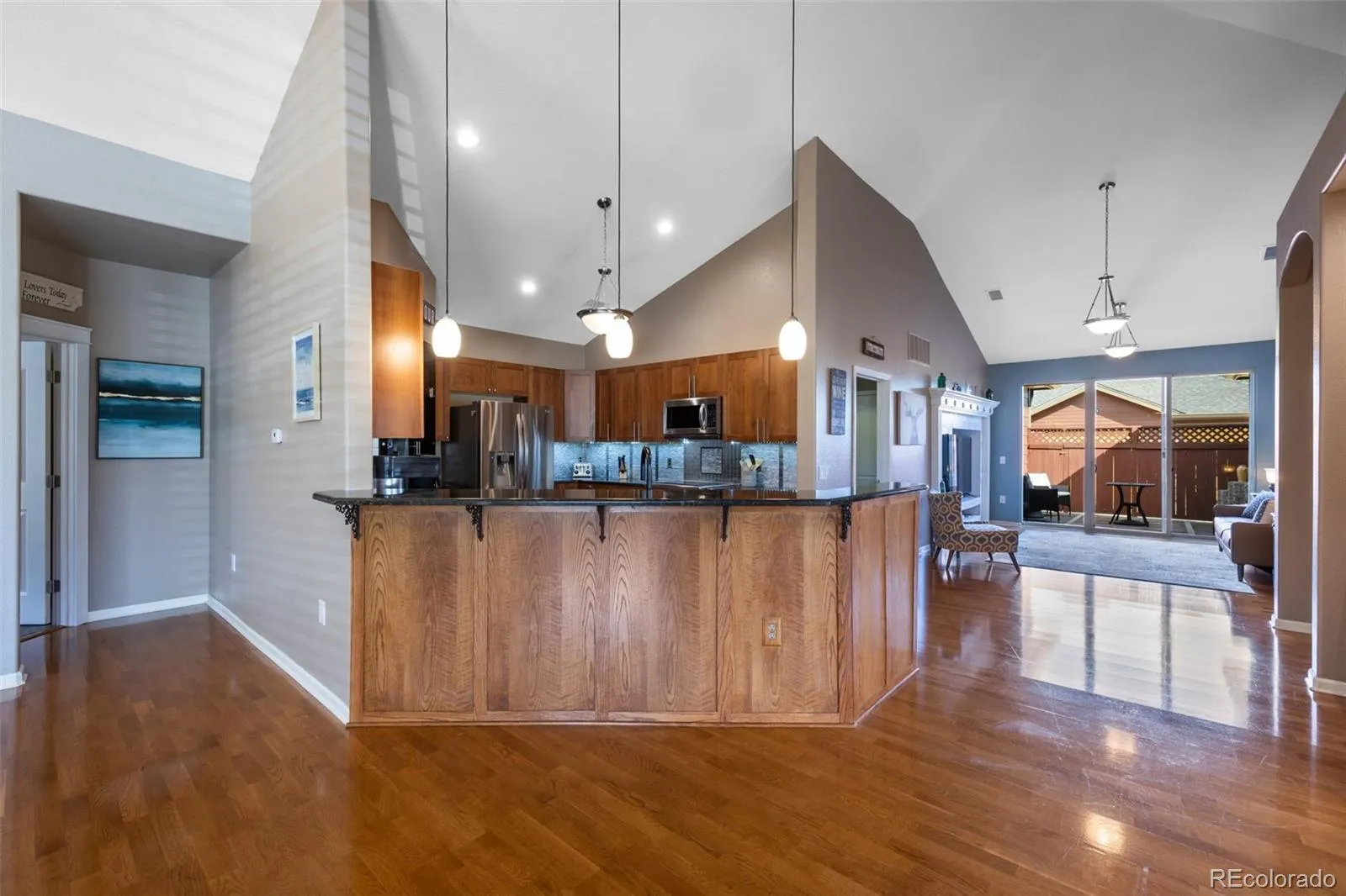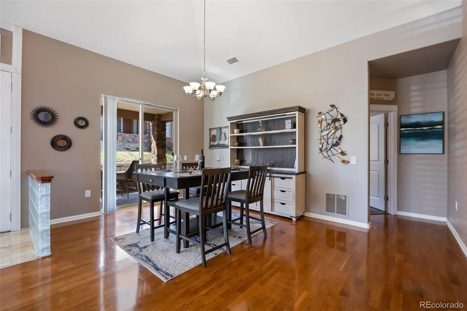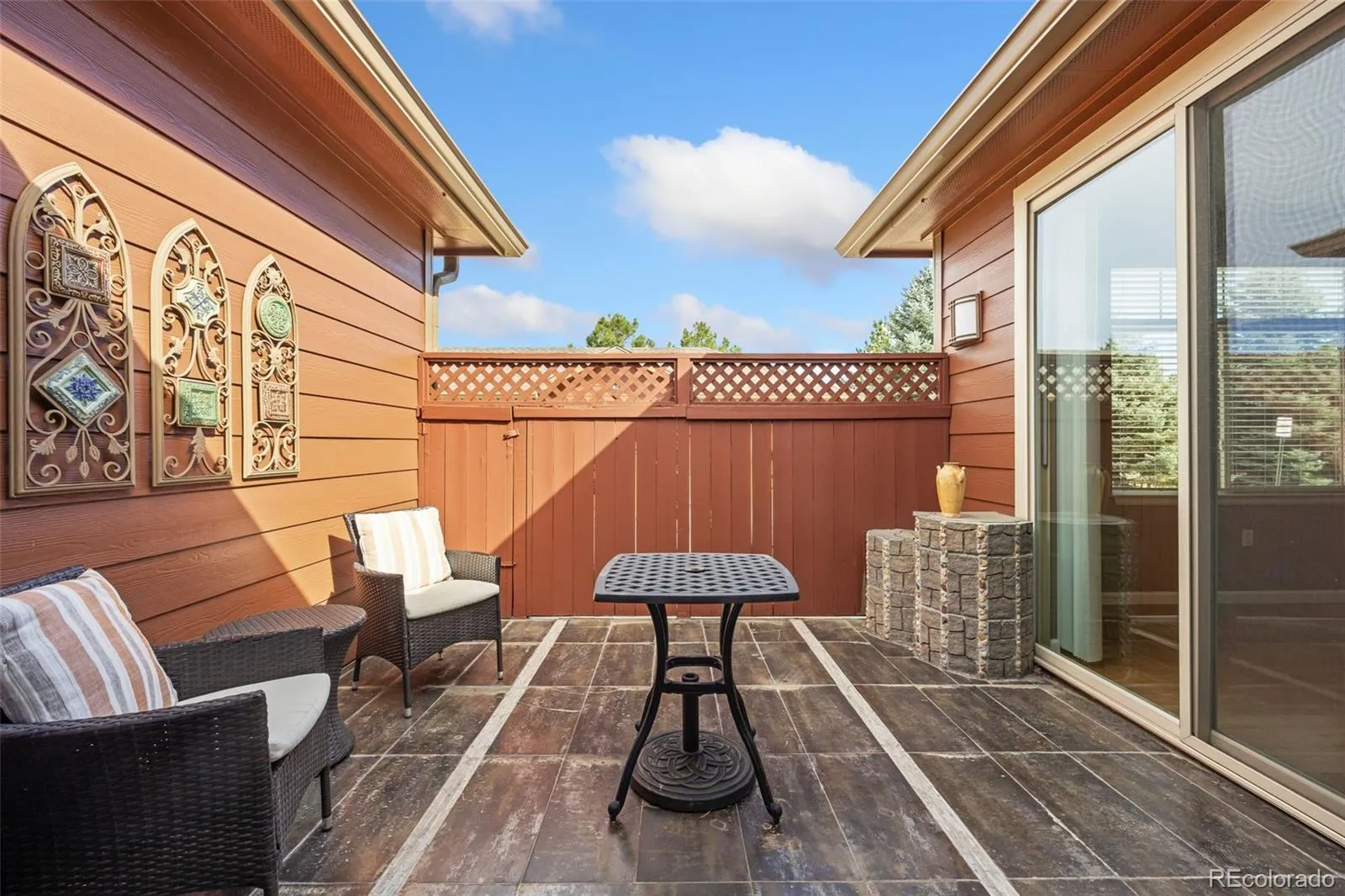 SINGLE-FLOOR LIVING + 3-CAR GARAGE IN PALOMINO PARK! A rare combination in Gold Peak, this Crestolita Peak Model is usually in an A Unit position, and offers over 2,400 sq ft of beautifully updated, light-filled living space. A dramatic foyer sets the tone with marble tile, decorative inlay, glass block accents, and a lighted art niche. The open layout is filled with natural light, soaring vaulted ceilings, and rich wood flooring throughout. The inviting living room features a cozy gas fireplace with tile surround and built-in entertainment niche, flowing seamlessly into the dining area with a custom chandelier and covered patio access—ideal for indoor/outdoor Colorado living. The chef’s kitchen showcases 42” alder cabinets, granite counters, custom backsplash, stainless steel appliances, a wine cooler, pendant lighting, and a breakfast bar. The primary suite offers private patio access, a bay window, a custom fireplace surround, and a spa-like bath with dual undermount sinks, granite counters, Pfister fixtures, a walk-in jetted tub, an updated shower, and a walk-in closet. Additional highlights include a versatile office/bedroom with black onyx marble tile, a spacious family room with built-ins, a conforming bonus bedroom with patio access, and a beautifully updated guest bath with ogee-edge granite. Oversized laundry with wet sink, granite folding station, LG washer/dryer, and direct garage access. Rare 3-car garage (2 attached + 1 detached). Enjoy gated, resort-style amenities including fitness center, pools, tennis, pickleball, trails, and more—all minutes from shopping, dining, light rail, and top-rated Douglas County schools. Please visit our Virtual Tour for Detailed Information. https://www.tourfactory.com/3240604. Please consider showing my other two listings during your visit. MLS #6201401 & MLS #6200727. Thank you!