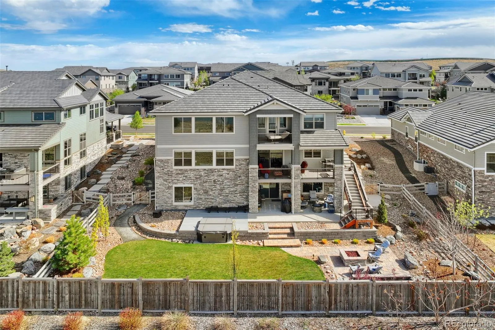 Built in 2021 with custom finishes and designer touches throughout, this home was crafted with both style and function in mind. The sun-filled main level features stained beams, a natural stone fireplace, updated lighting, and an open-concept layout that flows beautifully into the chef’s kitchen. Designed to impress, the kitchen includes stainless steel appliances, a six-burner range, dual ovens, and a large island perfect for gathering and entertaining. A main-level bedroom or office with a full bath, plus a powder bath and mud room, add flexibility and convenience. Upstairs, the luxurious primary suite is a true retreat, complete with sweeping views, abundant natural light, and private deck access. The spa-like primary bath offers an oversized shower, soaking tub, and dual vanities. Three additional bedrooms include a private en suite and a well-appointed Jack-and-Jill layout, along with an upstairs laundry room for added ease. The finished walk-out basement is built for entertaining, with a full wet bar, theater setup, expansive rec space, and a sixth bedroom for guests or multigenerational living. Outside, the extended deck creates the perfect setting to unwind or entertain, featuring a built-in hot tub, gas fire pit, and plenty of room to enjoy the spectacular surroundings. This home checks every box for luxury living in Anthem Estates.