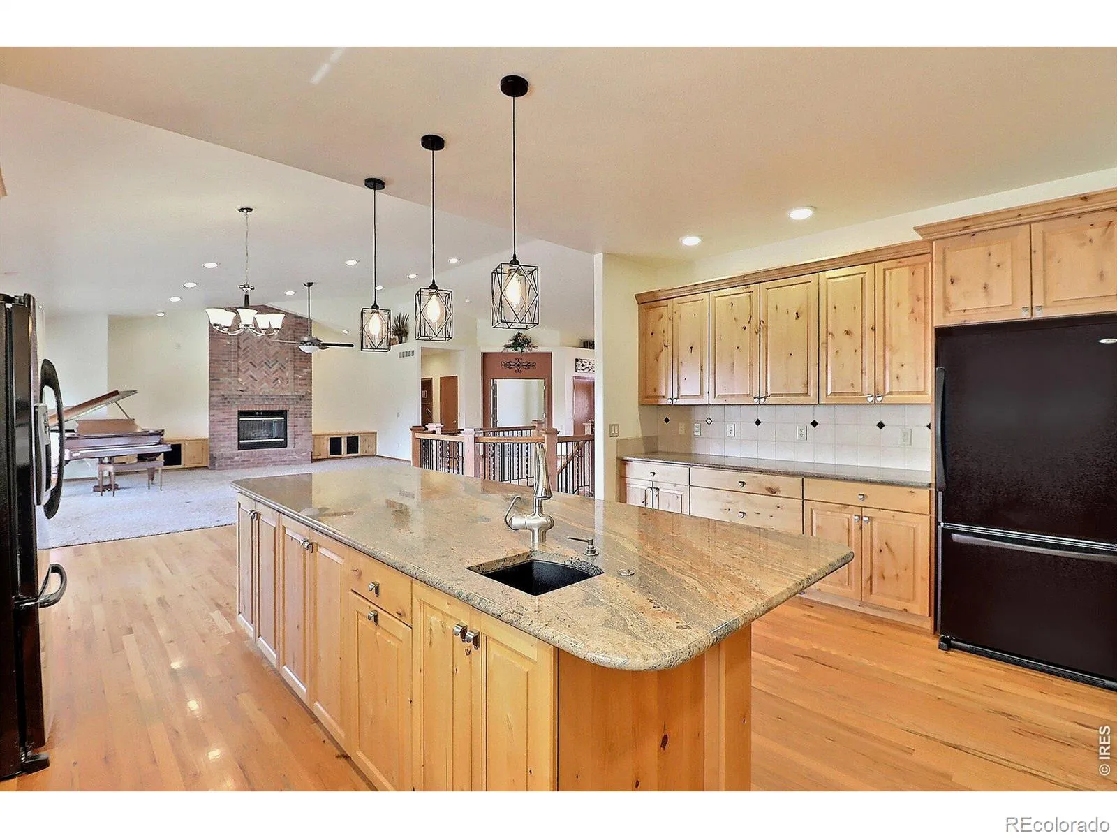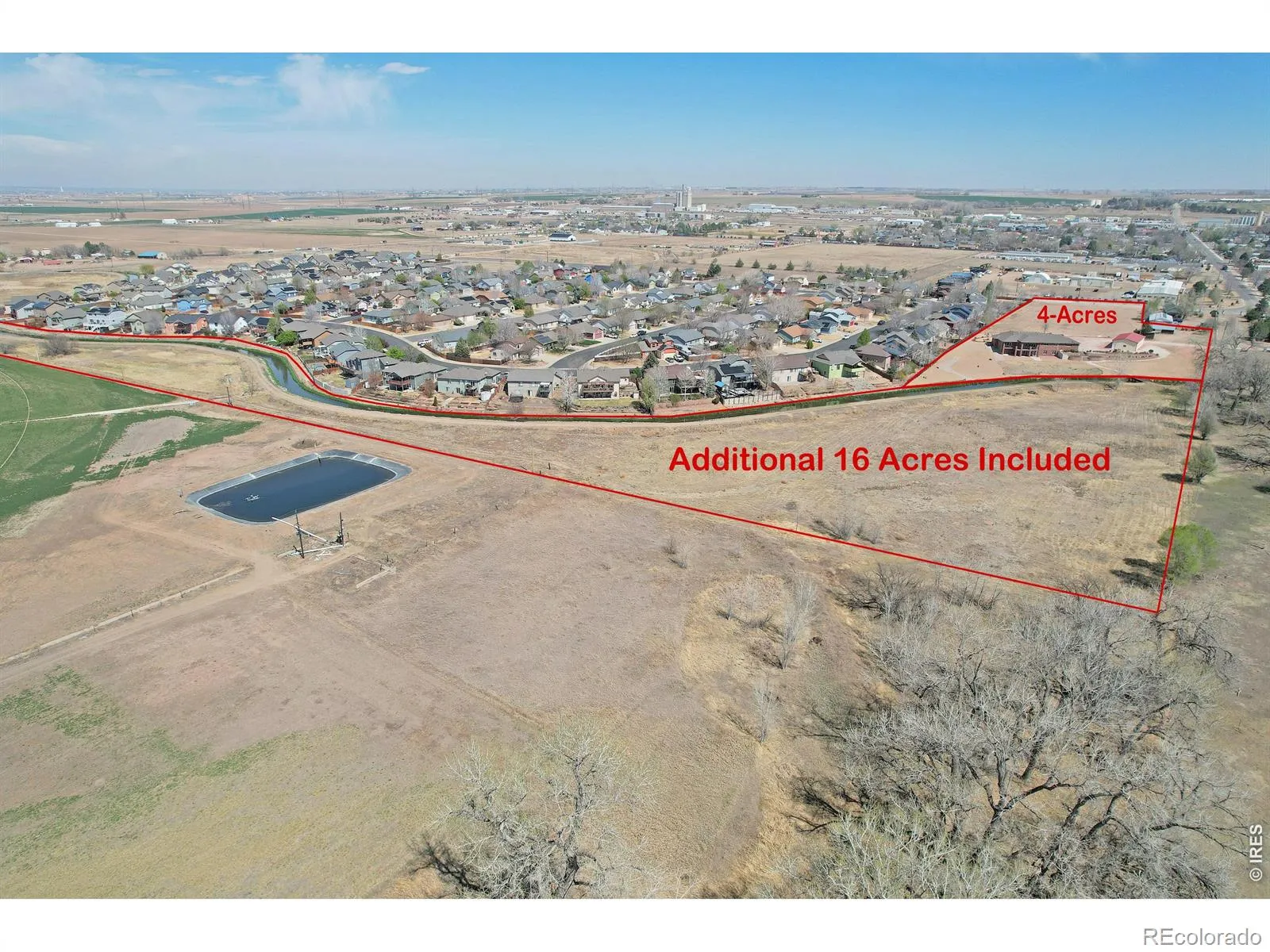 This property features a custom built all brick ranch home on four acres in the city limits of Platteville, with an unobstructed mountain view and a walk-out basement; two irrigation wells that can be used as non-potable water for flower or vegetable gardens; 3 bay door 64×30 shop; 6 zone sprinkler system for lawn and mature landscaping; 2 hot and cold water spigots in oversized attached 3 car garage, and GENERAC generator that runs the entire house when power is out. Stepping in from the garage is a laundry room with sink, three quarter bathroom; eat-in kitchen with granite counter tops, vegetable sink in island, double ovens, five-burner gas cook top, two refrigerators, lots of cabinetry including pull-out drawers, wood flooring, spacious walk-in pantry, deck off kitchen with gas connector for grilling, central vacuum system throughout. Living room features gas fireplace, formal dining area, dedicated office. HVAC systems (2) less than a year old; gas water heaters (2) new in 2022. Primary bedroom with large walk-in closet, balcony off bedroom to enjoy the view. Basement offers a spacious family room and rec room, gas fireplace, one bedroom with walk-in closet, nice full bathroom, and a fifth bedroom needing a closet. Buried electronic fence for dogs that gives them plenty of room to run. There’s an additional 16 acres that runs from the south boundary of the property to the north boundary and is in Weld County. It is possible another parcel could be created on the four acres, or an accessory dwelling unit. No metro tax and no HOA. Listing agent must be present at all showings, 24-hour notice required, and all buyers must have a pre-qual letter prior to showing. Must see to appreciate.