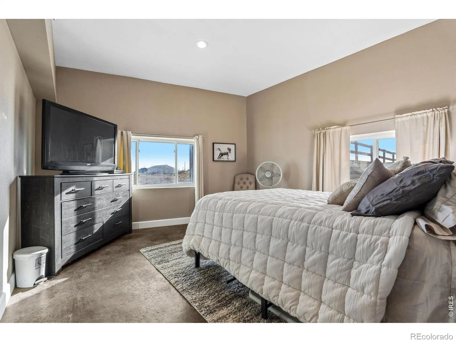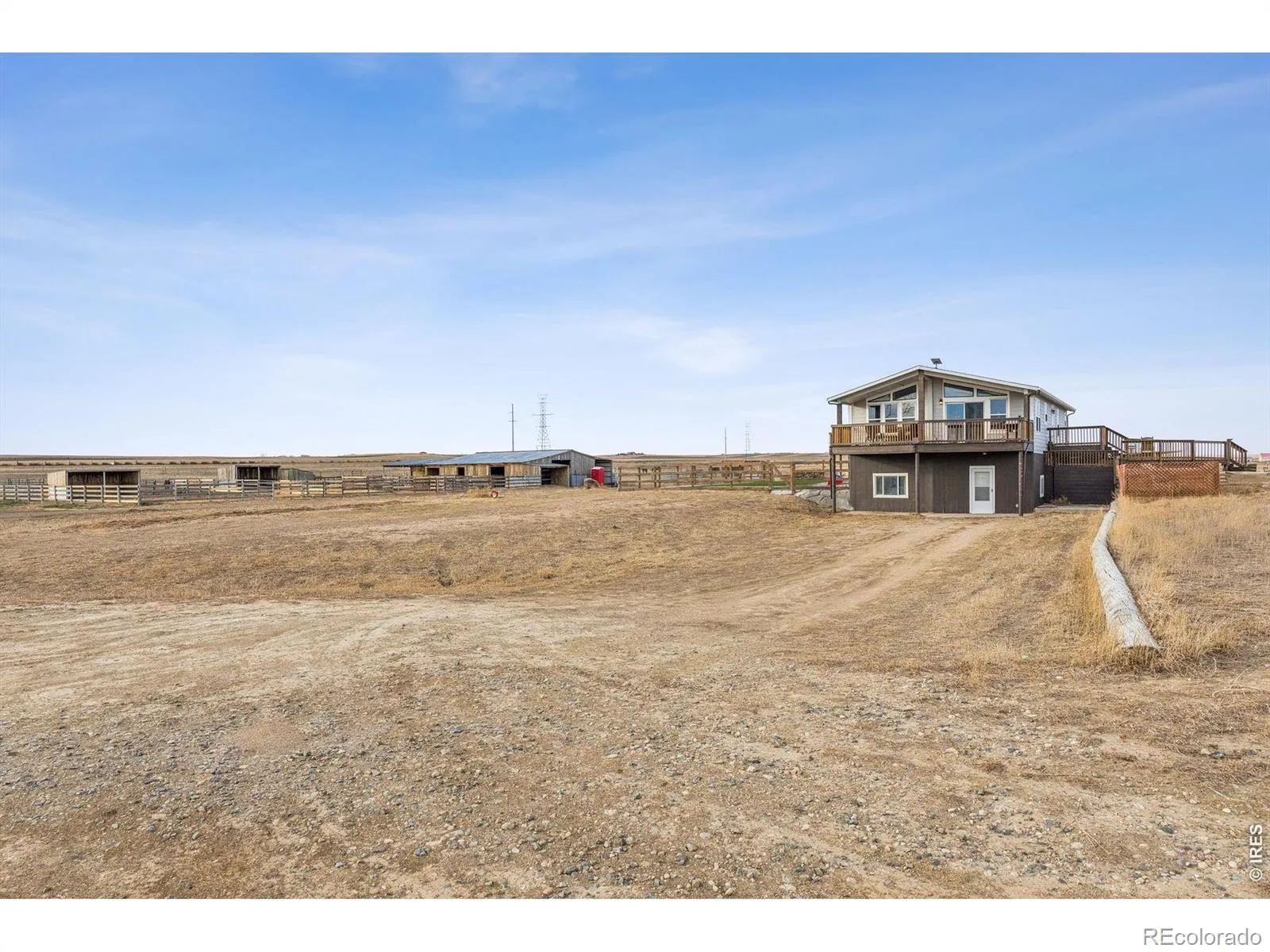 Back on the market, and no fault of home, contingent buyer did not get their home listed. Stunning equestrian estate on 48+ acres with panoramic views of the Colorado Rocky Mountains. This updated ranch style home with a walkout basement features an open floor plan with floor to ceiling windows, a spacious living and dining area, and a fully updated kitchen with a large island and gas stove. The main level includes the primary suite and two additional bedrooms. Recent improvements include refinished wood floors, new interior and exterior paint, updated decking with some Trex, a new turf backyard, new yard fencing, and added mini splits for comfort and efficiency. The walkout basement offers two additional bedrooms, a full bathroom, flex or office space, a laundry room, and a kitchenette, creating an ideal setup for multigenerational living, a mother in law suite, or rental income. Equestrian facilities are exceptional. The 48×44 barn includes three 16×16 stalls with 32 foot runs, a large tack room, and feed storage. The property features multiple pastures and paddocks designed for rotational grazing and easy livestock management. Several lean to shelters include electrical access and automatic waterers, and a separate small animal pen accommodates goats, pigs, chickens, or quarantine needs. Additional hay storage buildings and equipment bays add convenience. The 150×250 roping arena with alleyways is ready for training and events. A full circle driveway allows easy access for large trailers and semis. A detached garage and shop with a powered loft provides additional storage and workspace. Located just 15 minutes from Fort Collins, Windsor, and Eaton, this move in ready property offers an exceptional blend of acreage, views, and equestrian amenities. Roof is being replaced with Class 4 Shingle.