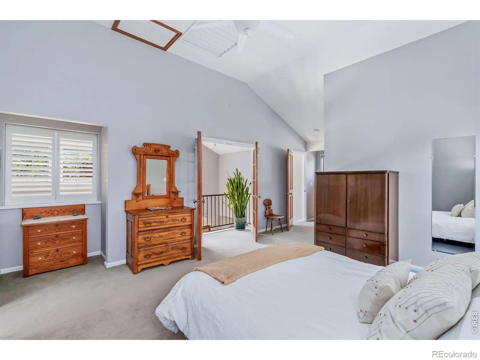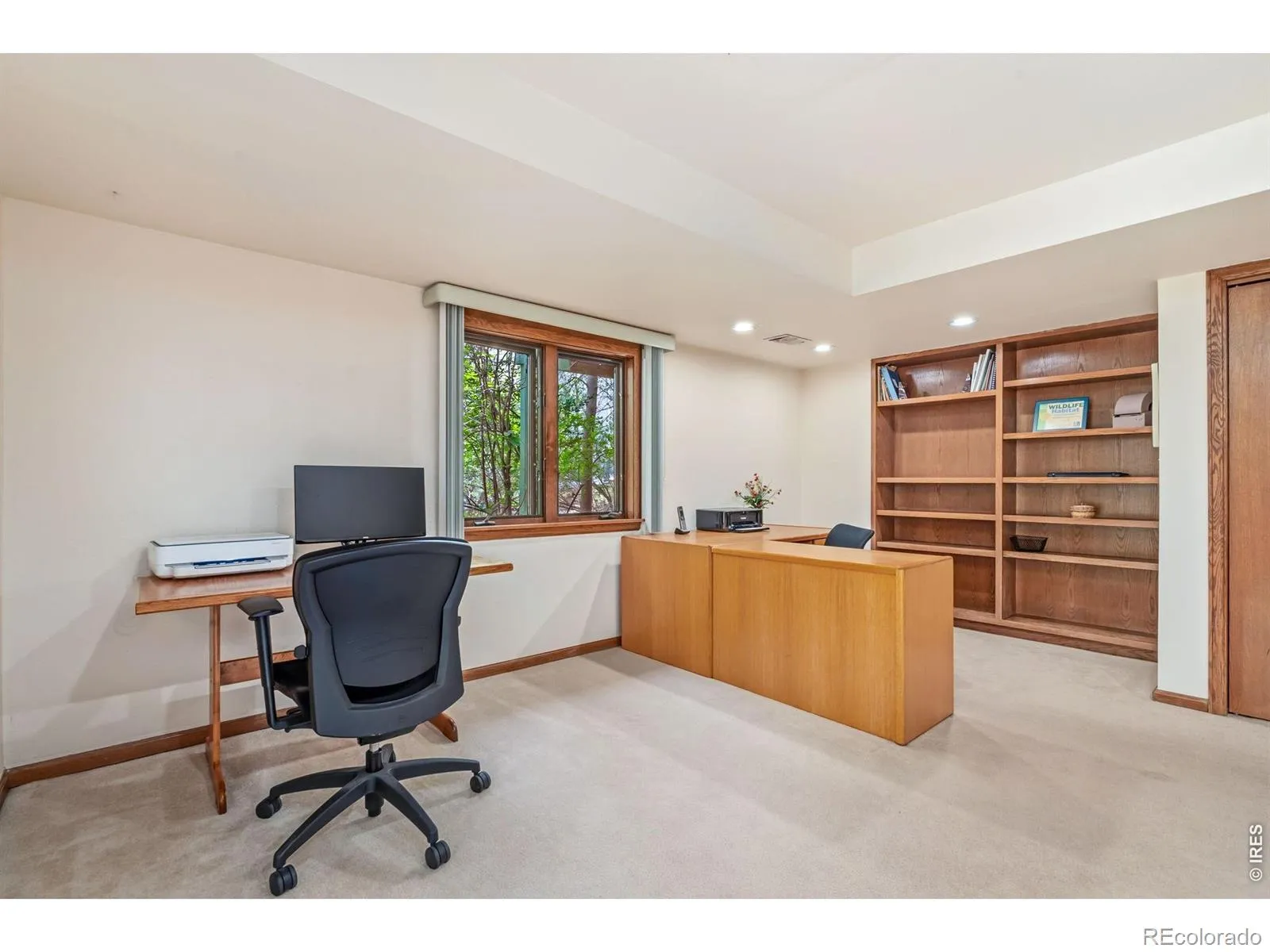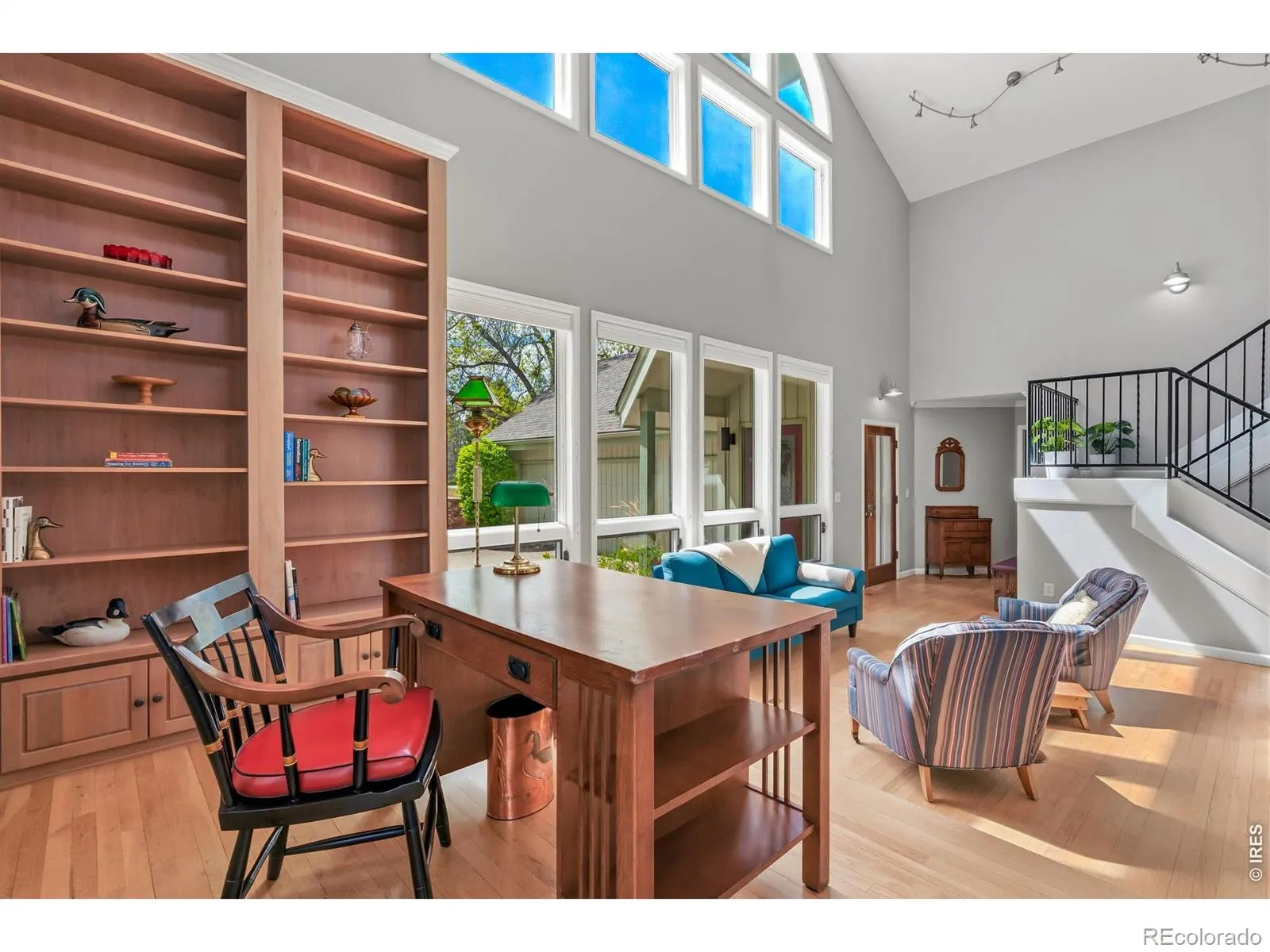 Tucked away on a quiet cul-de-sac in The Landings, 516 Spring Canyon Court is a true architectural statement designed by renowned local architect Sue Froseth. A sun-drenched south facing front room with soaring ceilings and an abundance of natural light sets the tone for a home that feels both elevated and inviting. The floor plan is designed to allow for effortless movement between rooms, drawing in light and stunning views from all directions. A custom kitchen anchors the main level, flowing beautifully into the living and dining spaces. Sun illuminates the kitchen, which connects to two decks, perfectly designed for indoor/outdoor living, hosting and daily enjoyment. The home’s passive energy design enhances comfort and efficiency year-round. The beautiful outdoor gardens and mature trees add beauty to the yard throughout the seasons. The dedicated primary suite occupies its own private level on the second floor, offering a balcony with views of Warren Lake. Enjoy the soothing sound of running water from all the decks in the spring when mountain water runs into the lake. The versatile walkout lower level offers three private bedrooms, a bathroom, plus a large unfinished space. These thoughtfully designed rooms are perfect for guests, multi-generational living, private offices or hobbies. The unfinished room with a large window creates flexibility for many uses – open up the partition wall to join the largest bedroom (featuring existing sliding patio doors) and create a large rec room! With an uncommonly large 3.5 car garage, 4 bedrooms, 3 bathrooms, and the versatile walkout lower level, this home offers abundant flexibility. It offers high-speed fiber and a 220-volt garage connection. Residents of The Landings enjoy exclusive access to Warren Lake, along with community amenities including tennis and pickleball courts, a swimming pool, and expansive greenbelts, creating a lifestyle that is both active and peaceful, right in the heart of Fort Collins.