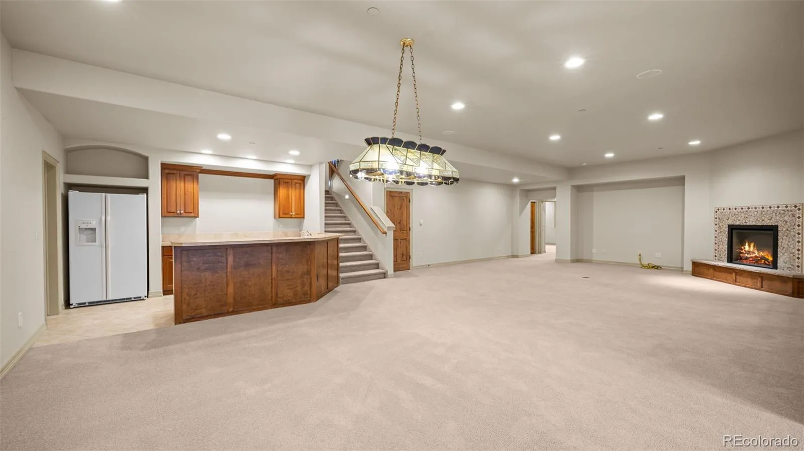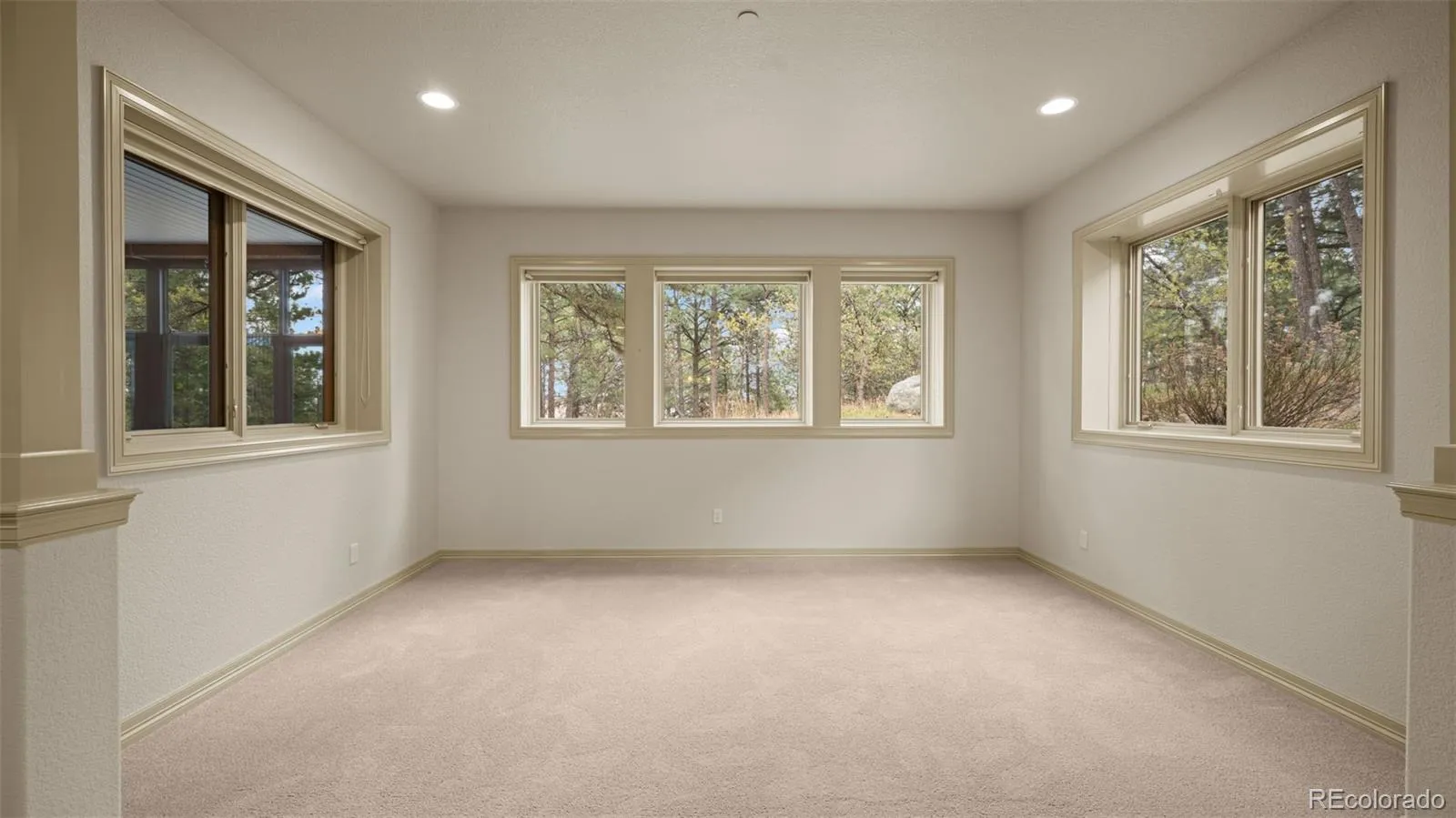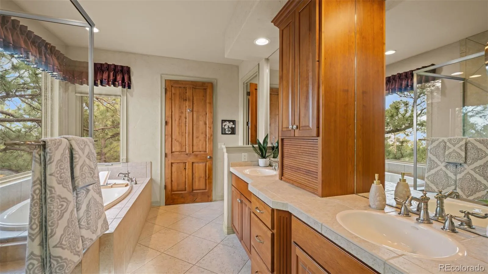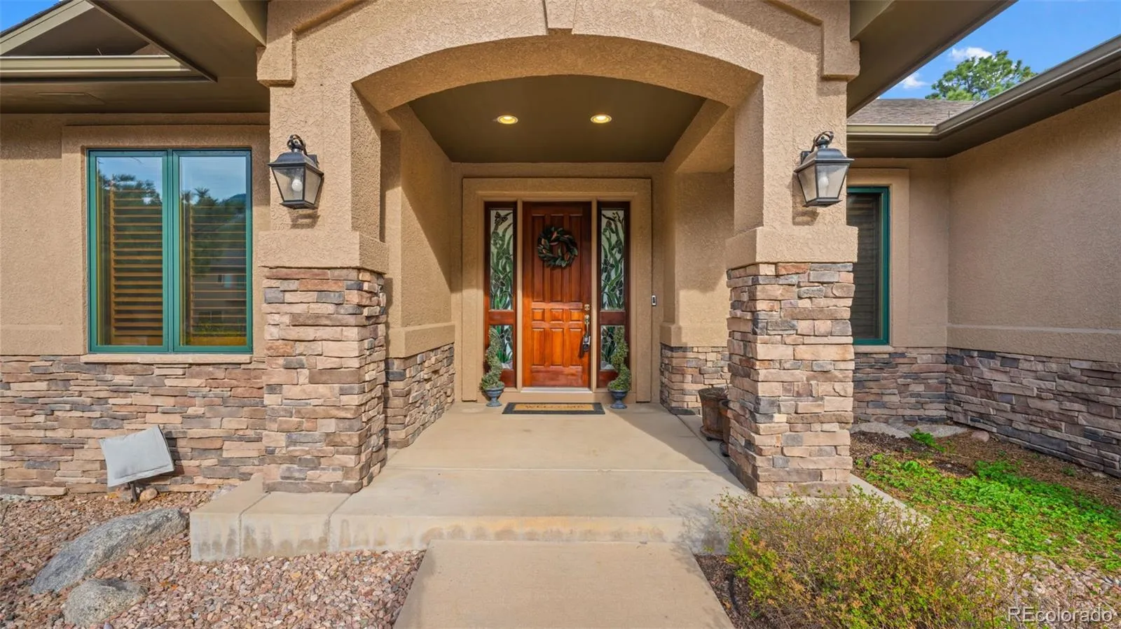 Nestled in the prestigious Stonecliff community, this exceptional ranch-style home offers luxury living with breathtaking mountain and city views on a 0.63-acre lot. With over 4,400 finished square feet, this home features 4 bedrooms, 3 bathrooms, and a thoughtfully designed layout ideal for both everyday living and entertaining. The main level welcomes you with a spacious great room featuring vaulted ceilings, built-ins, and a gas fireplace, along with a formal dining area and walk-out access. The gourmet kitchen is the heart of the home, offering stone countertops, a large island, breakfast bar, natural wood cabinetry, sub zero refrigerator, and a walk in pantry. The primary suite provides a private retreat with a walk-in closet, sitting area, walk-out access, remote control blinds, and a luxurious 5-piece bath with jetted tub, double vanity, and separate shower. A second main-level bedroom and convenient laundry room complete the main floor. The finished walk-out basement expands your living space with a large family room featuring a second fireplace, wet bar, and built-ins, along with two additional bedrooms, a full bath, glass enclosed sun room, and a second living area or flex space—perfect for guests, entertaining, or multi-generational living. Outdoor living is just as impressive with a large composite and covered patio, surrounded by mature landscaping and scenic views. Additional highlights include a 3-car oversized garage, central A/C, radiant and forced-air heating, sprinkler system, and a workshop area. Located within Cheyenne Mountain School District 12 and close to parks, trails, and The Broadmoor, this home offers an exceptional blend of space, views, and Colorado luxury living.