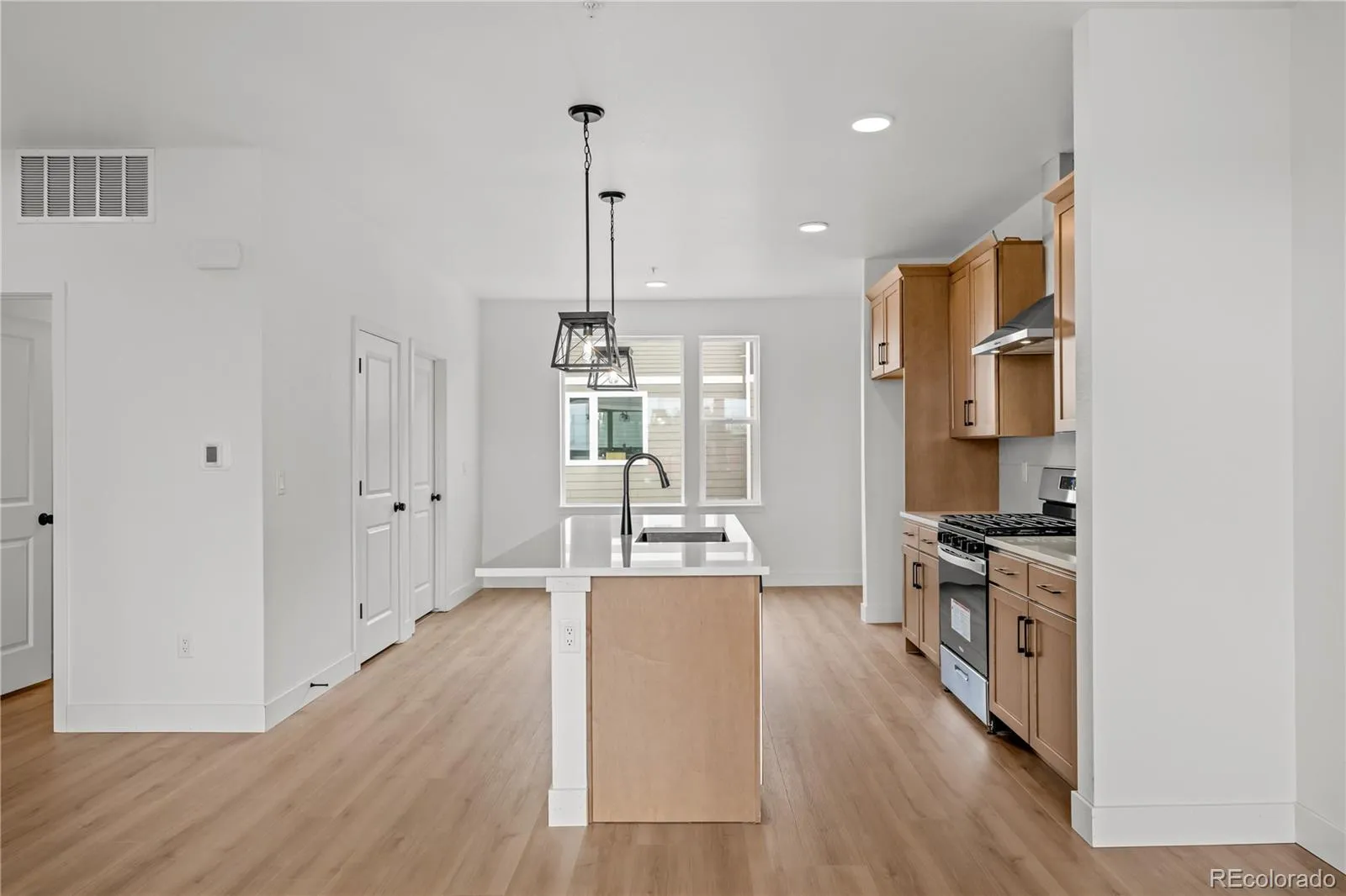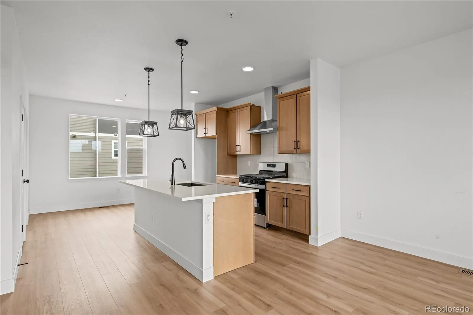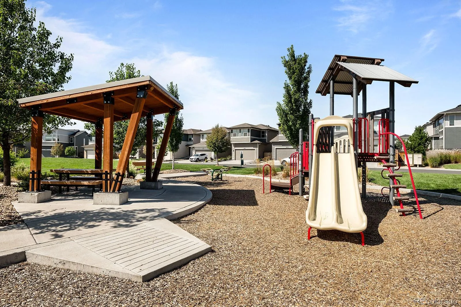 This South facing townhome is fully upgraded and move-in ready, offering designer finishes and exceptional natural light from numerous oversized windows and tall ceilings throughout. Enter from your private 2-car garage or charming front porch into a thoughtfully designed lower level with a bonus room. This bonus room is perfect as a non-conforming 3rd bedroom, workout room, home office, home library, or extra storage! The open-concept main level features 9’ ceilings, an expansive living and dining area, and a beautifully upgraded kitchen with Biscotti Maplecrest cabinetry, Denali quartz countertops, ceiling-height backsplash, and upgraded Whirlpool appliances. Step onto your South-facing balcony with peek-a-boo mountain AND city skyline views. A great space for morning coffee, container gardening, or relaxing evenings. Upstairs, two generously sized bedrooms each offer luxury baths and large closets. The primary suite showcases a frameless Euro shower and elevated designer finishes including ceiling-height tile, while the secondary bedroom includes a tub/shower combo with coordinating upgrades. A conveniently located upper-level laundry room adds everyday ease. High-end upgrades include Oak WPC flooring throughout, upgraded plumbing and lighting fixtures, custom tile details, and included refrigerator and washer/dryer. Enjoy low-maintenance living with HOA-covered exterior upkeep, snow removal, and courtyard landscaping, giving you more time to explore nearby trails, parks, coffee shops, and fitness studios. Located minutes from US-36, the Westminster Light Rail station, and the Denver-Boulder corridor, this home delivers style, connectivity, and convenience in one of the area’s most accessible communities. Ask about current builder incentives, including a 4.99% 30-YEAR FIXED RATE through the preferred lender and lease buyout options.