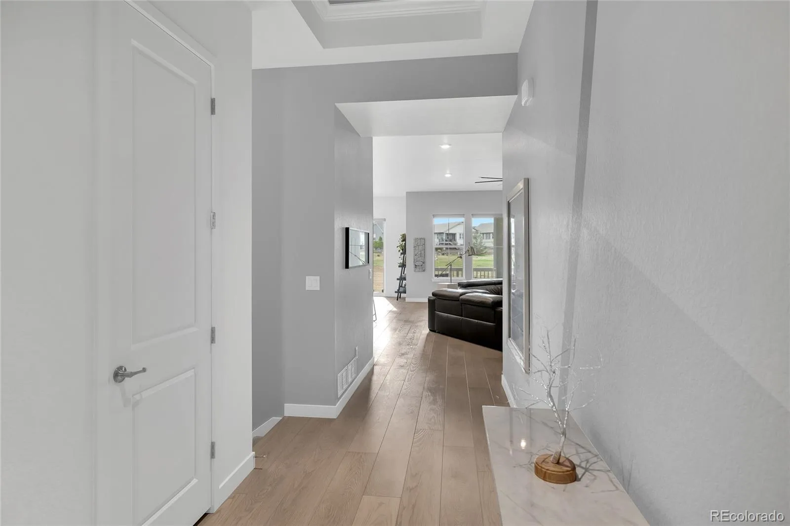 AMAZING VIEWS!, this home will leave you amazed and wanting more! Sitting on the 6th Tee Box with stunning course views, this 3 bedroom, 3 bath home has 2,117 SF on the main level plus an additional 2,117 SF of beautifully finished basement living area. Wide plank luxury vinyl floors & carpet, and tile run throughout the living areas of the main level. The kitchen has beautiful quartz countertops with a large island, pantry, gas cooktop, and stylish double ovens. There is a dining area just off the kitchen and both are open to a wonderful family room. With 12′ ceilings, lots of windows and great light, and golf course views it is the perfect area for entertaining. The Primary Suite has a bay window and a high tray ceiling and features a Primary Bath accented by a custom glass shower door, large tiled shower and duel vanities. A large en suite bedroom features a full bath and large closest, perfect for out of town visitors; while a 3rd bedroom can double as an office or den. The family room, kitchen, and Primary Bedroom all have stunning fairway views! Need more space? The basement is magnificently finished with a large family area, 3 large rooms, and a nicely finished gym. Back on the main level walk out the back sliding door onto a large deck with a sprawling extended patio, plenty of room, back deck blinds that create the perfect outdoor living! This 55+ neighborhood is the ideal community for active adults offering an abundance of clubs, 2 pools (inside & outside), tennis and pickleball courts, and a wonderful restaurant and bar that offers a great place to gather with friends for happy hour or dinner. And of course there is fantastic golf course if you enjoy the Links! Come make HTC your new Home!