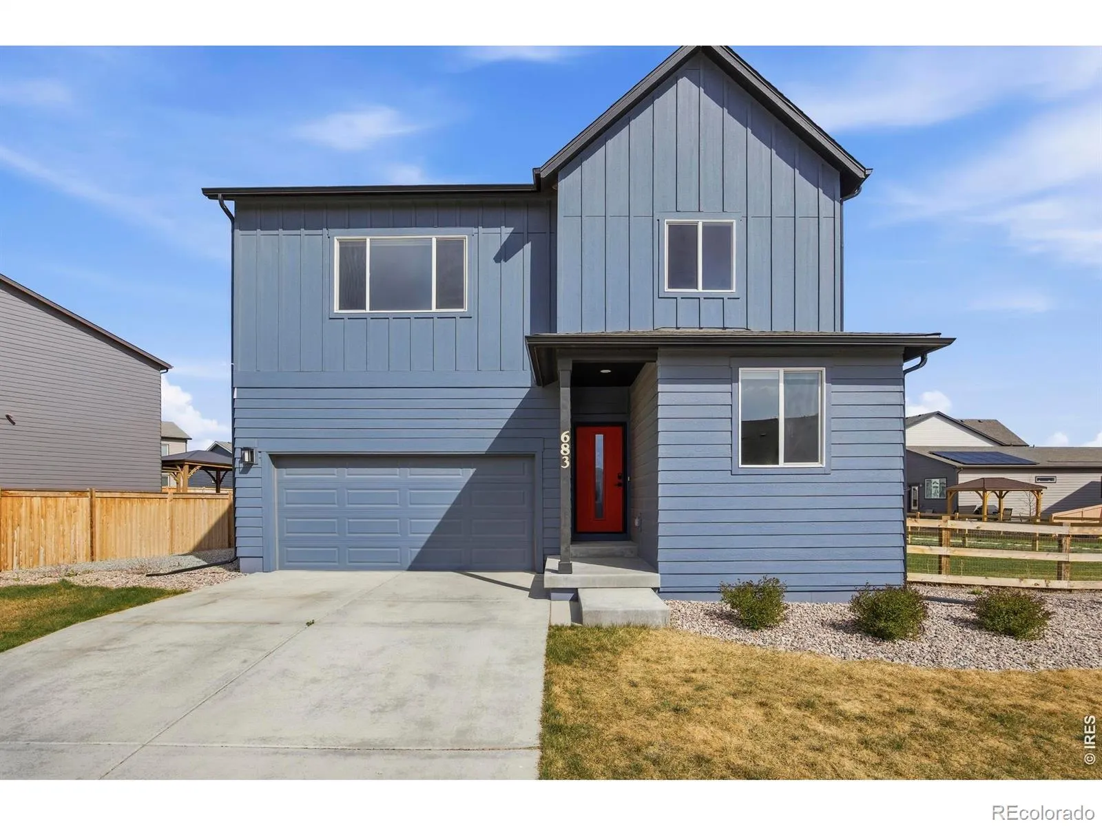 Better than new! Welcome to 683 Piedmontese Drive in Johnstown-a beautifully maintained, only two-year-old home built by Hartford Homes, offering a spacious .25 acre lot and mountain views. Upon entering, there’s an office or flex space overlooking the street and the main level half bathroom. As you enter the heart of the home, you will find an open-concept layout filled with natural light, featuring a well-appointed kitchen with stainless steel appliances, generous island and large walk-in pantry, one of many great features unique to this home. The large great room overlooks the spacious back yard with newly-installed sod, sprinkler system, landscaping and full fencing. Upstairs you will find a spacious primary suite providing a private retreat, with expansive, bright bathroom, double vanity, walk-in shower and large closet. There’s also a loft space with views of the mountains and dedicated laundry room convenient to the bedrooms with ample space. Two additional bedrooms share a hall bathroom. Enjoy energy efficiency with leased solar panels and outdoor living in the oversized yard siding to a walking path, plus mountain views from the front of the home. Conveniently located in Johnston’s new Granary Subdivison, near the community pool (opening this summer), the new Roosevelt High School, newer shopping and restaurants, all with easy access to I-25.