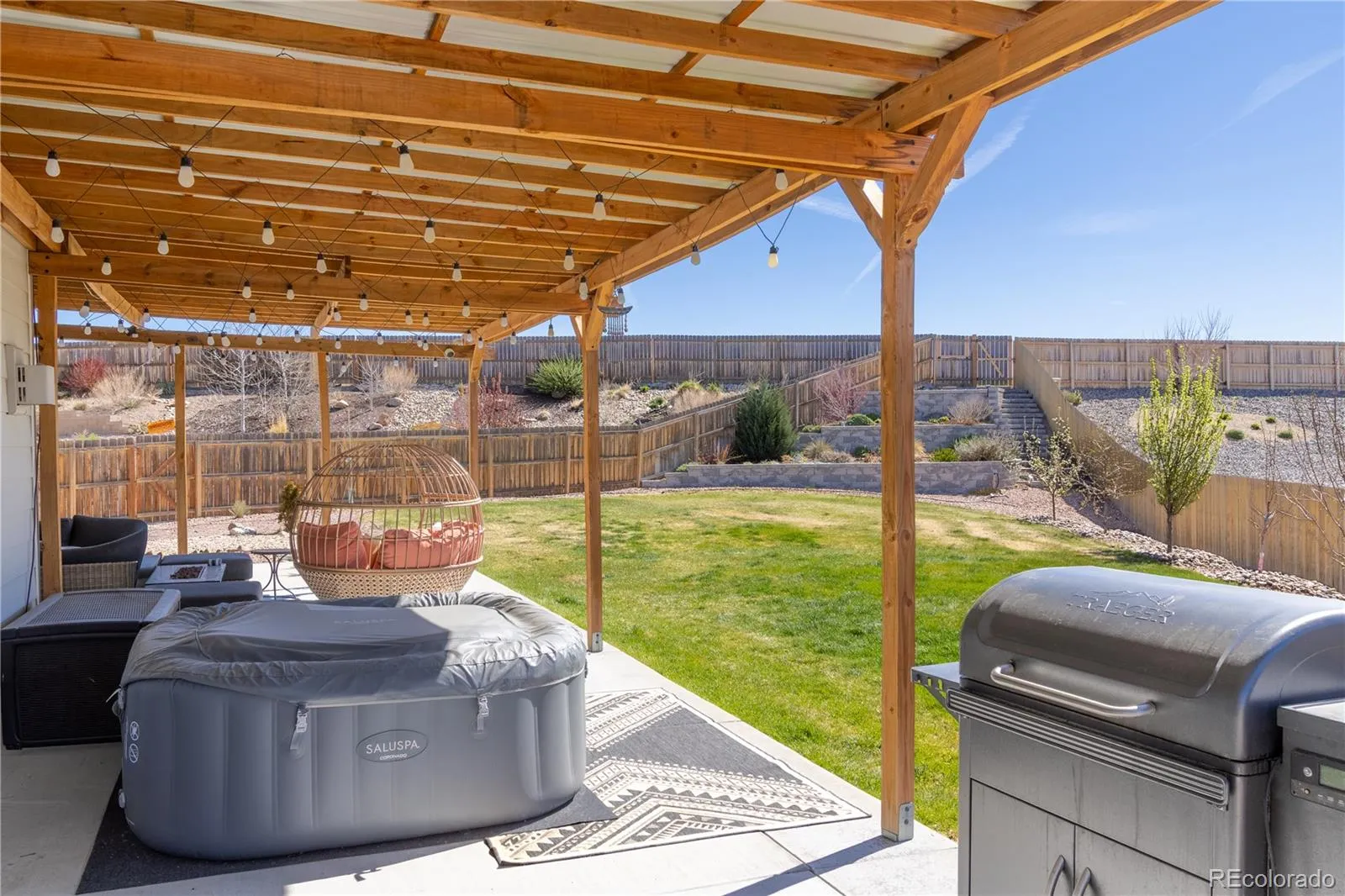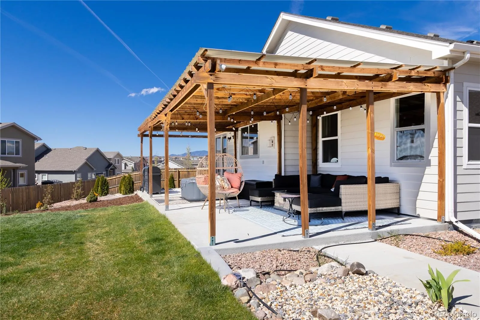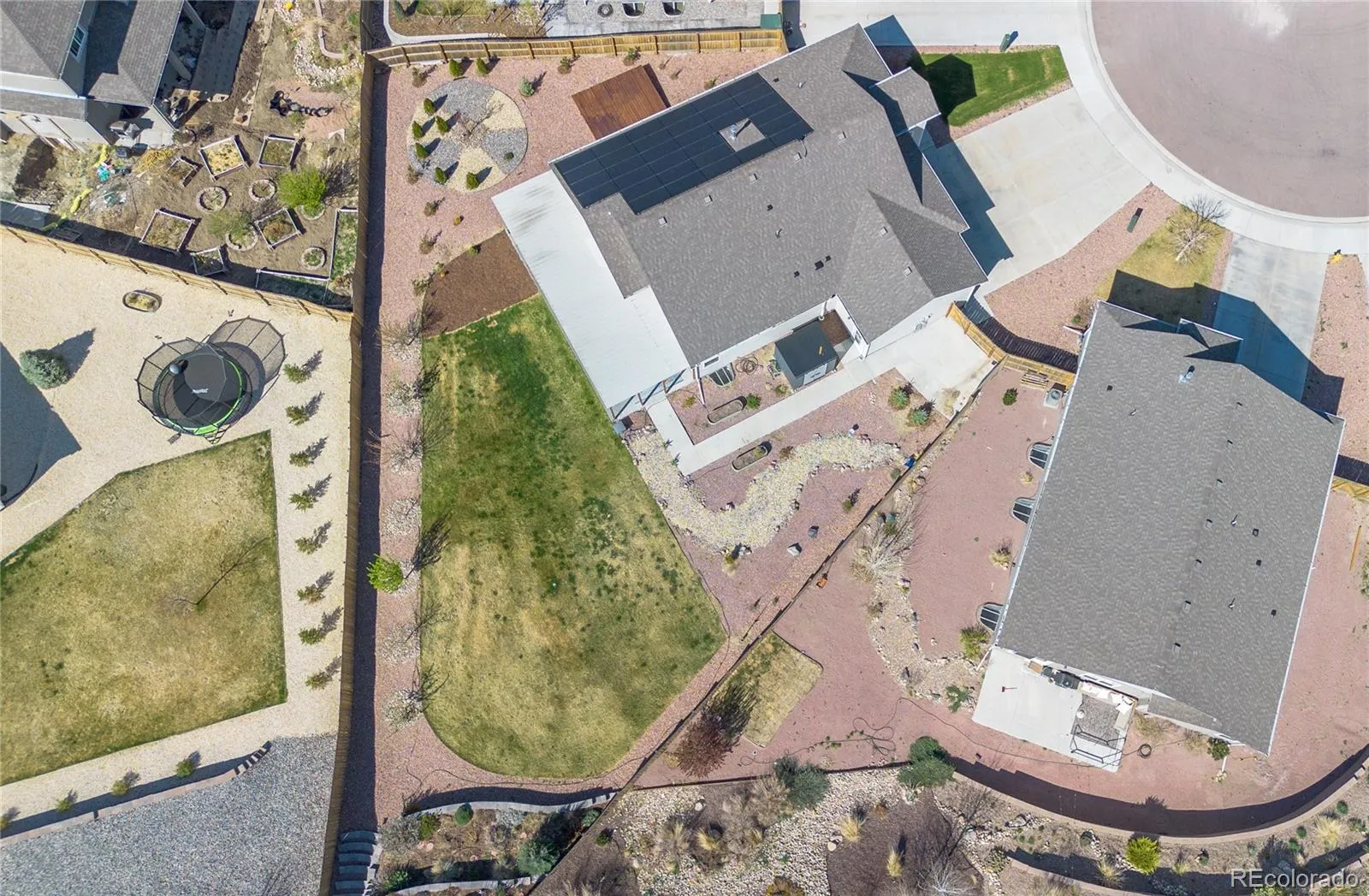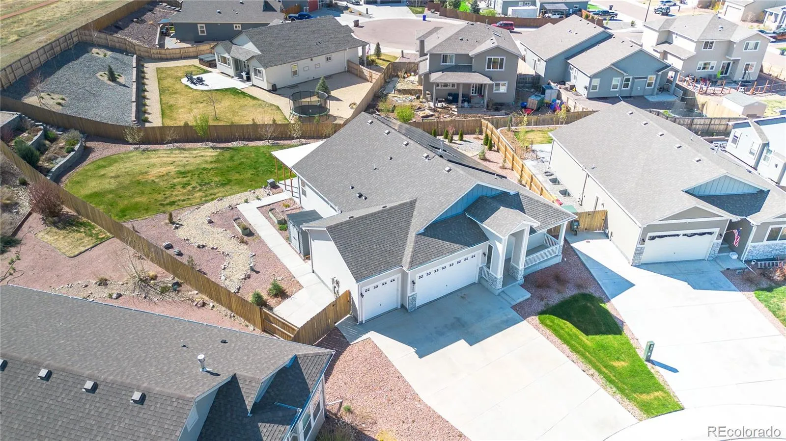 Please Enter a Description: Welcome to this beautifully upgraded 2021-built ranch-style home offering 5 bedrooms, 3 bathrooms, and 3,200 finished sq ft on a 0.32-acre lot backing to open space. The bright open-concept layout is filled with natural light and features a chef’s kitchen with a large island, gas cooktop, stainless steel appliances, and elegant quartz countertops. A fully finished basement, vaulted ceilings, and a cozy fireplace add to the home’s comfort and functionality. This home stands out with extensive energy and infrastructure upgrades, including a 12.8 kW solar system producing approximately 17.1 MWh annually; well above typical household usage in Colorado Springs, paired with a Powerwall (13.5 kWh). Excess energy may be exported back to the utility at lower rates (approx. 0.04/kWh), creating a year end rebate for the homeowner. Additional features include an EV charger, extra 220V garage outlet, and a 220V hot tub-ready connection. Enjoy a complete smart home setup with Nest (doorbell, lock, cameras, thermostat) and Z-Wave lighting and sensors. Comfort upgrades include an Aprilaire 800 steam humidifier, water softener, and reverse osmosis system. The backyard is designed for both relaxation and functionality with custom landscaping, raised garden beds, established multi-variety fruit trees, and a modern 8×7 storage shed (6 months old). Located near parks, trails, and shopping.