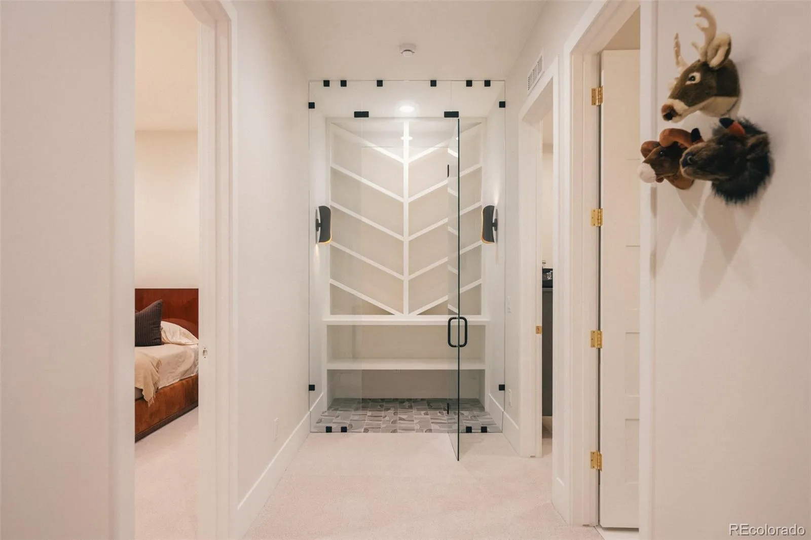 Upstairs, the primary suite is calm, vaulted, & quietly luxurious. The bath reflects the same ethos, balanced, tactile, enduring. Secondary spaces and the lower level maintain consistent proportion & purpose.