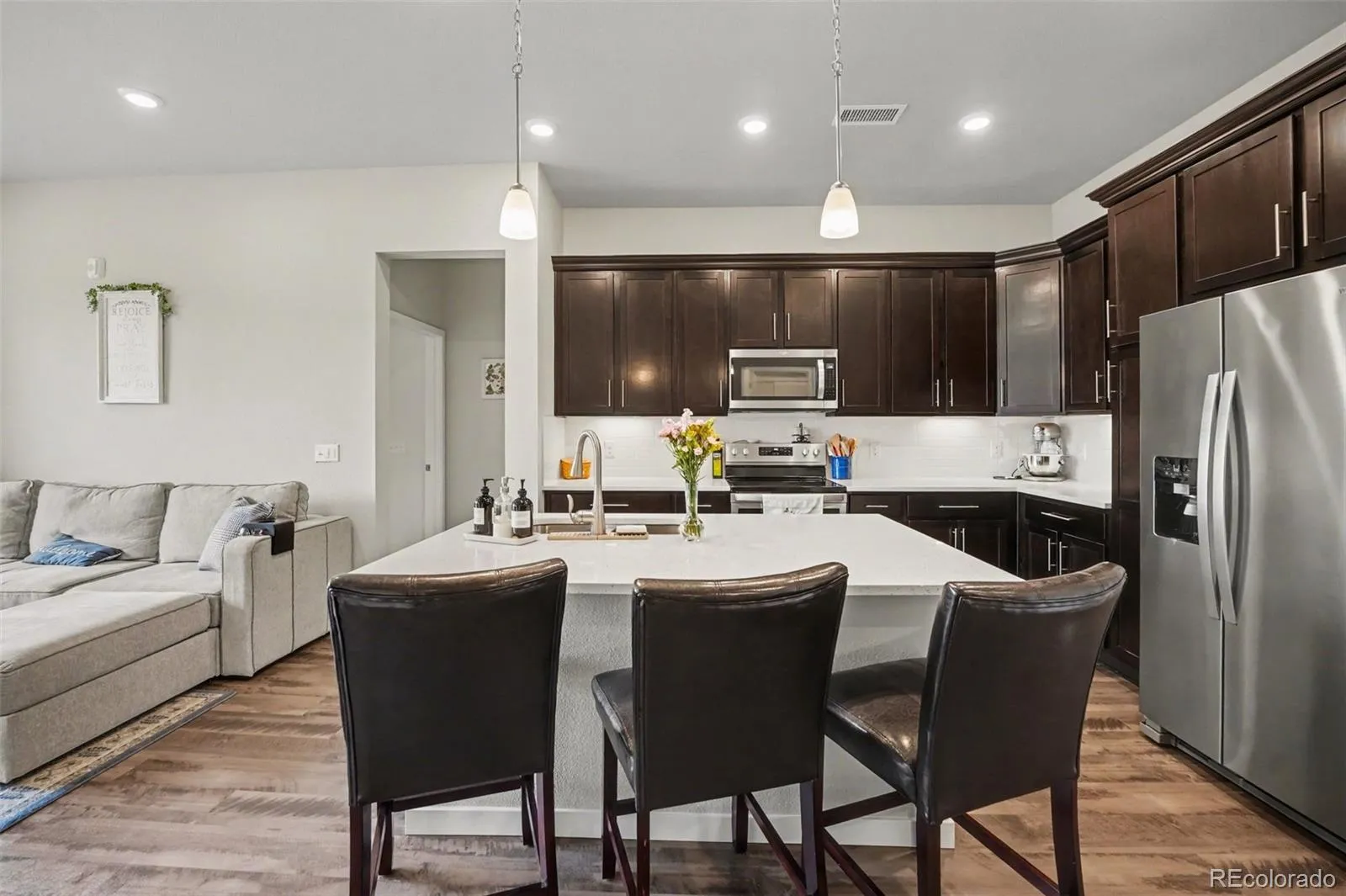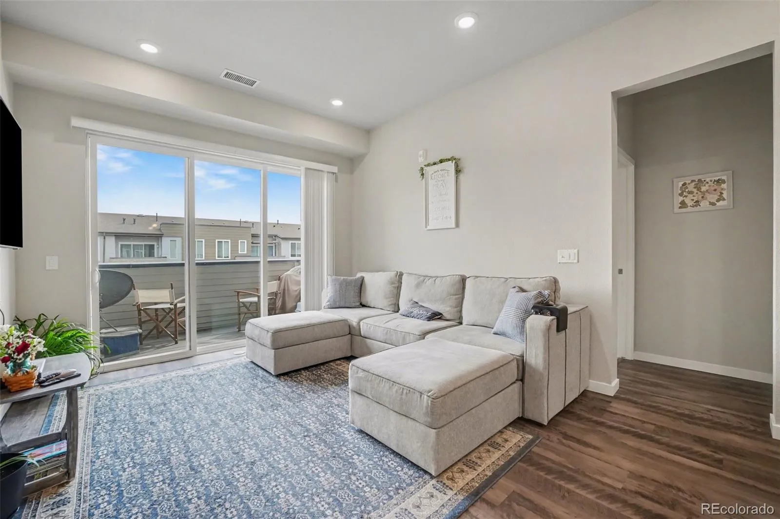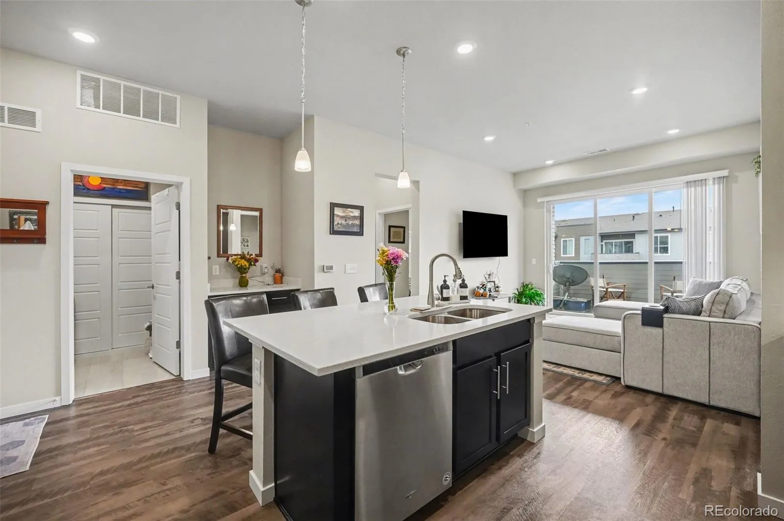 Top-floor living with soaring 10-foot ceilings and abundant natural light creates an immediate sense of space, style, and comfort in this beautifully designed, move-in ready home in the highly desired Littleton Village community. Step inside to an open floor plan where the kitchen, dining, and living areas flow seamlessly together, ideal for both everyday living and entertaining. The modern kitchen blends warmth and functionality with dark wood cabinetry, quartz countertops, and stainless steel appliances, creating a space that feels both elevated and inviting. The primary suite offers a peaceful retreat with a large walk-in closet, dual sinks, and a spacious glass shower. A second bedroom and full bath provide flexibility for guests, a home office, or additional living space to fit your lifestyle. Access to a private & quiet balcony just off the living room is a perfect place to relax. This home is wired for Google and Alexa integrated smart home features. Enjoy the convenience of deeded underground parking and access to a private on-site fitness center, a rooftop patio with barbecues and a fire pit. Just outside your door, you’ll find a vibrant, walkable location with nearby dining, coffee shops, and a neighborhood park, plus direct access to the scenic High Line Canal trail system for walking, biking, and outdoor recreation. This isn’t just a condo, it’s a lifestyle defined by comfort, convenience, and connection to everything you love about Colorado living.