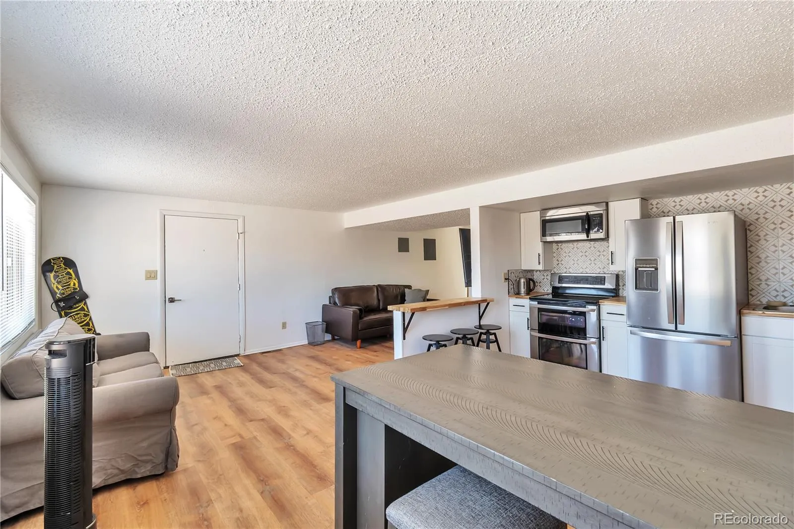 Fully remodeled from top to bottom, this home offers a fresh, modern feel with warm, thoughtful design throughout. Large windows fill the space with natural light, highlighting fresh paint, new LVP flooring, and beautiful updates in every room. Upstairs, the primary suite serves as a peaceful retreat with a private en-suite bath and a light-filled private office—perfect for working from home, reading, or quiet focus. Two additional bedrooms and a full hall bath complete the upper level, all updated with clean tile work, modern vanities, and lighting. At the heart of the home, the kitchen brings everyone together with rich wood-tone cabinetry and sleek matte black uppers for a warm, modern contrast. A quartz waterfall island offers both prep space and casual seating, while stainless steel appliances, a deep undermount sink, geometric tile backsplash, floating shelves, and modern lighting complete the space. Just off the kitchen, an elevated deck extends the living area outdoors, featuring a pergola that softly filters natural light over the wood decking—creating a cozy space for morning coffee, evening dinners, or relaxing. The open layout flows seamlessly into the dining area and main-level family room, creating a warm, inviting space for everyday gathering. The lower level adds even more comfort and flexibility with a second family room centered around a cozy fireplace, a fourth bedroom with generous closet space, and a 3/4 bath. A separate exterior entrance leads to an in-law style suite with its own kitchen, stainless steel appliances, living and dining area, loft-style sleeping space, and washer/dryer connections—ideal for guests or extended living, with flexible use and potential rental use.