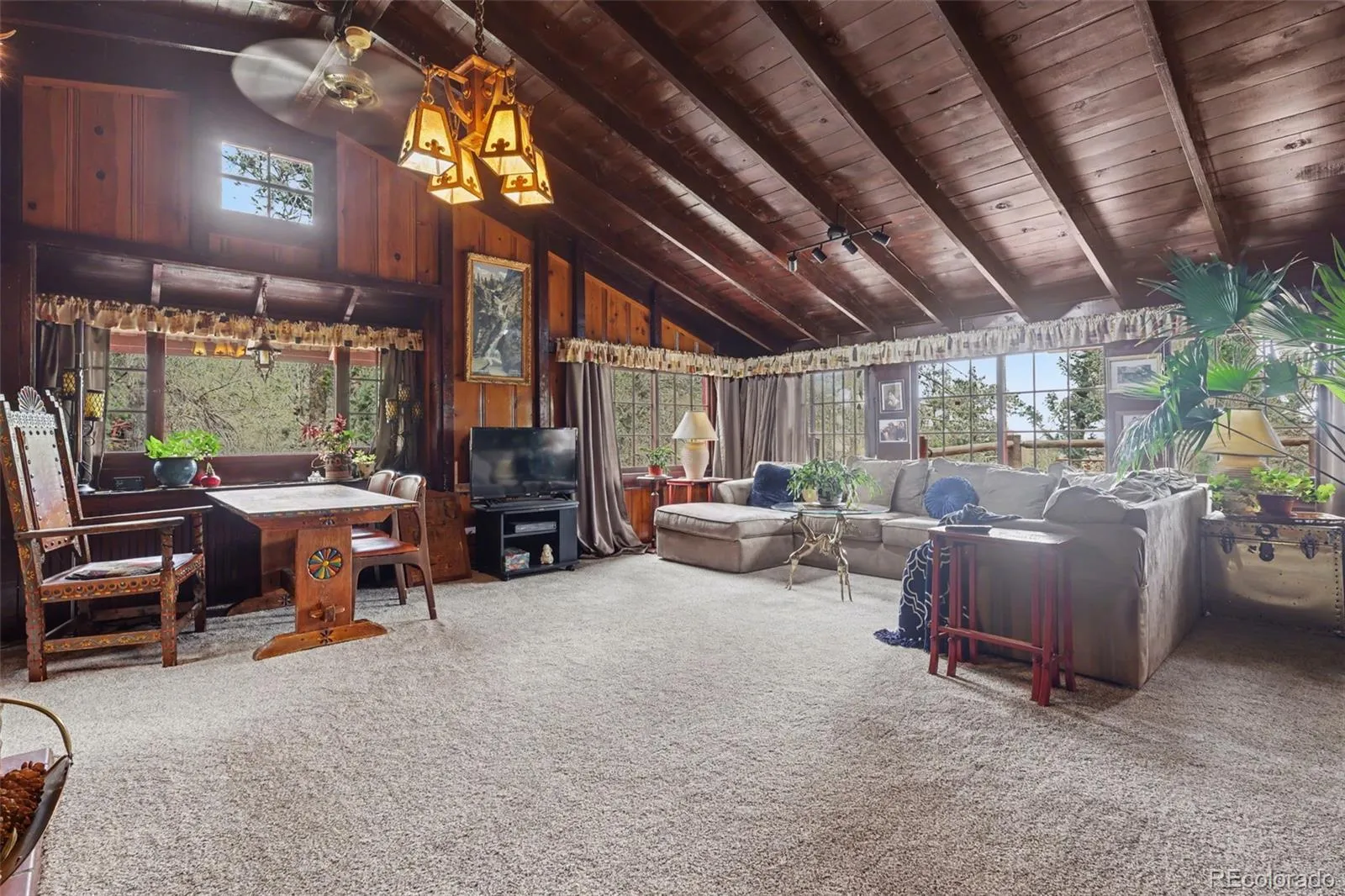 Perched high within one of Colorado Springs’ most storied mountain enclaves—originally established as a private retreat for Colorado College professors and notable figures seeking inspiration above the city—this 1909 residence offers a rare blend of history, privacy, and possibility. Set along the slopes of Cheyenne Mountain, View of the Broadmoor & minutes to Cheyenne Mountain Zoo, the setting delivers a unique balance of seclusion and access to world-class amenities. Winding roads, towering pines, and a sense of intentional placement define this intimate setting, where mornings begin with native birdsong echoing through the trees, wildlife moves quietly through the landscape, and evenings give way to glowing city lights stretching endlessly across the plains below. From its elevated position, the property captures a truly immersive sense of peace, privacy, and connection to the natural surroundings—an environment that feels both grounded in history and removed from the pace of modern life. Held within the same family for over 70 years, the home spans two separate parcels conveyed together, with the additional parcel offering flexibility for potential future use, subject to buyer investigation and community guidelines. The lower level presents a charming, fully separate living space with its own entrance—complete with a kitchenette, bedroom w/ fireplace, inviting living room, and dining area—creating an ideal setting for extended stays, guests, or potential short-term rental of six months minimum, all wrapped in a warm, storybook-like ambiance. Completing the offering is exceptionally rare parking for the area, featuring two separate two-car garages plus additional x2 outdoor parking spaces—an uncommon and highly valuable amenity in this location. Rich in character, history, setting, and opportunity, this is a legacy property ready to be thoughtfully reimagined, & carried forward into its next chapter, “Welcome HOME”