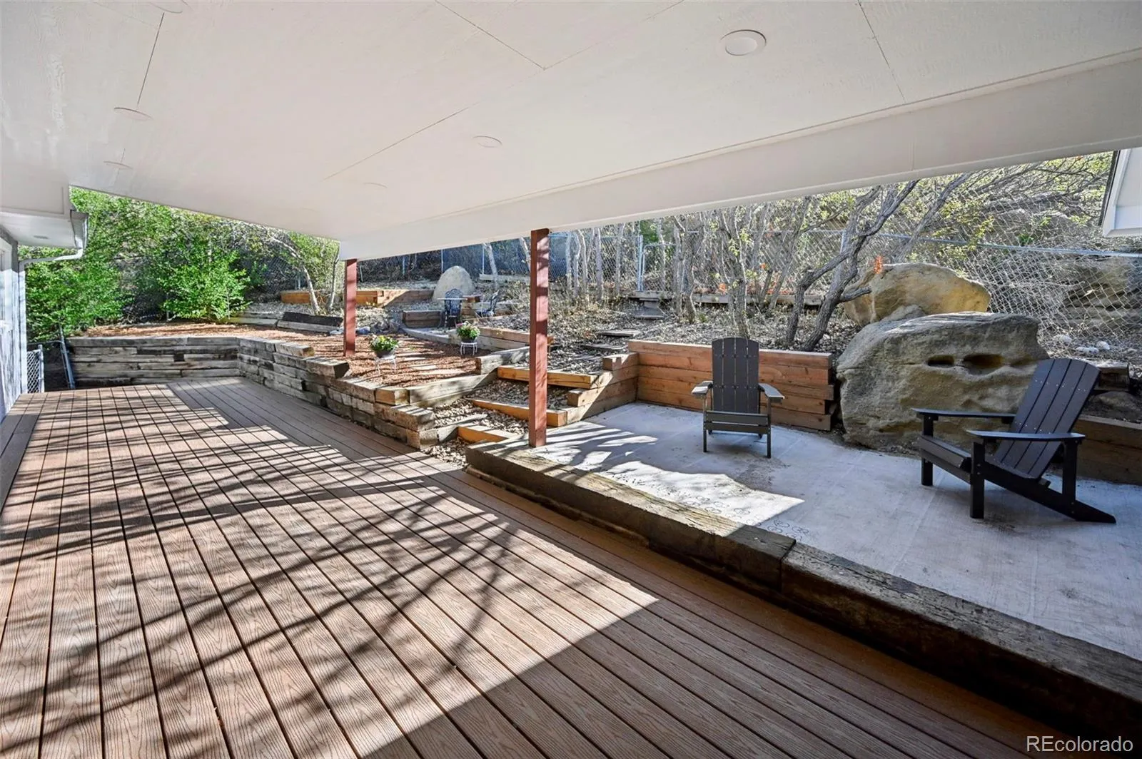 Welcome to this beautifully remodeled 5 bedroom, 3 bath home located in Park Vista Estates, where open space, natural beauty and modern living come together seamlessly. Set in one of Colorado Springs’ hidden gems, this unincorporated neighborhood offers half+ acre sized lots, no streetlights or sidewalks, and no HOA—delivering the freedom, privacy, and peaceful country feel you’ve been searching for. From the moment you step inside, the home has a sleek, modern feel, filled with natural light from large windows that perfectly frame Colorado’s mountains for stunning sunrises and sunsets. The open and inviting layout highlights main-level living with a thoughtful design that feels bright, airy, and connected to the outdoors at every turn. The bright kitchen featuring new cabinetry, quartz countertops, stainless steel appliances, a spacious island, and a large pantry is designed with cooking in mind and a space any home chef will appreciate. Step outside your dining room walk-out to find a truly unique backyard retreat including a large covered deck, multiple seating areas and a dedicated area for hot tub with existing outlet; all great for entertaining, relaxing or simply enjoying Colorado’s great outdoors. The setting continues with dramatic natural rock formations giving the feel of The Garden of the Gods right in your own backyard with frequent wildlife visitors—all set within a quiet, peaceful environment. The lower-level’s large family room with walkout adds incredible flexibility with a private entrance, making it ideal for multi-generational/family living arrangements or a perfect setup for small business owners needing separate access and space. From the fresh exterior and interior paint, to the new lighting, flooring, and trim, this home is everything you’ve been looking for and more. Low-maintenance landscaping, new washer and dryer, and newly installed 2026 A/C complete this exceptional, move-in-ready property.