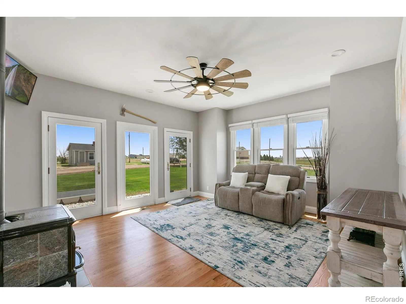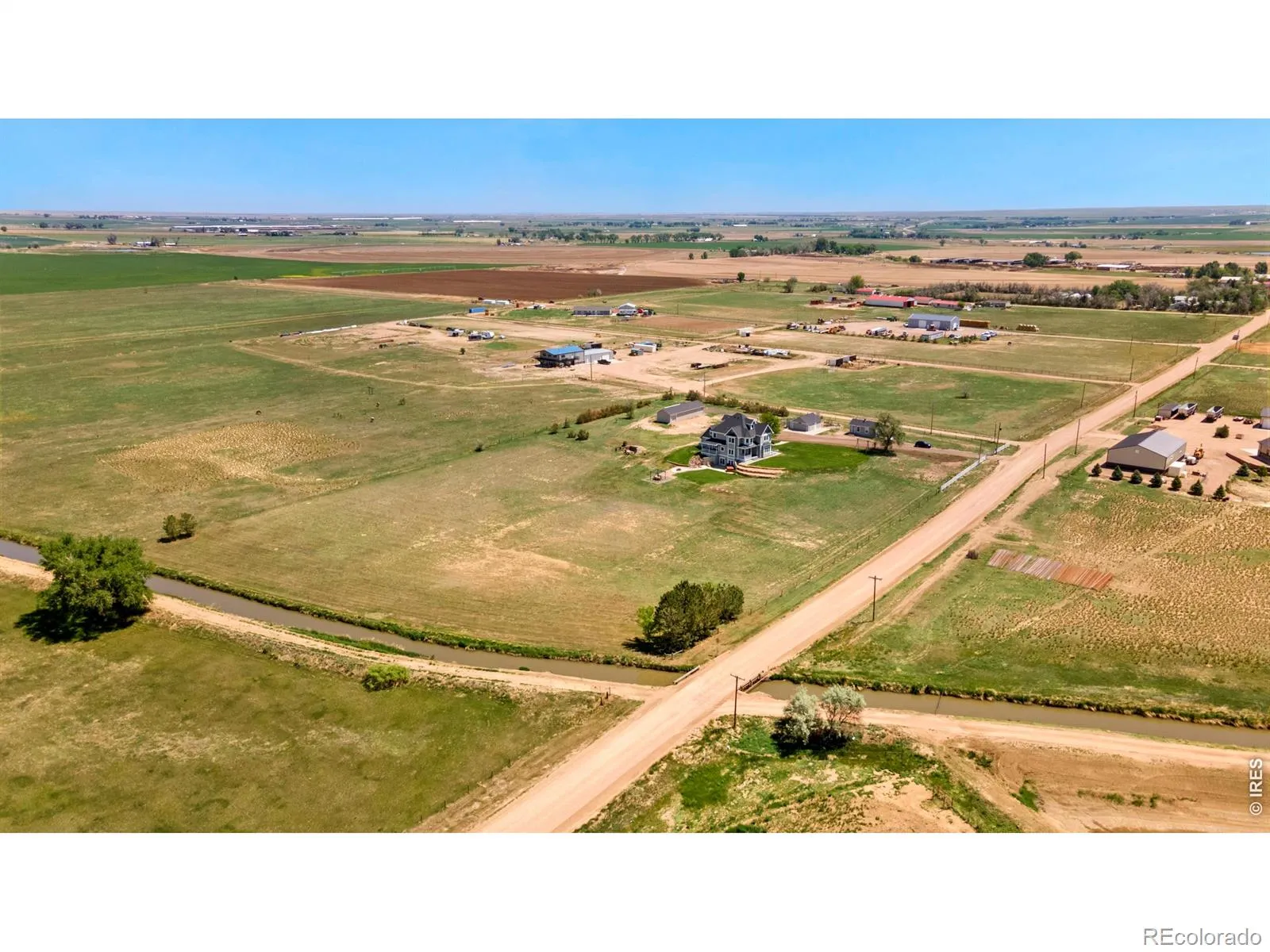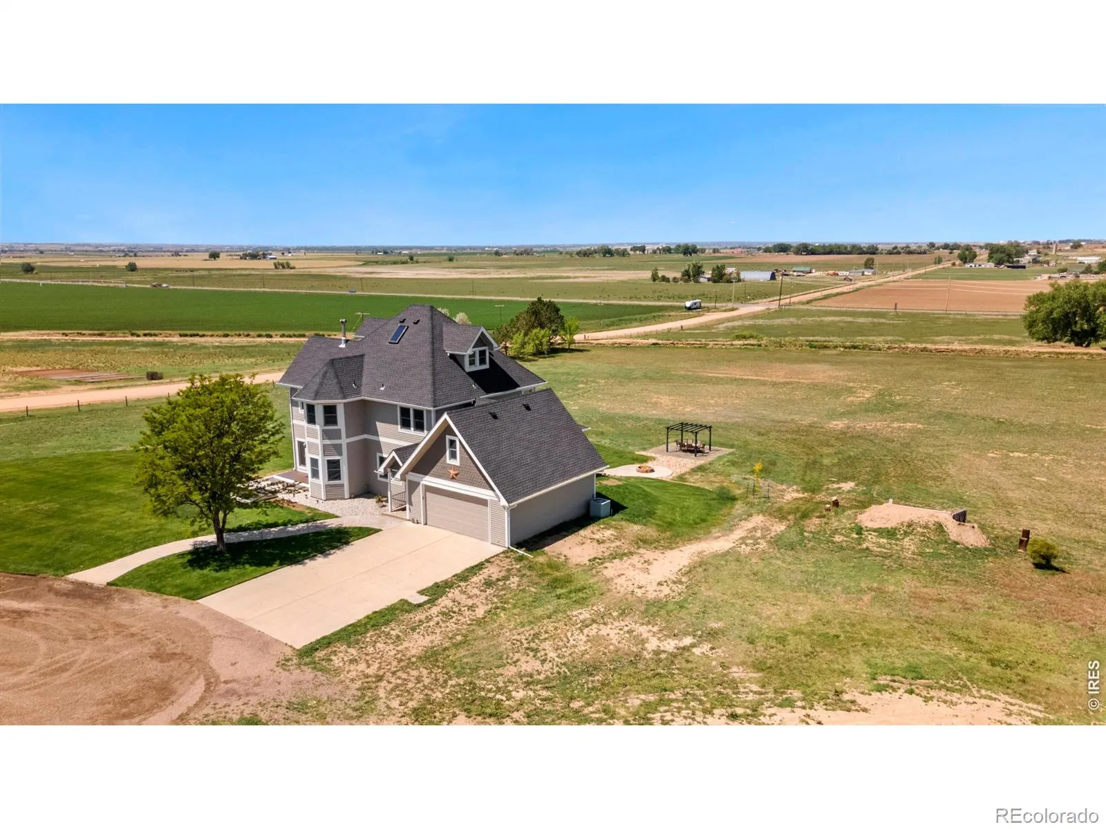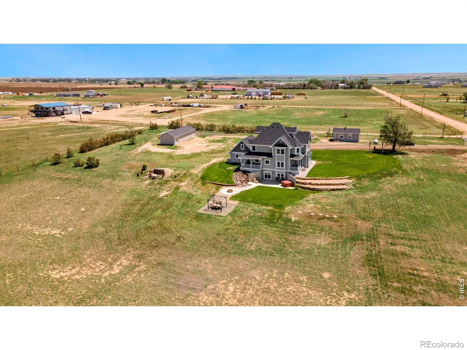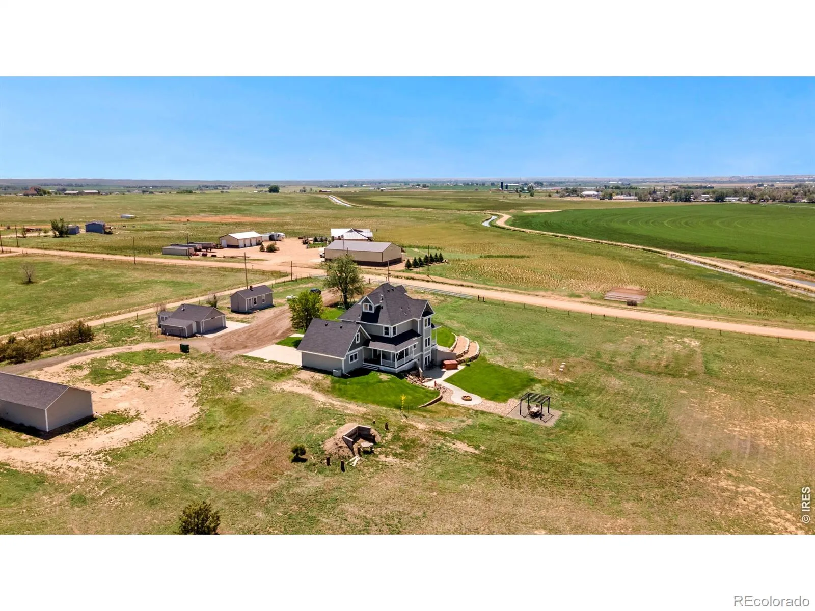 Welcome to a luxury custom built farmhouse that doesn’t just check boxes, it rewrites the list. Set on 15+ acres, this expansive 5,087 SF retreat offers 6 bedrooms, 4 bathrooms, and more garage and storage space than you’ll know what to do with. Offering the perfect balance of privacy and convenience, this extraordinary estate delivers space to breathe, room to roam, and luxury at every turn. Inside, sunlight pours through expansive windows, dancing across rich oak hardwood floors and into an open-concept layout. The show-stopping kitchen serves as the heart of the home, featuring ample cabinetry, granite countertops, a massive island, stainless steel appliances, and stunning Rocky Mountain views. It flows seamlessly into the dining and living areas, creating the perfect space for gathering. The primary suite is a true retreat, featuring a luxurious spa inspired bath with jetted soaking tub, and a massive walk-in closet with custom built-ins. Downstairs, a bar and second living space create the ultimate entertaining hub, complemented by a theatre room, wine cellar, and even a gun room. Multiple bonus rooms throughout the home offer flexibility for a home office, gym, playroom, or whatever your next chapter requires. Step outside to your private oasis. 3 trex decks, an expansive patio with a built-in fire pit, and a tranquil river rock waterfall surrounded by lush, meticulously maintained grounds are ready for your vision-whether it’s horses, livestock, or a hobby farm. With an oversized 2-car attached, separate 2-car detached garage, a 20×60 shop, and 460 sq foot bunk house there is plenty of room for toys, vehicles, equipment and big plans. Additional upgrades include a Class 4 roof, new furnace and A/C (2025), and new exterior paint (2026), providing peace of mind for years to come. Ideally located just minutes from Kersey, Greeley, and Eaton, within the highly desirable Platte Valley School District. This is the kind of home you’ll never want to leave.