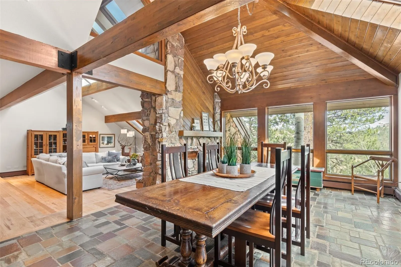 Welcome to 33208 Alta Vista Drive, an exceptional mountain estate in Evergreen’s coveted Soda Creek, one of the area’s crown jewel neighborhoods. Set on five private acres, the property is nestled among a stunning mix of aspen, ponderosa, and spruce, with a winding dual entrance drive that creates a memorable sense of arrival. Previously owned and thoughtfully renovated by renowned local builder David Williams, known for bringing the outdoors in, the home reflects a deep connection to its natural surroundings.