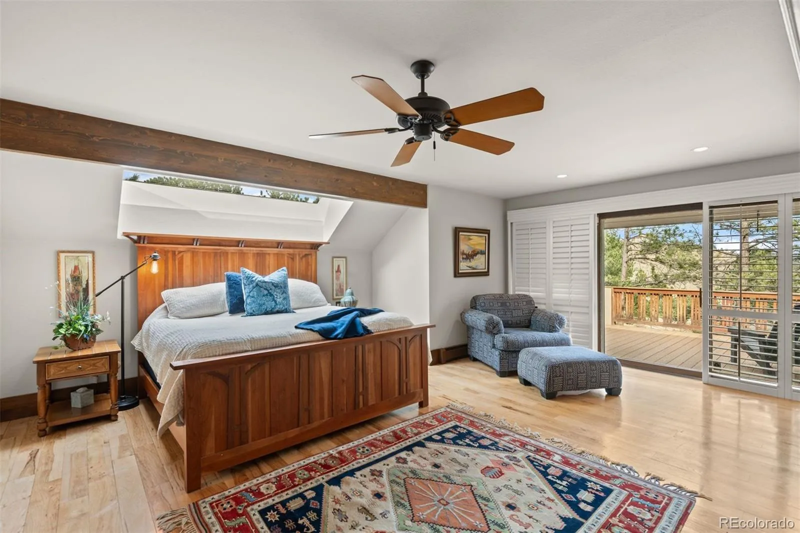 The primary suite is a private retreat with its own deck and a luxurious en suite bath featuring a custom walk-in shower, soaking tub, dual sinks, water closets, and an expansive wraparound walk-through closet.