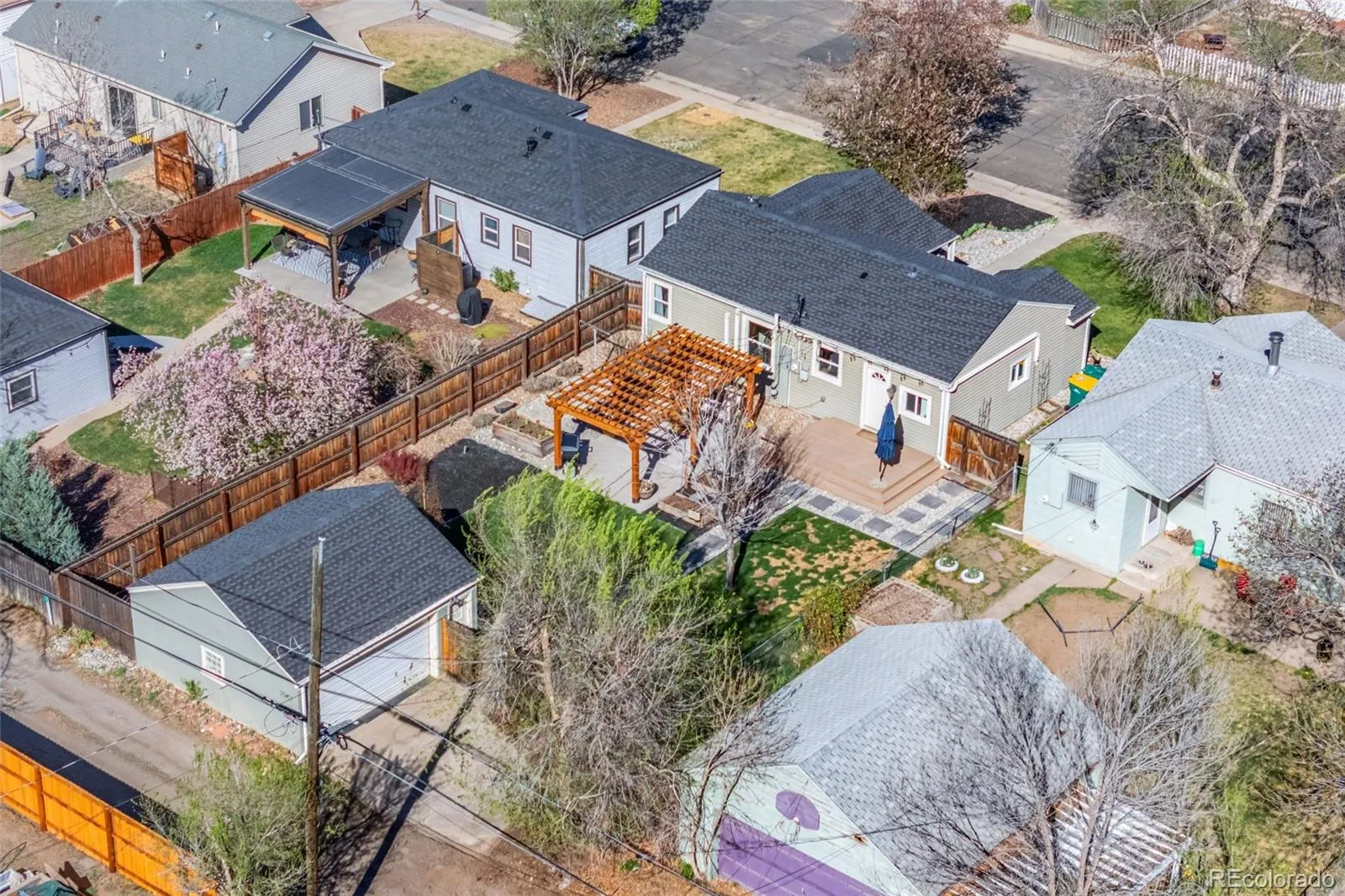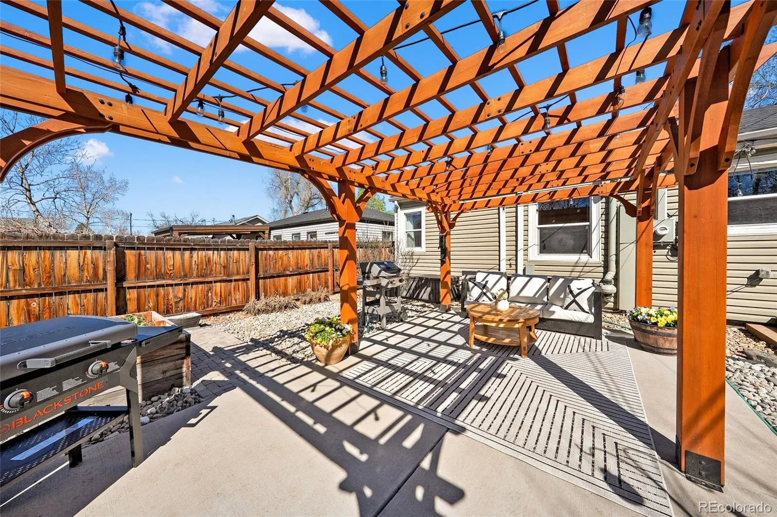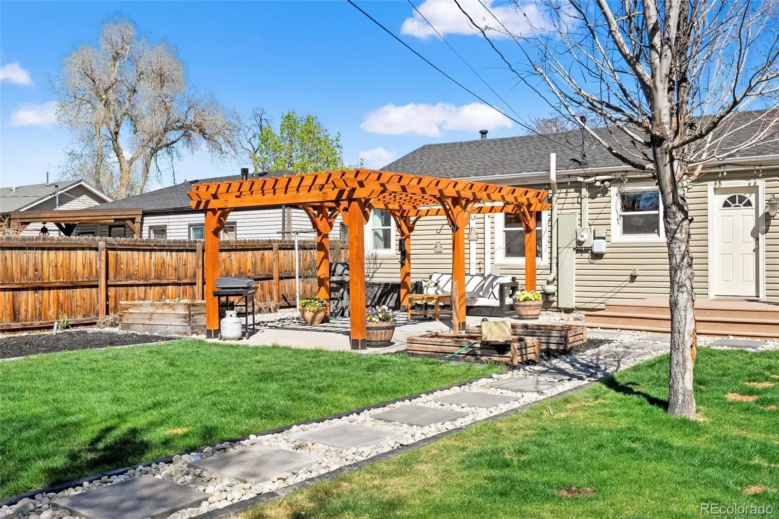 The finished backyard is designed for true Colorado living. Enjoy a pergola-covered patio, raised garden beds, and a spacious lawn ideal for relaxing or entertaining. A detached two-car garage adds both function and flexibility.