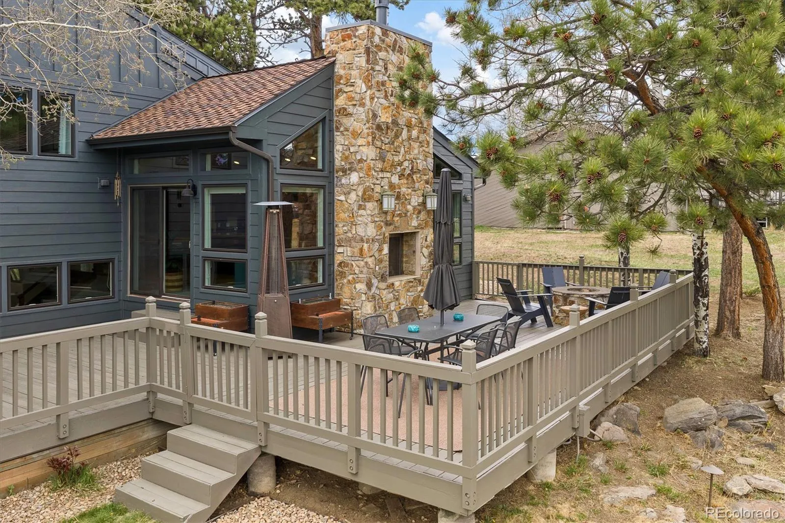 Modern Design | Great Architecture | Entertain in Style | This beautifully updated home blends sleek modern finishes with timeless architecture, creating a space that lives as beautifully as it looks. The light-filled living room welcomes you with soaring vaulted wood ceilings, window seat to take in the views and a fireplace, an ideal setting for relaxing evenings. The formal dining room offers an elegant space to gather, perfect for everything from intimate dinners to holiday celebrations. The cherry kitchen is designed for everyday living and effortless entertaining, featuring generous counter space, abundant cabinetry & island seating. A casual dining area with its own fireplace creates the perfect spot for morning coffee or relaxed meals, with seamless access to the expansive deck. The lower level features a family room that is sure to be a favorite gathering space, along with a guest bedroom and a ¾ bath. Upstairs, the primary suite is a true retreat, offering a spa-inspired bath with in-floor heating, & a large walk-in closet. Two additional bedrooms, a full bath, & a flexible office space provide room for work. The basement is currently set up as a playroom/gym, with endless potential to be customized to your lifestyle. Outdoor living shines with an expansive deck overlooking open space, an outdoor gas firepit, plus a double-sided fireplace shared with the kitchen. Additional highlights include a three-car heated garage, a well-designed mudroom, underground sprinklers & pet e-fence. Recent upgrades include Hardie board siding, AC splits, and landscaping. Just down the street from one of Genesee’s clubhouses, which offers a pool, tennis courts, & a playground. Residents also enjoy over 12 miles of hiking trails, 1,200 acres of open space, an additional community pool, a fitness center, & award-winning schools. An active calendar of social groups and abundant wildlife creates a true sense of community, all just a convenient 30-minute drive to downtown Denver.