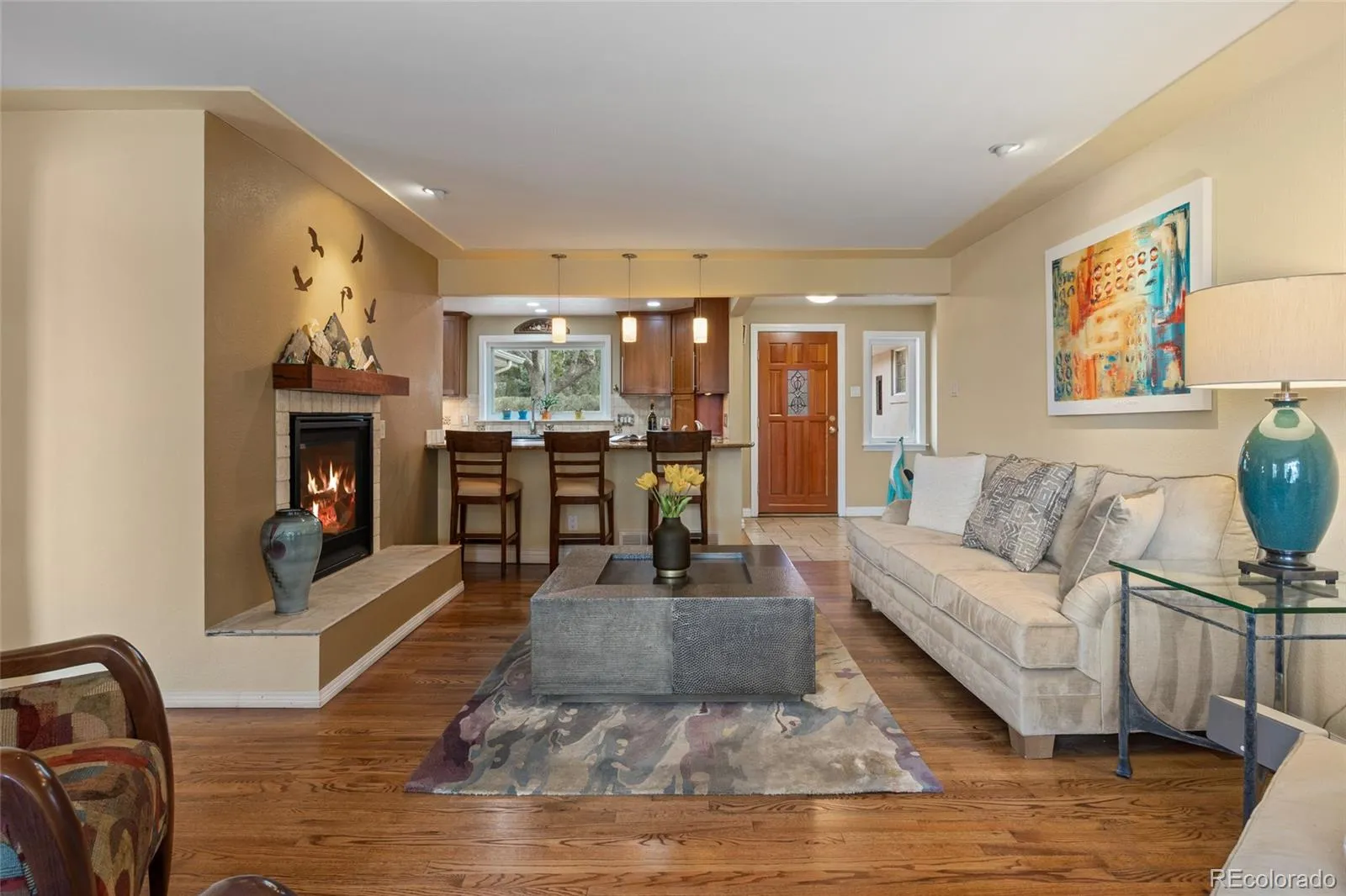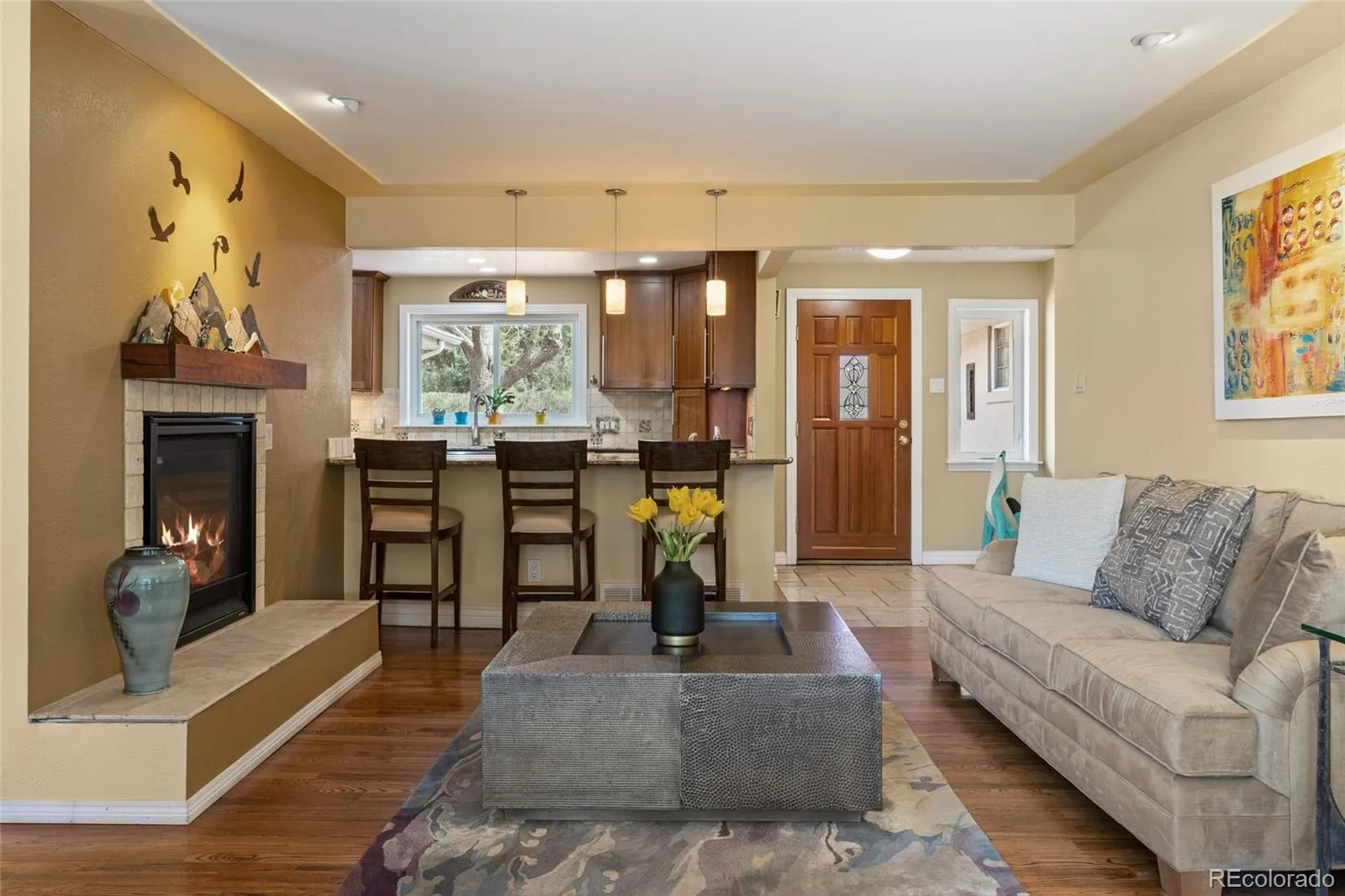 Welcome to effortless, elegant living in the heart of Greenwood Village. This beautifully designed ranch-style home offers the perfect blend of comfort, privacy, and convenience, all on one level. Step inside to an updated light-filled Great Room featuring a cozy gas fireplace and seamless connection to the kitchen—ideal for both everyday living and entertaining. A formal dining room provides a refined space for gatherings, while a separate TV/family room offers flexibility for relaxation or media use. Note the convenient attached room with wet bar and fridge for snacks and drinks!