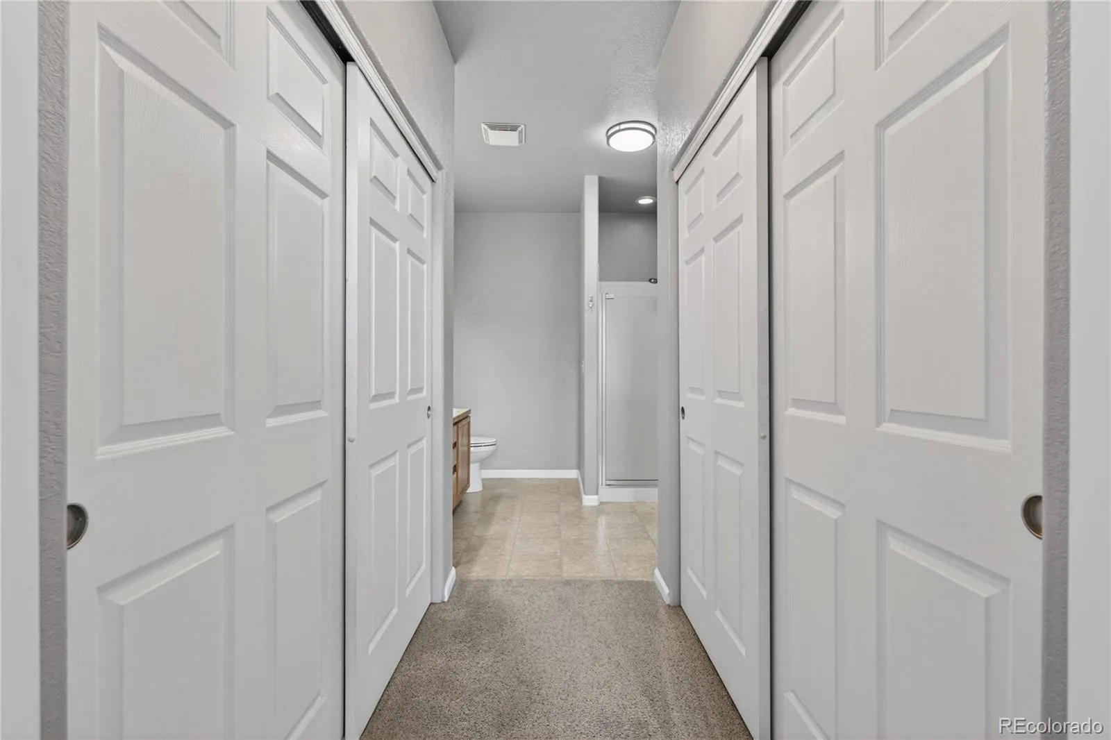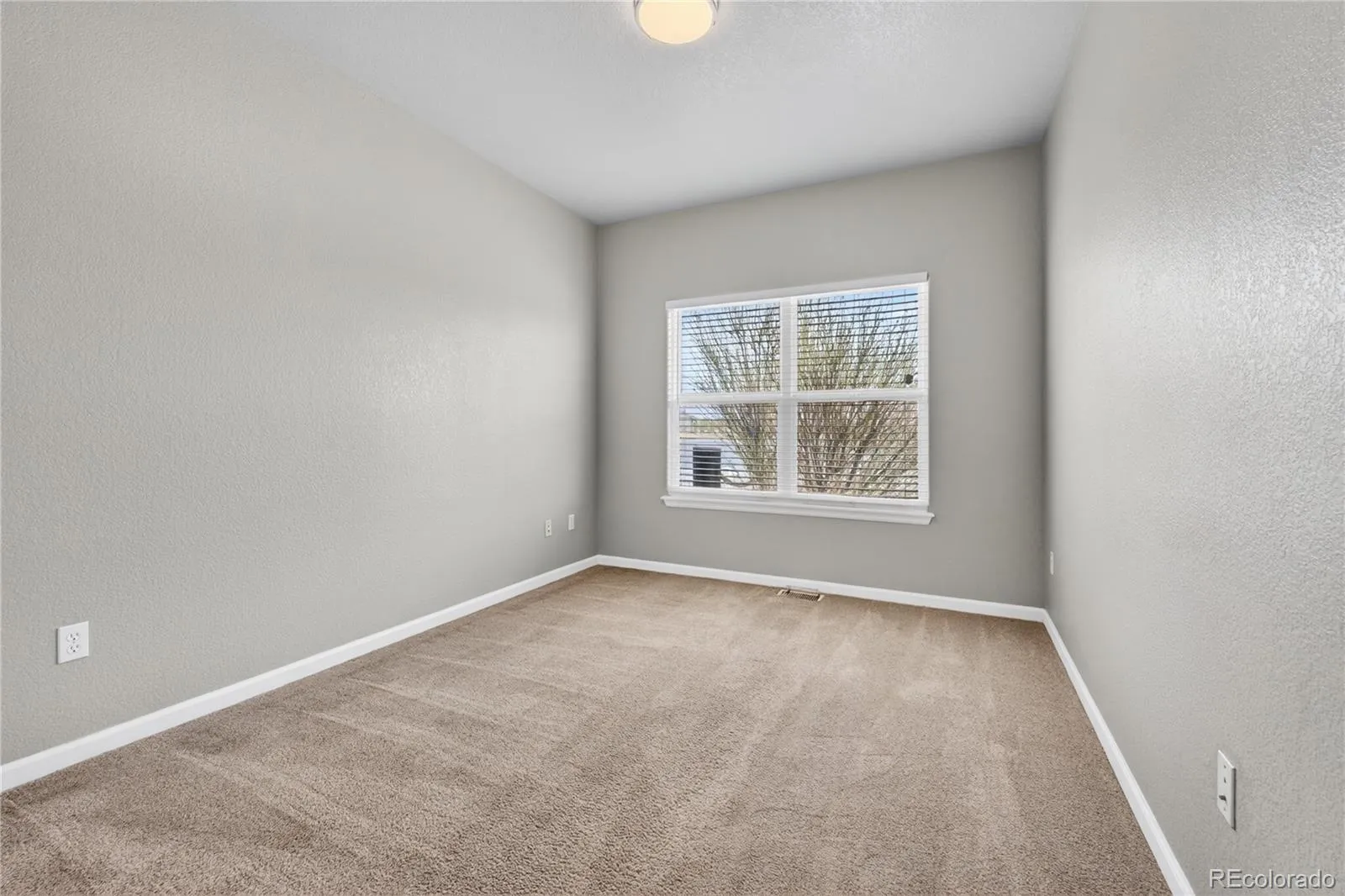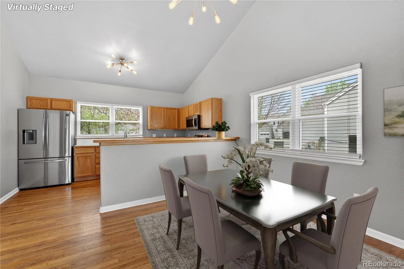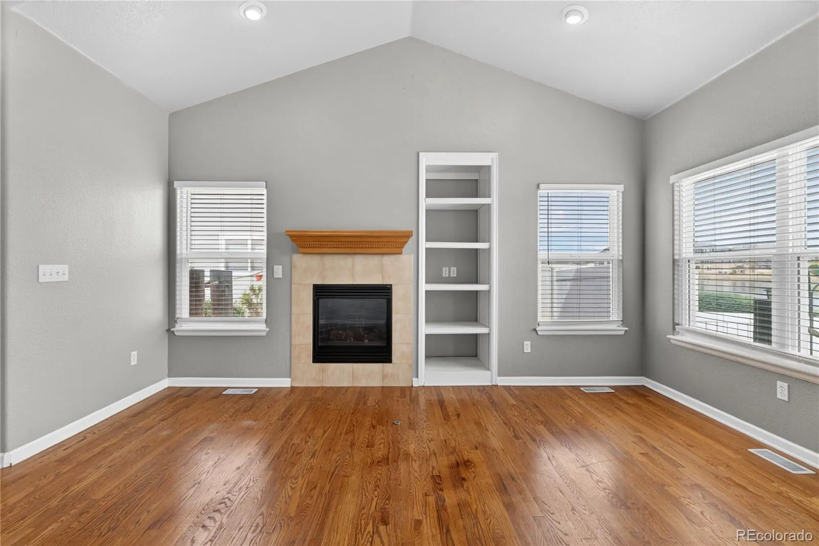 Perfectly positioned on the water in a quiet gated community, this rare end-unit ranch-style townhome offers a unique blend of lakefront living and low-maintenance comfort. From the moment you step inside, the home feels open and inviting, with soaring ceilings and dramatic two-story windows that fill the space with natural light and frame peaceful lake views. Newer windows in the living area and kitchen, along with updated glass in the bedrooms, enhance efficiency and clarity, making the views even more of a focal point. The living room is both bright and cozy, anchored by a gas fireplace that creates a warm, welcoming atmosphere. The kitchen is functional and well laid out, featuring newer stainless steel appliances and a seamless connection to the dining area. Wood blinds and ceiling fans add comfort throughout, while the open layout enhances the sense of space. Additional updates include a newer furnace and air conditioner, appliances, and washer and dryer. Both bedrooms feature large windows with beautiful lake views, creating a calm and relaxing setting. The primary suite stands out with a five-piece ensuite bath and generous dual closets. A dedicated laundry room with cabinetry adds convenience, and the encapsulated crawl space offers excellent storage. Step outside to direct access to the walking path around the lake, where you can enjoy the natural setting and local waterfowl. The fully fenced backyard is designed for easy upkeep, with red flagstone patio space and full water views that create a peaceful outdoor retreat. A cozy front porch with a bench and a wheelchair-accessible ramp adds thoughtful functionality. An oversized two-car garage with shelving provides additional storage. The location offers restaurants just a few blocks away and quick access to shopping at Northfield and Central Park, along with major highways and DIA. Bright, well-maintained, and set right on the lake, this home offers a comfortable, easy lifestyle.
