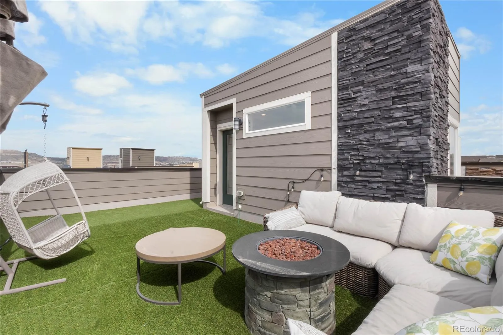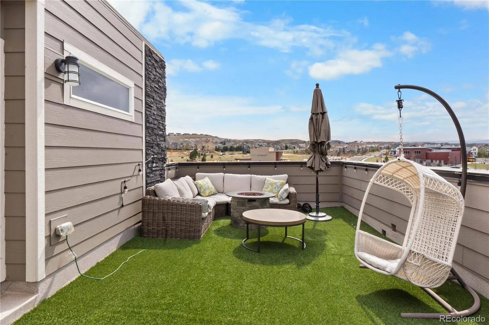 Refined, design-forward, this home delivers a seamless blend of sophistication, function, and elevated outdoor experience.Inside, the home opens to a light-filled, open-concept layout where expansive windows, high ceilings, and clean architectural lines create an airy, inviting atmosphere. The main living spaces are thoughtfully connected, offering both everyday comfort and an ideal flow for entertaining. The kitchen serves as the centerpiece—featuring generous prep space, abundant cabinetry, and a layout that keeps you connected to guests and gatherings at all times.The primary suite is a true retreat—spacious, built in closets, and well-appointed—while additional bedrooms provide versatility for guests, remote work, or lifestyle flexibility. Every space is designed with intention, balancing livability with elevated style. What truly sets this property apart is the rooftop deck—an entertainer’s dream and a rare vantage point in the community. This expansive outdoor living space offers panoramic mountain views, capturing Colorado’s iconic Front Range in full display. Imagine hosting sunset dinners, evening cocktails under the stars, or weekend gatherings with a backdrop that never gets old. The scale and privacy of the deck create a true extension of the home—designed for both intimate moments and larger social experiences. It’s not just an outdoor space—it’s a lifestyle feature that differentiates this property in a competitive market. Located in a highly desirable pocket of Castle Rock, with convenient access to shopping, dining, parks, and commuter routes, this home checks both lifestyle and logistical boxes.