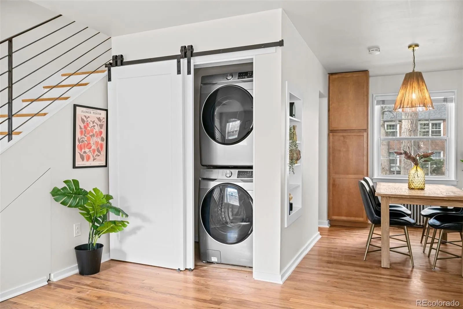 Both bedrooms feature built-in closet systems for ample storage and organization, while the sleek, tastefully updated bathroom offers style and functionality in equal measure. The kitchen is equipped with brand new, top-of-the-line appliances, making meal prep a breeze — and with in-unit washer and dryer, the laundromat is a thing of the past. An additional 7′ x 10′ storage space in the complex means room for everything.