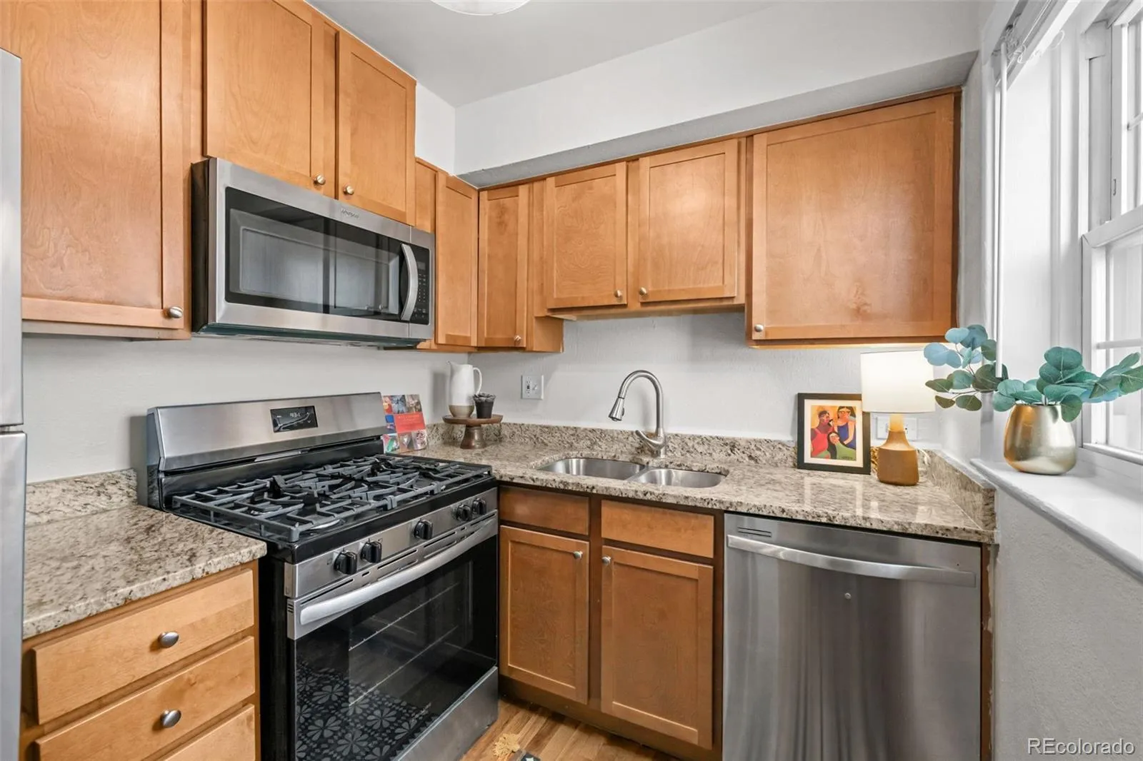 Welcome home to this stunning, move-in ready 2-bedroom, 1-bath Park Hill gem — a rare urban oasis where modern convenience meets serene natural beauty. Hardwood floors flow throughout, large windows fill every room with natural light, and a lush, beautifully maintained garden and green space right outside your front door sets this home apart from the rest.