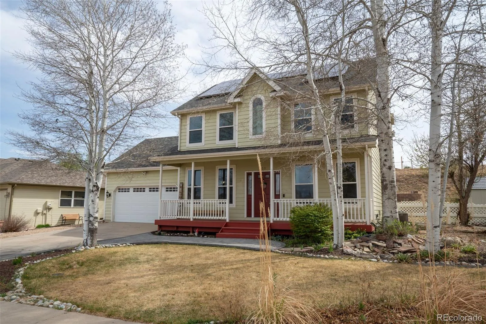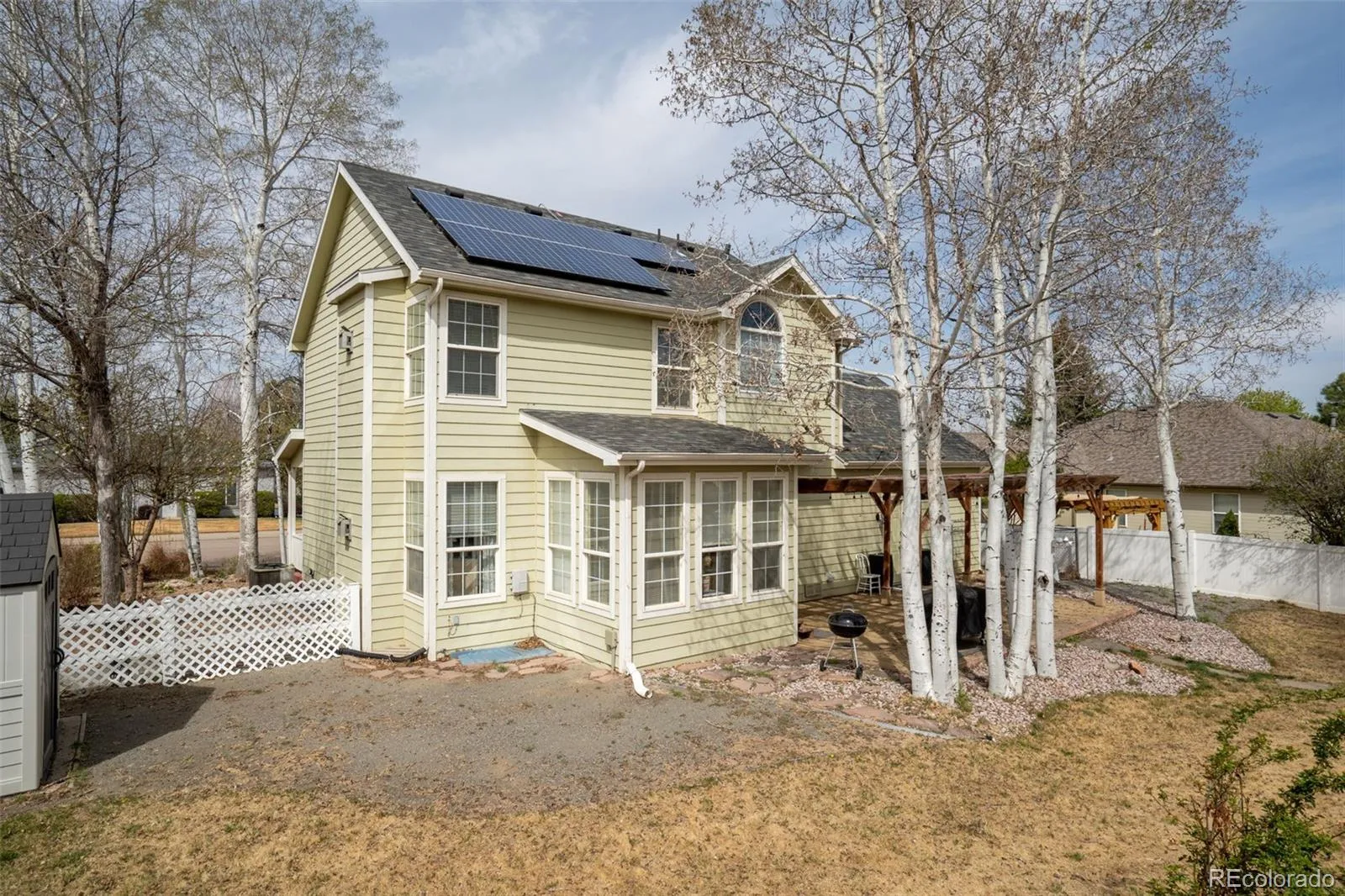 This 4 bedroom, 3 bath home has curb-appeal for days and absolutely oozes charm and personality! ALL the boxes get checked – the solar panels are owned, the upgraded kitchen features a functional layout, slab granite, and natural wood cabinets. The family room boasts warm hardwood flooring and a gas fireplace. The beautiful sun room is perfect for your cup of morning coffee. A spacious primary features a luxurious en-suite with jetted soaking tub and a 2nd cozy fireplace. Two additional bedrooms and full bath round out the upper level. The finished basement provides a large flex space for home theater, fitness area, or guest accommodations with a large conforming bedroom. The landscaped fenced backyard is a thoughtfully designed, tiered space that doesn’t back directly to the house behind it. It feels private, quiet, and intentional. Whether you’re under the pergola, around a fire pit, or enjoying the Colorado sky on the upper tier, this is a yard that you’ll actually enjoy spending your down time in. New windows, dishwasher & disposal ’23, smoke/fire detectors ’24, garage door (insulated) ’21. Close to schools, shopping, and trail access. Homes in Hunters Cove rarely come on the market. Showings begin Friday, 4/17