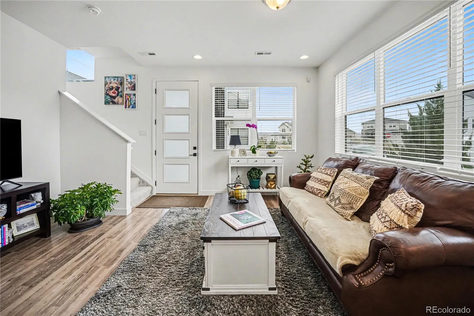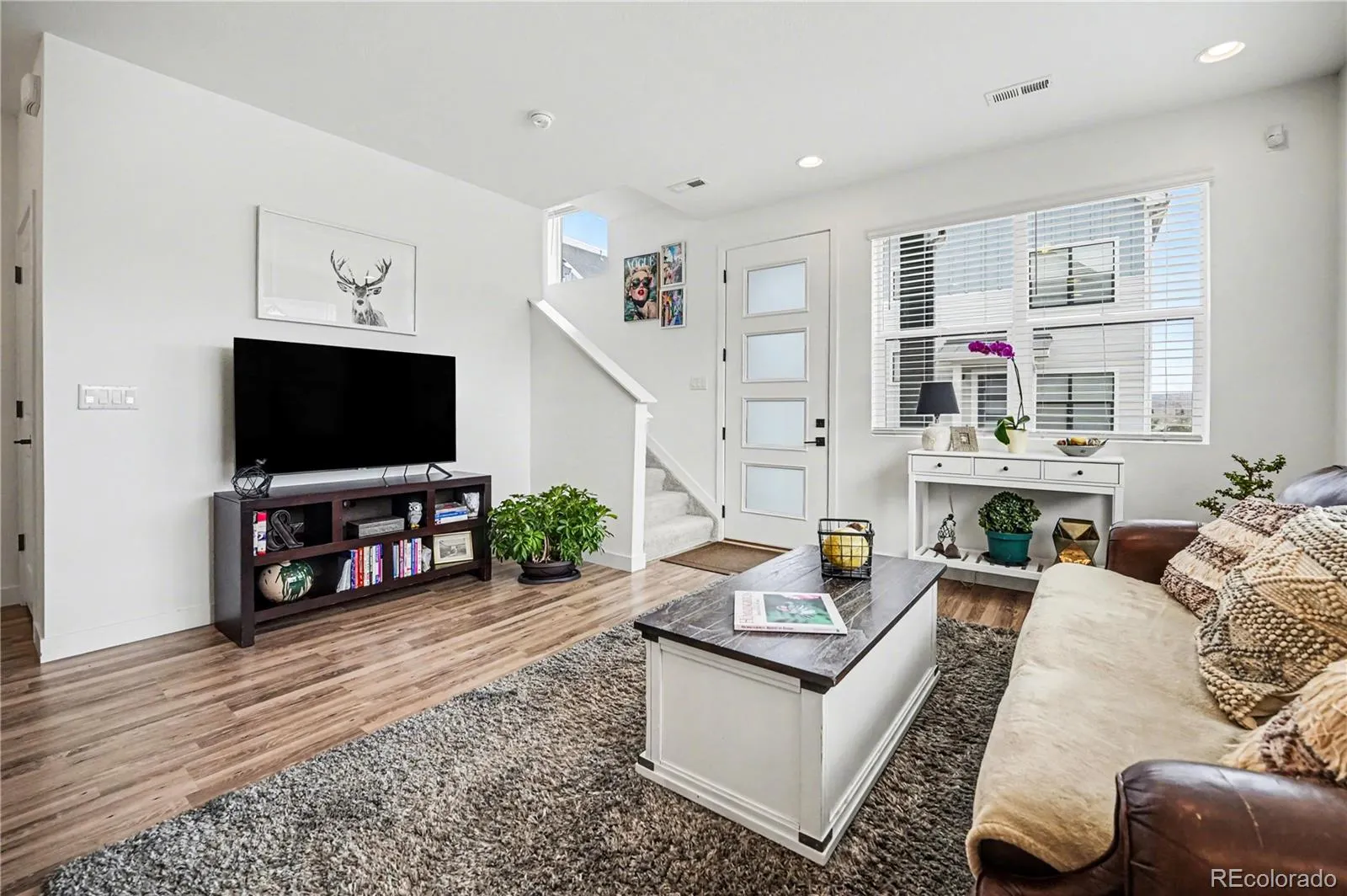 Step into a thoughtfully upgraded home where modern design and functionality come together. Tall ceilings, high baseboards, and upgraded black lever style hardware create a clean, cohesive feel, while bright windows fill the home with natural light. The main level features laminate flooring and a spacious living room with large windows and ceiling prewire for a fan. The kitchen offers quartz countertops, tiled backsplash, soft close cabinets and drawers, pantry, and a Kohler farmhouse sink. The island is prewired for pendant lighting, and the stainless appliance package includes a Whirlpool gas range with chef’s hood, microwave, dishwasher with fully stainless interior, Bosch refrigerator, and disposal. A half bath completes the main level. The primary suite features a walk in closet and an ensuite five piece bath with quartz counters, dual sinks, large tile flooring, recessed lighting, bidet ready outlet, and full ceiling height tile in the shower and tiled tub area. Two additional bedrooms offer ample storage, including one walk in closet. A full bath and laundry area with washer and dryer included complete the upper level. Additional features include smart home hub, builder installed security system, leased solar, tankless water heater, gas furnace, and central air. The insulated two car garage includes an outlet for EV charging and a water spigot. Sealed crawlspace adds storage. Enjoy a covered porch, foothill views, and an end unit location waking up to morning sun with South and East facing windows for the master suite and living room. Located between Chatfield State Park and Roxborough State Park with one free state parks pass per home annually. Community amenities include clubhouse with grand room and rentable pavilions, pool, fitness center, and trails. HOA covers snow removal in driveway and to front door, (WOW!) and exterior building maintenance including the roof.