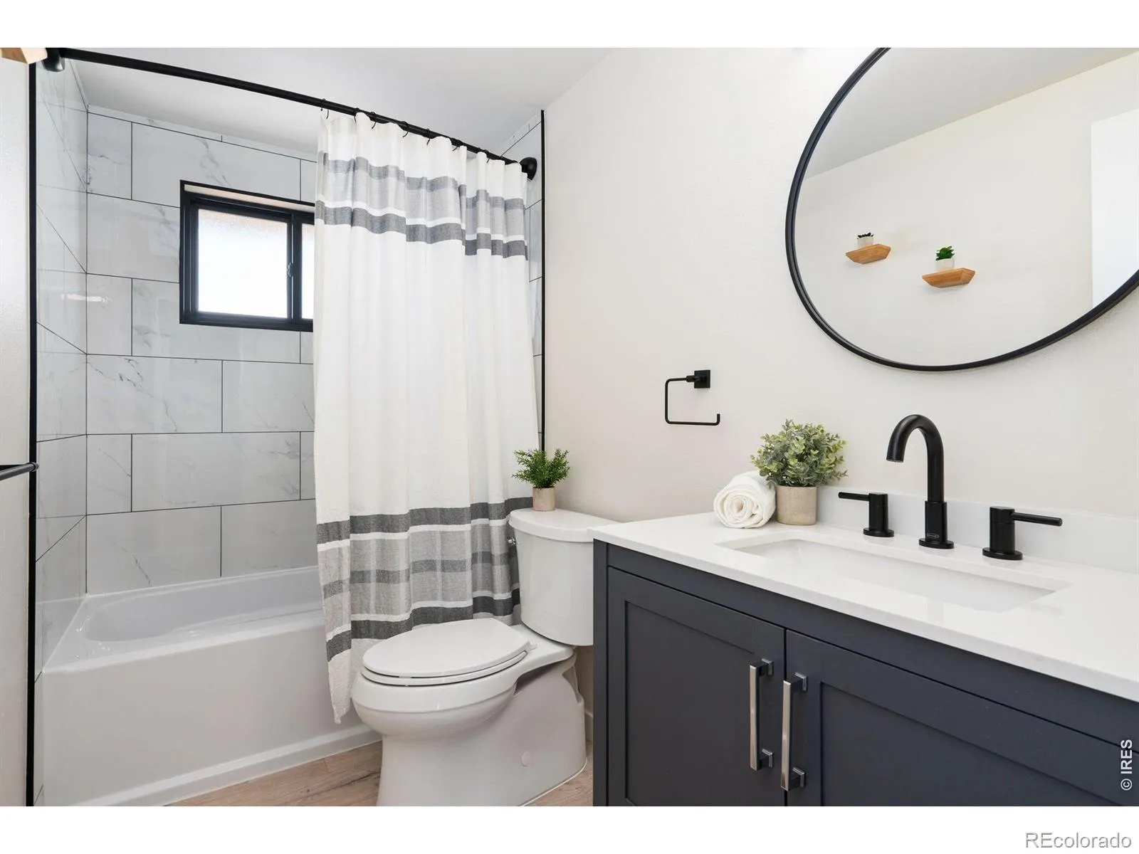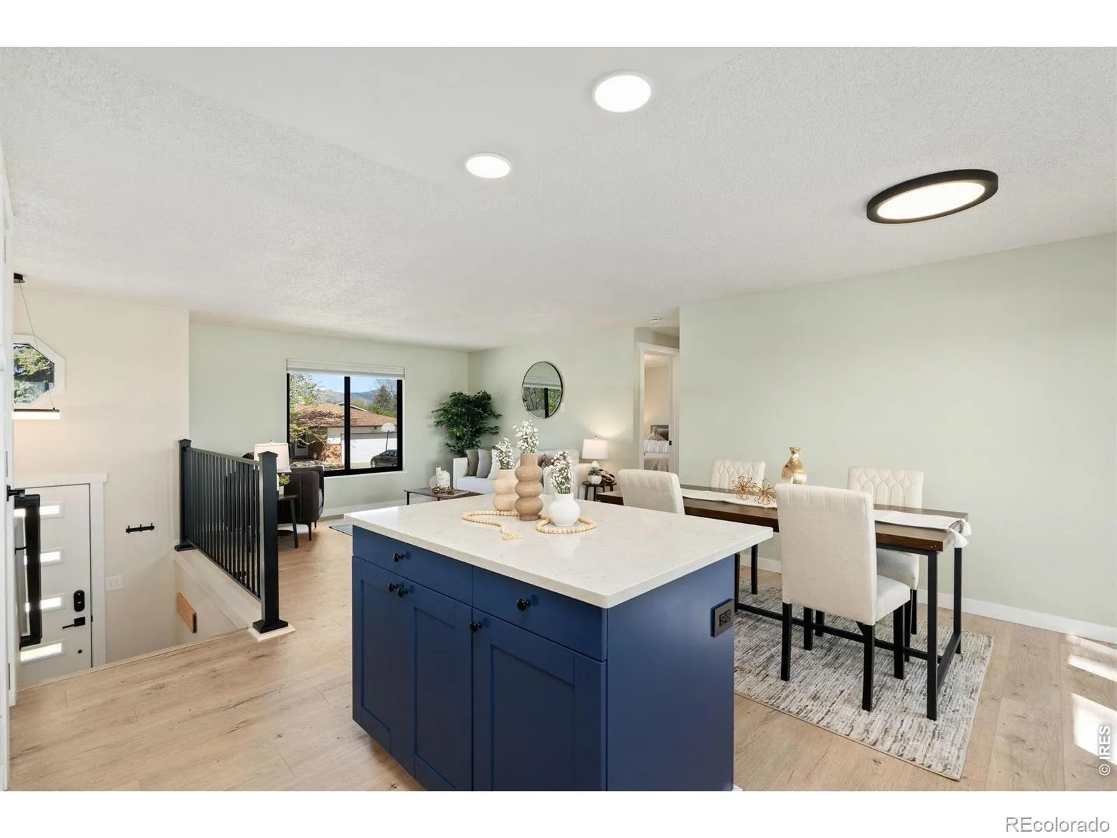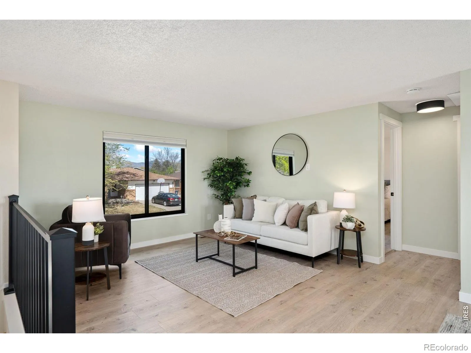 Renovated 3-bedroom, 2-bathroom bi-level in Johnson Estates, Loveland, CO – no HOA, and a mated pair of bald eagles nesting in the cottonwoods visible from the deck. This 1636-square-foot home backs to a working alfalfa field designated as permanent open space and overlooks private Ryan Gulch Reservoir. The open-concept main level features a fully renovated kitchen with white shaker cabinets, blue island, quartz counters, walk-in pantry, custom pot rack, fully vented range hood, large stainless sink, and newer GE stainless appliances with a gas range. A sunlit living and dining area opens to a spacious deck built for grilling and sunsets. Two upper bedrooms share a renovated full bath. The lower level offers a family room with wood-burning masonry fireplace, third conforming bedroom, renovated 3/4 bath, laundry with included smart washer and dryer, and direct entry to the attached 2-car garage. Luxury vinyl plank floors, new carpet, tile baths, new Kohler toilets, and an in-glass dog door to the deck. Systems and upgrades are premium: newer roof, furnace, central AC, water heater, full-home Pella Impervia fiberglass windows, added attic insulation, Nest thermostat, Nest video doorbell, WiFi garage opener, Rachio 5-zone smart sprinkler, seamless gutters with underground drainage, and Pulse gigabit fiber. The garage is fully insulated, electrically heated, and wired with two 240-volt circuits and shop lighting – EV, workshop, or home-gym ready. Fully fenced yard, raised garden beds, and a custom lockable shed. Quick access to Highway 402 and I-25. Minutes to Mariana Butte Golf Course, Devil’s Backbone, and downtown Loveland. Move-in ready; Cash, Conventional, FHA, VA. Call today to schedule a private showing.