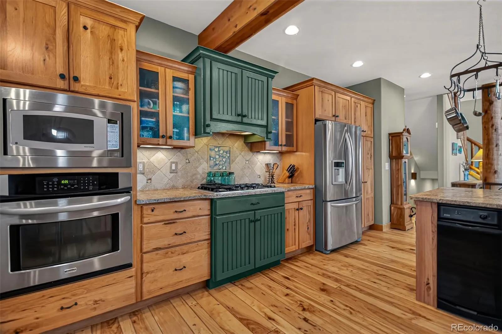 Welcome to unparalleled craftsmanship in this stunning 3,878 sq. ft. mountain retreat, perfectly situated in the gated community of Crystal Park. This 3 bedroom, 3 bathroom home features a heated 3 car garage and is built to impress with Hardie Board siding, 50-year roof shingles, and a wrap-around Trex deck. Inside, the attention to detail is remarkable, featuring knotty pecan flooring and knotty hickory cabinets and doors throughout. The gourmet kitchen is a chef’s dream, boasting leathered granite countertops, custom painted aspen tiles, and clever storage solutions like pullout pantry shelves and a window seat. The 5 piece primary suite is a true sanctuary with a private deck, jetted bathtub, copper sinks, and granite counters plus high-end, custom finishes throughout all bathrooms, including a main floor bath adorned with iconic Van Briggle tile. The great room centers around a majestic river rock fireplace with a gas log insert, illuminated by upgraded lighting including a custom antler fixture. This home offers radiant floor heat throughout, an instant hot water system, and a 14KW backup generator. Safety and longevity are ensured with an acid water reduction system, radon mitigation, and a roof top sprinkler system. Additional features include a basement Murphy bed, utility sinks in the laundry and garage, a 25-foot solar-lit flagpole, an asphalt driveway, an RV dump station, and a storage shed. This is a rare blend of rugged mountain beauty and sophisticated luxury… Come see this home today!