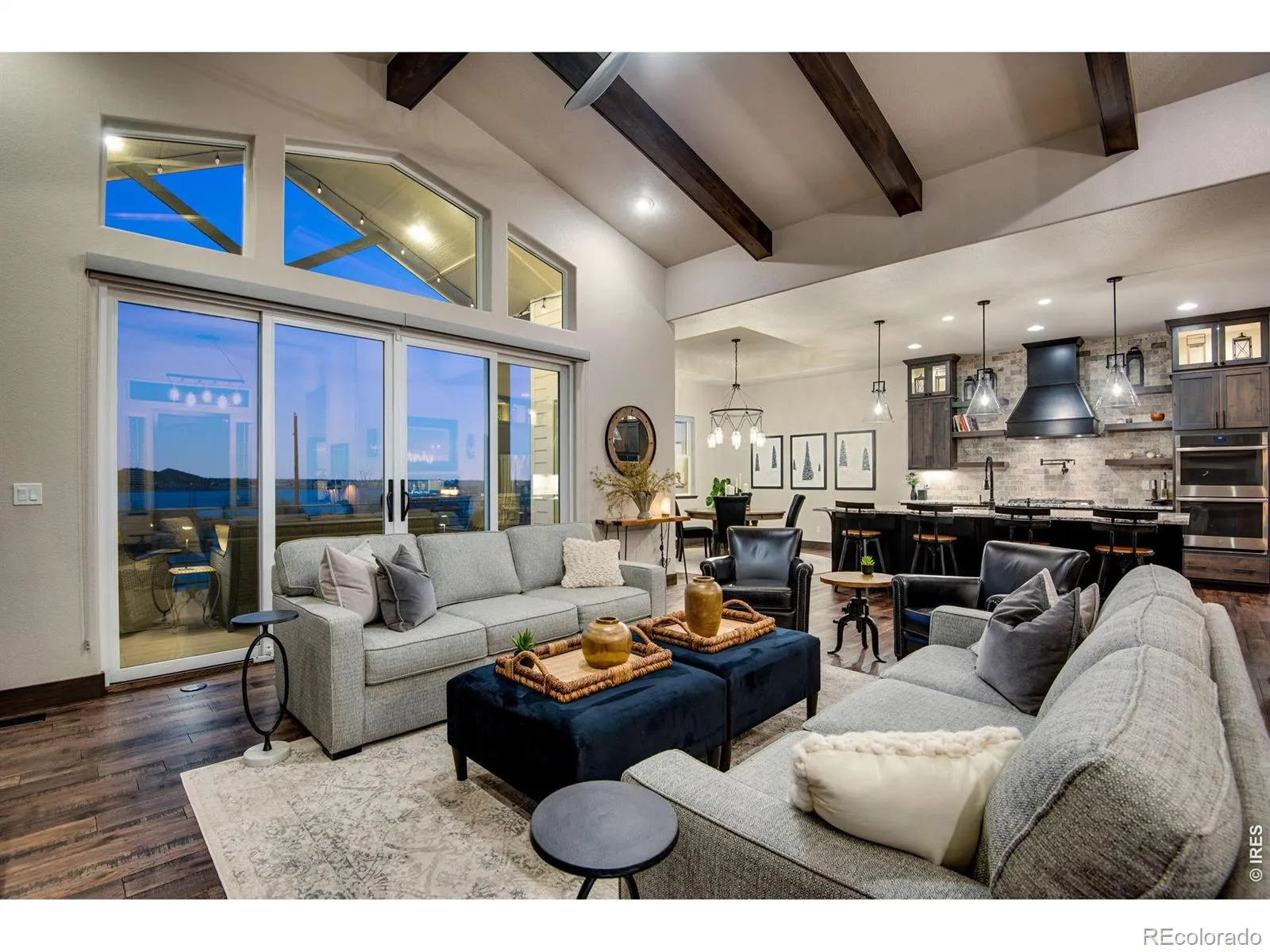 Back on the market through no fault of the home. The buyers financing fell through. Now is your chance! Come see why Loveland, CO is frequently voted as one of the best places to live or retire in America. Known as the City of Love, Loveland is the gateway to Estes Park and Rocky Mountain National Park, and offers outstanding restaurants, entertainment, breweries, community festivities, trails, parks, and recreation. Incredible Boedecker Lake and Rocky Mountain views. This home offers luxury living at its finest and you can enjoy nature and wildlife from nearly every window. This custom-built ranch style property offers something for everyone with over 5,400 total square feet. 5 beds, 5 baths and an oversized 4 car finished garage with southern exposure for plenty of natural snow melt. The main floor features a split floor plan with an expansive primary bedroom taking the entire east wing. Both guest bedrooms are spacious and feature private baths and patio access. The gourmet kitchen features a walk-in pantry, stainless steel appliances, 5-burner gas range, double ovens, pot-filler, granite slab countertops and a center island with breakfast bar. Large dining area overlooks the open space and lake. The primary suite with retreat features a large walk-in closet plus a 5-piece luxury bath with oversized shower and freestanding clawfoot tub. The family room offers spectacular views, vaulted ceilings, and a gas fireplace with floor to ceiling stone. The walk-out basement features 9′ ceilings, 2 additional bedrooms (one currently used as an office), media corner, billiard room, wet bar, and plenty of storage. The oversized covered and uncovered patio features Trex decking, iron railing, and landscape lights. Additional features include central A/C, 2 40-gallon water heaters, active radon system, wood-burning fire-pit with pergola, sprinkler and drip system, hardwood floors, high-end light fixtures, humidifier, and so much more.
