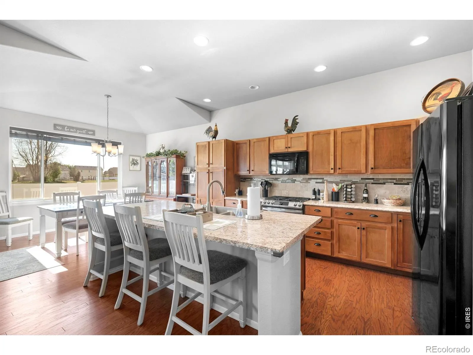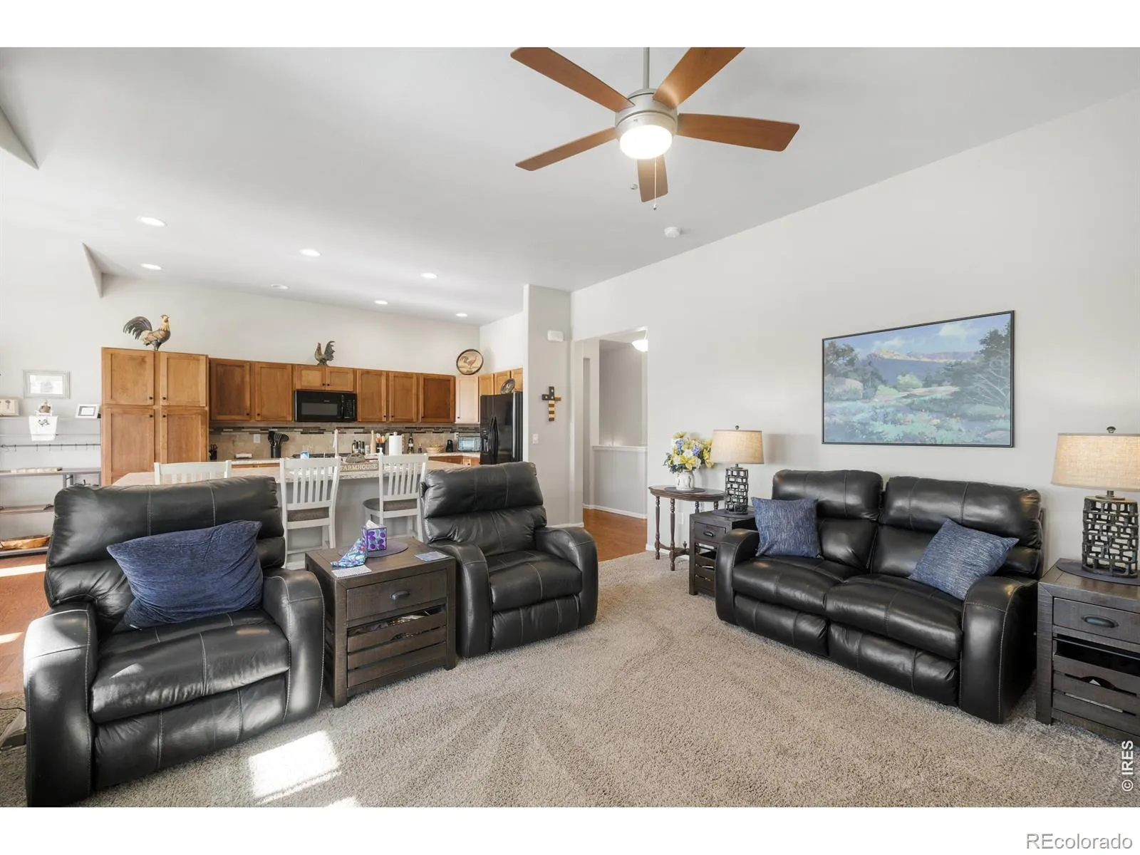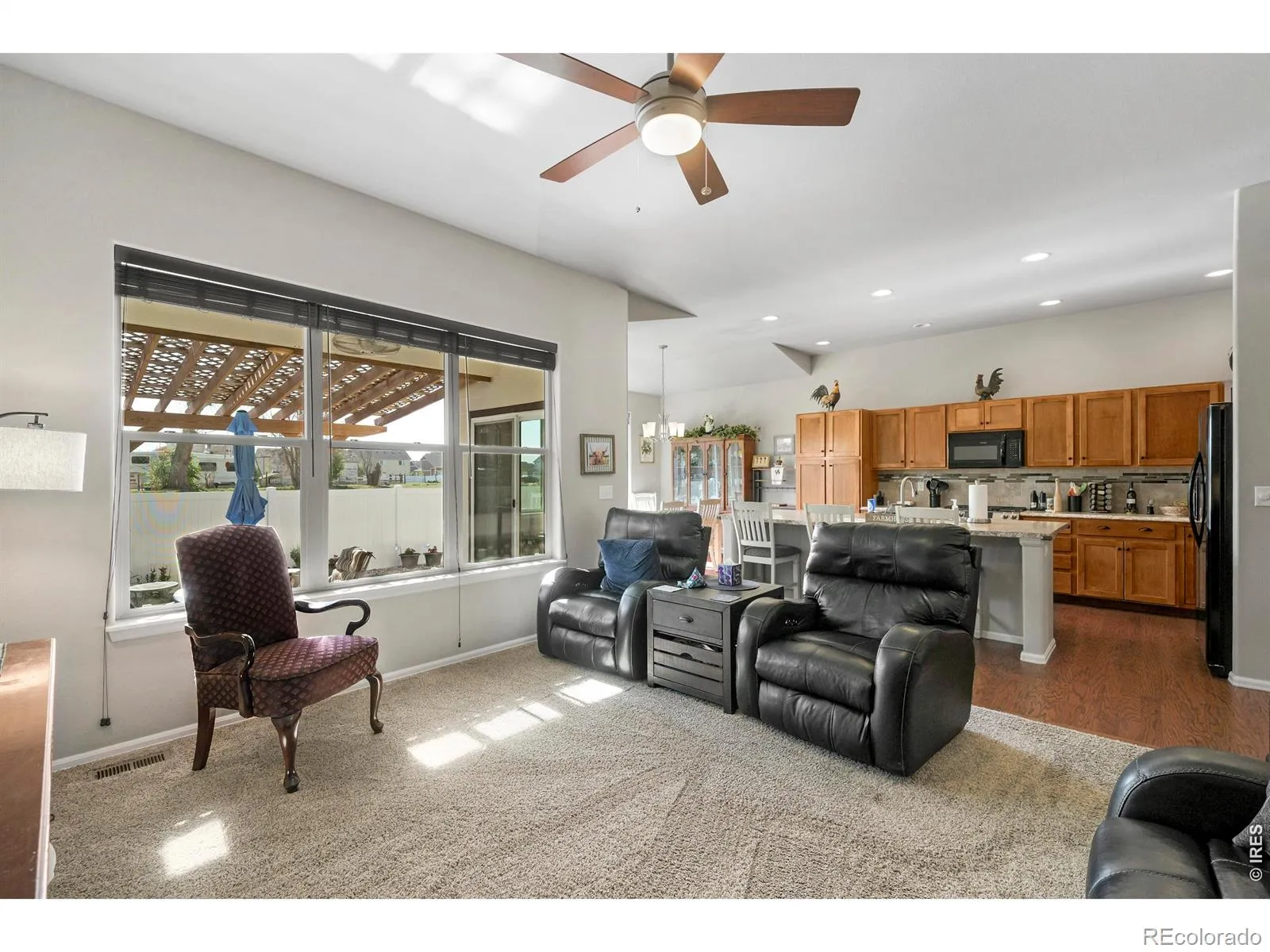 Expansive Ranch with Mountain Views, Gourmet Kitchen & Private Backyard Oasis! Discover comfort and craftsmanship in this stunning 3,572 Sq. Ft. Ranch-Style Retreat with Mountain Views that backs to a small farmstead. From its 10′ Ceilings, to its thoughtfully designed layout, this 2 Bedroom, 2.5 Bath Home with a Main-Level Office with French Doors (that could be the 3rd Bedroom), exudes warmth, elegance, and function. The heart of the home is a chef’s dream Kitchen-featuring Cinnamon Maple Cabinets, including new Cabinet Hardware, Wide Plank Wood Floors, a massive Center Island, and top-of-the-line upgrades like a Convection Oven with Air Fryer, Dehydrator, and Bread Proofing Function ($3,500 value). Enjoy cooking on your Gas Cooktop and washing up in a brand-new Oversized Sink with Designer Faucet. Attached Large Living Room that has (HDTV in Antenna in Garage), with 2 Large Windows looking out onto the Backyard. The SPACIOUS Primary Suite offers a Large spa-like 5-Piece Bath with Soaking Tub, Walk-In SHOWER and a generous Walk-In Closet and separate Vanities for extra space! Full Unfinished Basement for further storage or expansion. Step outside to your Private and Shady, Fully Fenced Backyard Sanctuary with low maintenance. Entertain in style under the Pergola, or fire up the grill at the Custom-Built BBQ Station on the Extended Colored and Stamped Concrete Patio. An added bonus of a Huge Garage with 8 ‘ Garage Door, Storage Loft, Built-In Shelves, Workshop Space and Tool Area. All this in an excellent location to shopping and schools.