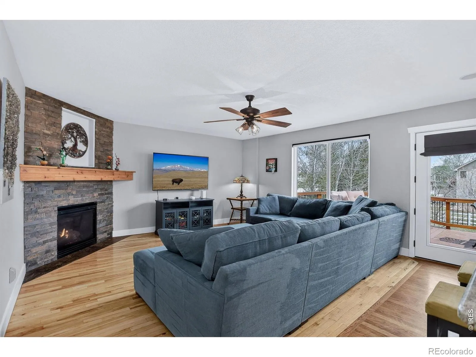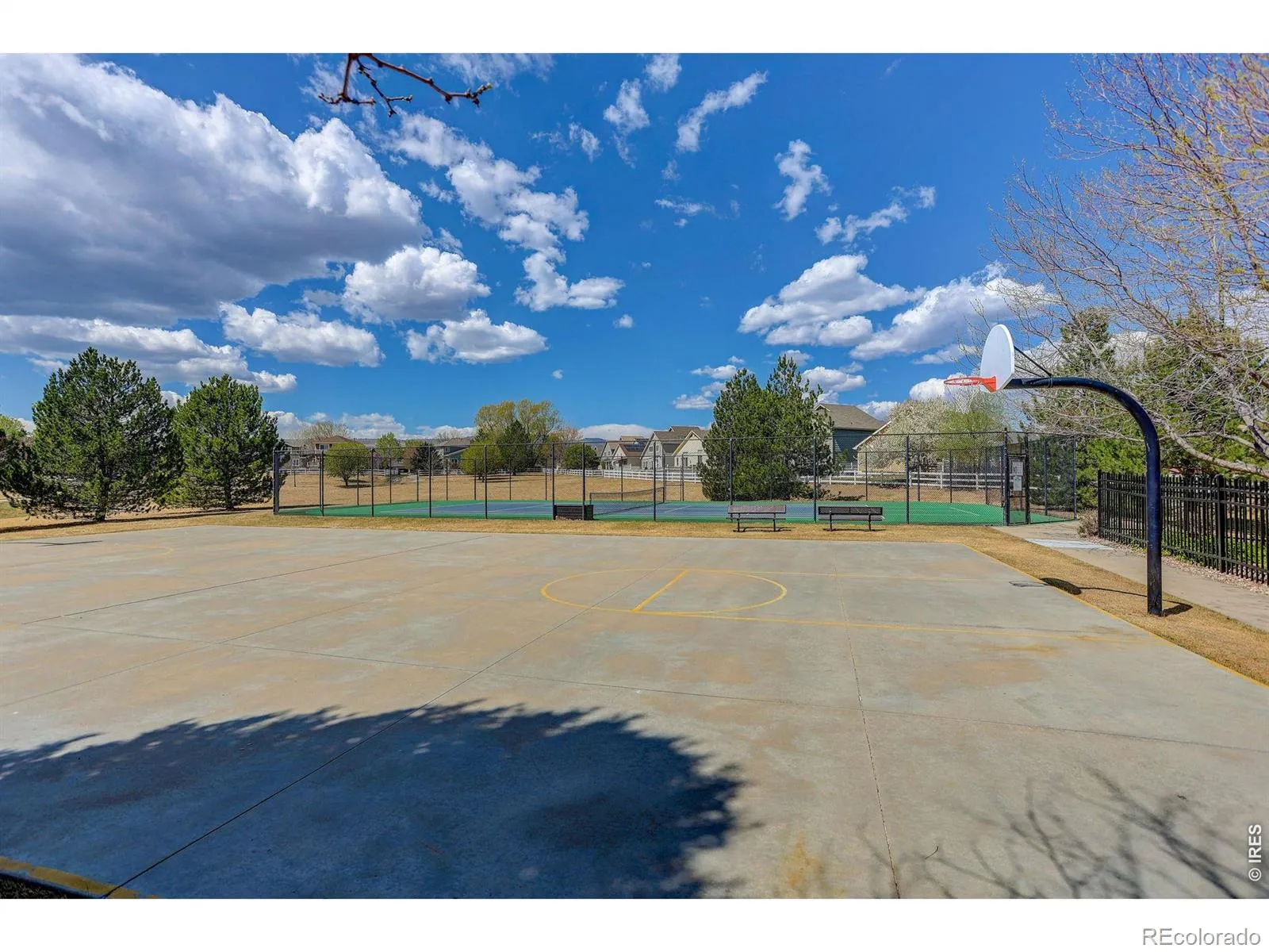 Welcome to this beautifully updated two-story home in desirable southwest Fort Collins, with 5 bedrooms and 4 bathrooms that is perfectly situated backing to a greenbelt. New interior paint, windows, and carpet throughout, this home is truly move-in ready. Enter into a bright formal sitting room with dramatic vaulted ceilings. The spacious kitchen features granite countertops, abundant cabinet storage, and a stylish backsplash, opening to a comfortable living room with a fireplace, plus a convenient half bath, formal dining space and main-floor laundry. From the kitchen, walk out to a large deck- ideal for relaxing, entertaining, or grilling. Upstairs, the primary suite offers a walk-in closet and a fully remodeled bathroom with an oversized spa-style shower, jetted tub, and quartz countertops. Three additional bedrooms and a full bath with updated quartz counters complete the upper level. The finished walk-out basement includes another bedroom, bathroom, second living area, playroom, and plenty of storage. Outside, the backyard is thoughtfully updated with a new sprinkler system, concrete edging, sandpit, fresh landscaping, and mature trees. Enjoy HOA amenities including pool access! All in a prime Front Range location for perfect blend of space, updates, and comfort.