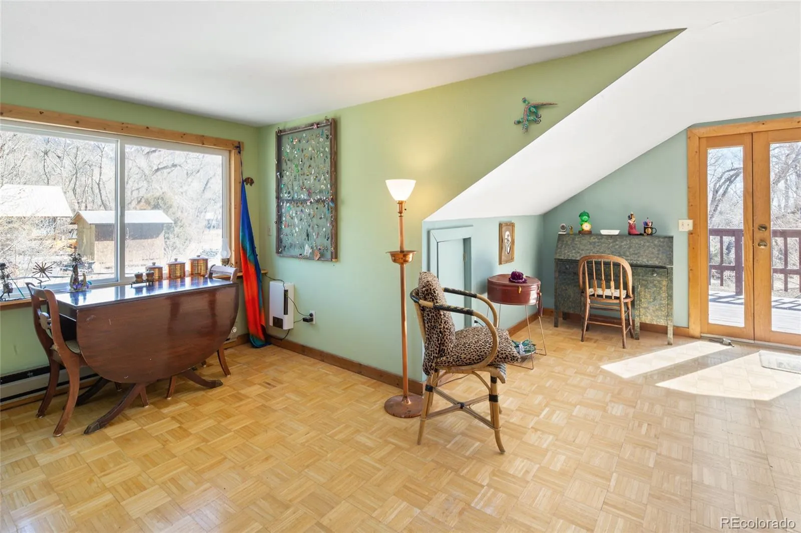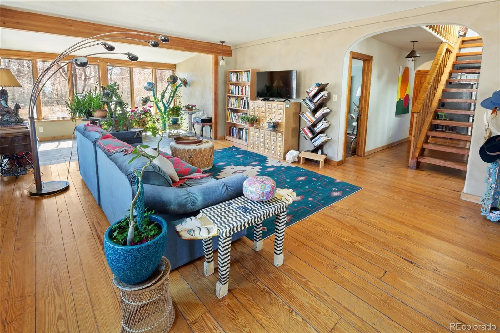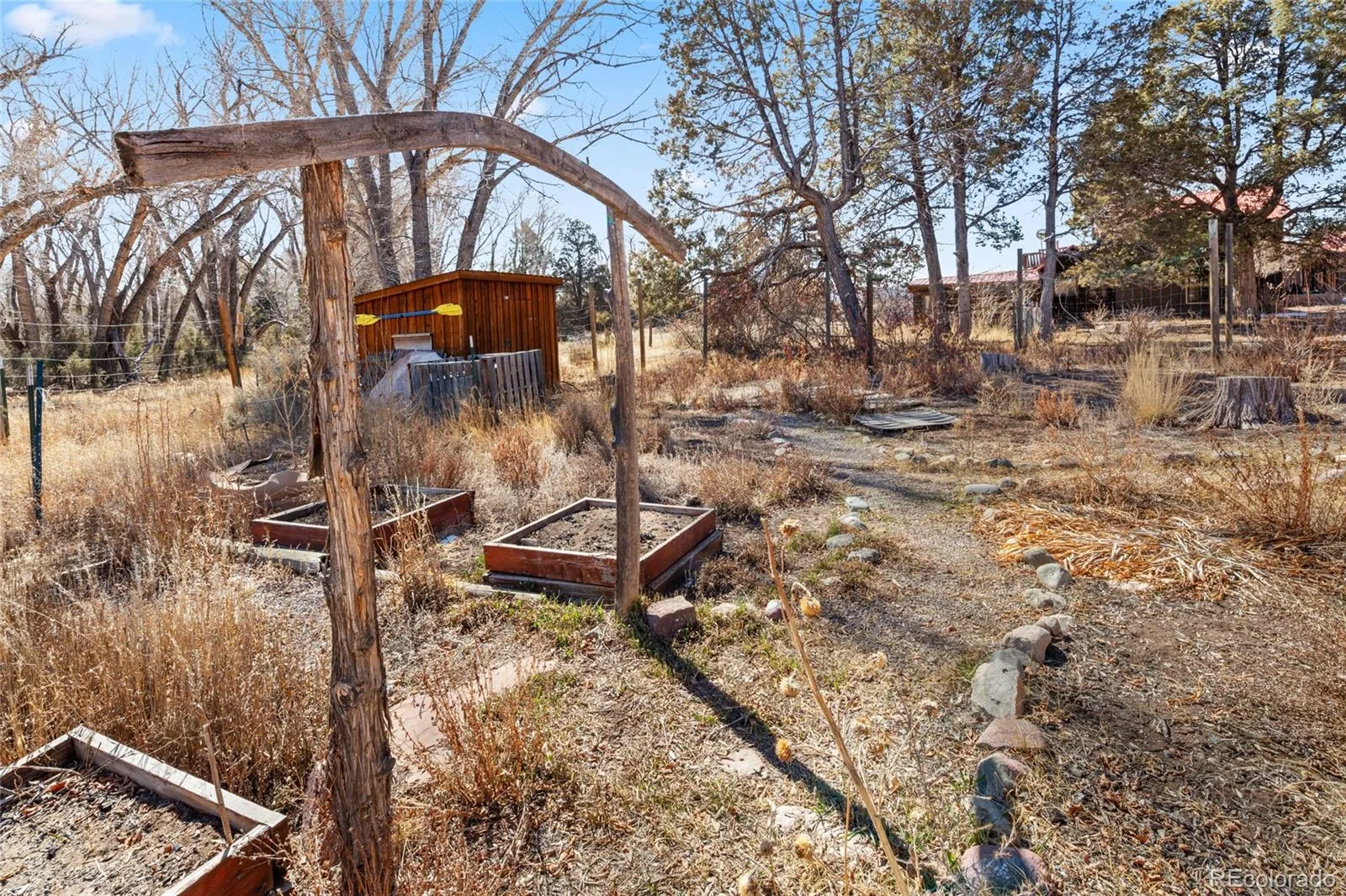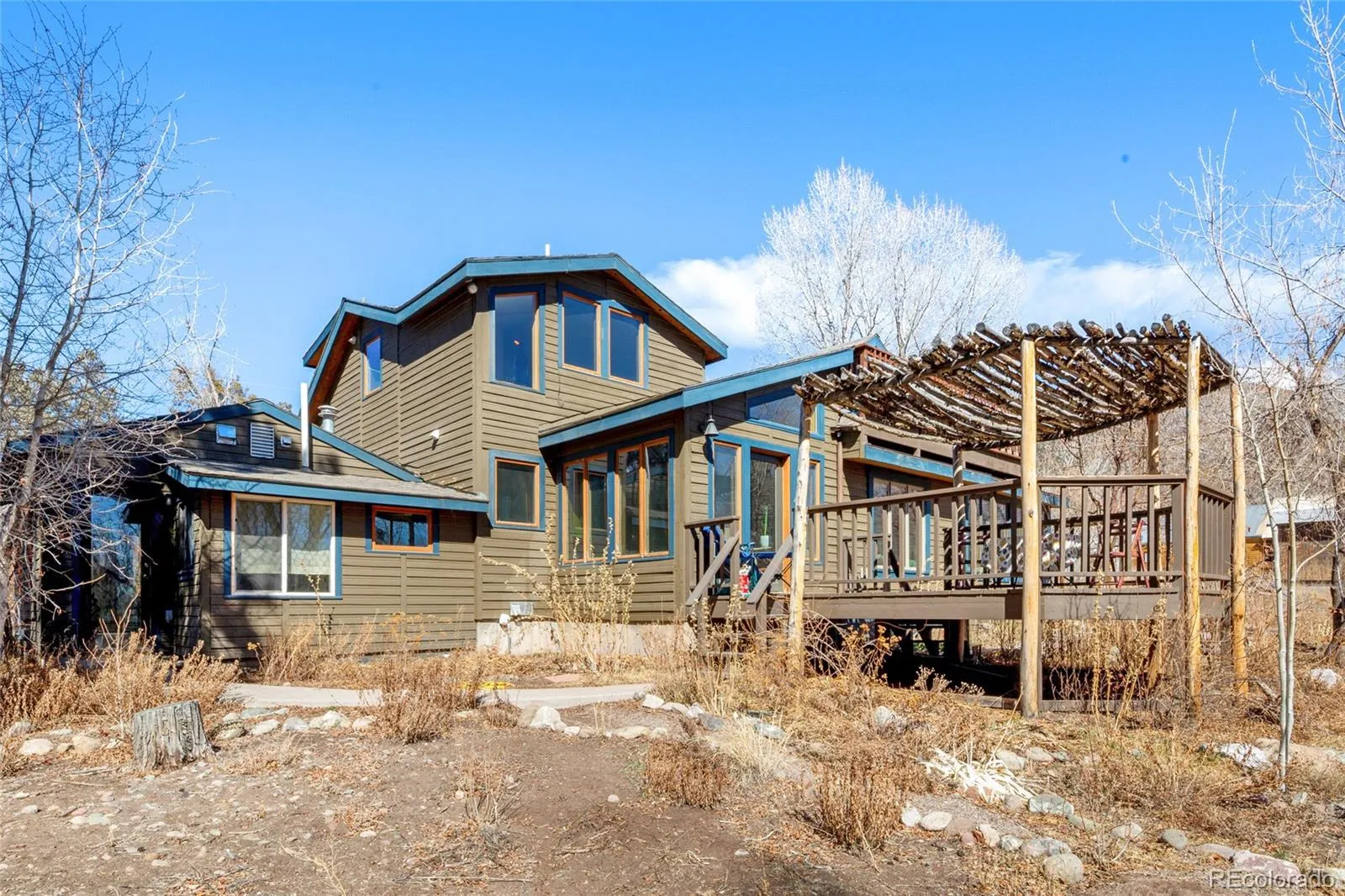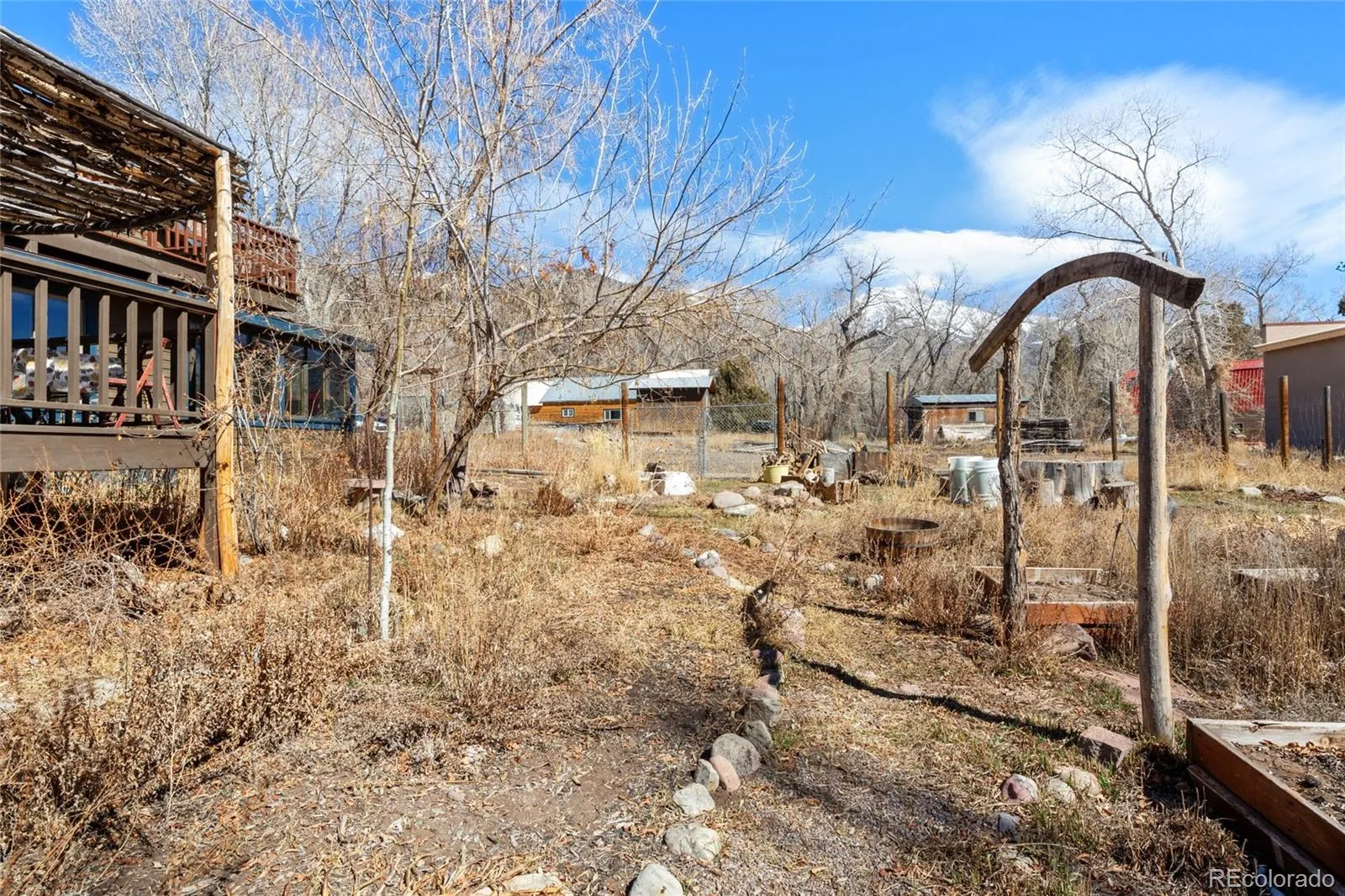 Incredible Location, situated on the outskirts of the town of Crestone in Saguache County, this beautifully maintained home provides walkable proximity to town with extensively maintained gardens and fruit trees. 100 year old sand plum trees greet you as you enter the garden gates ahead of the front door. Entering into the spacious living room, the sunlight pours in from all directions. Reclaimed yellow pine from a New Hampshire barn adorn the floors, while the walls throughout are a beautiful plaster application. The entire house is adequately heated with a large woodturning stove, but hot water baseboard heat is also available as a back up. Just off the living room, the study as serves as a passthrough to the Dining room and kitchen. The kitchen features a stainless steel refrigerator and Range/Oven, and a beautiful faux-tin backsplash, and slate tile countertops. With ample room to cook and serve food, the counters face the light-filled dining room. Continuing off of the kitchen, you will encounter the downstairs 3/4 bathroom with a full sized washer and dryer in the closet. Further down the hallway is the downstairs bedroom, with ample closet space. As you move to the upstairs space, you land at open master bedroom, with beautiful views of the mountains and creek surrounding the property. The master bathroom features both a deep soaking tub and a glass 1/2 wall shower. Large closets line a the hallway leading to the rest of the upstairs house, featuring a large 3rd bedroom/craft room area, adorned with parquet floors and filled with light, with a large balcony overlooking the backyard gardens. Additionally, a small guest cottage is accessible through the garden, which includes a 3/4 bathroom, and large living/bedroom. The gardens have been lovingly cared for by the former owners for years, and established ornamentals, herbs and vegetables can be found everywhere throughout the grounds, as well as fruiting apricot, plum and apple trees.
