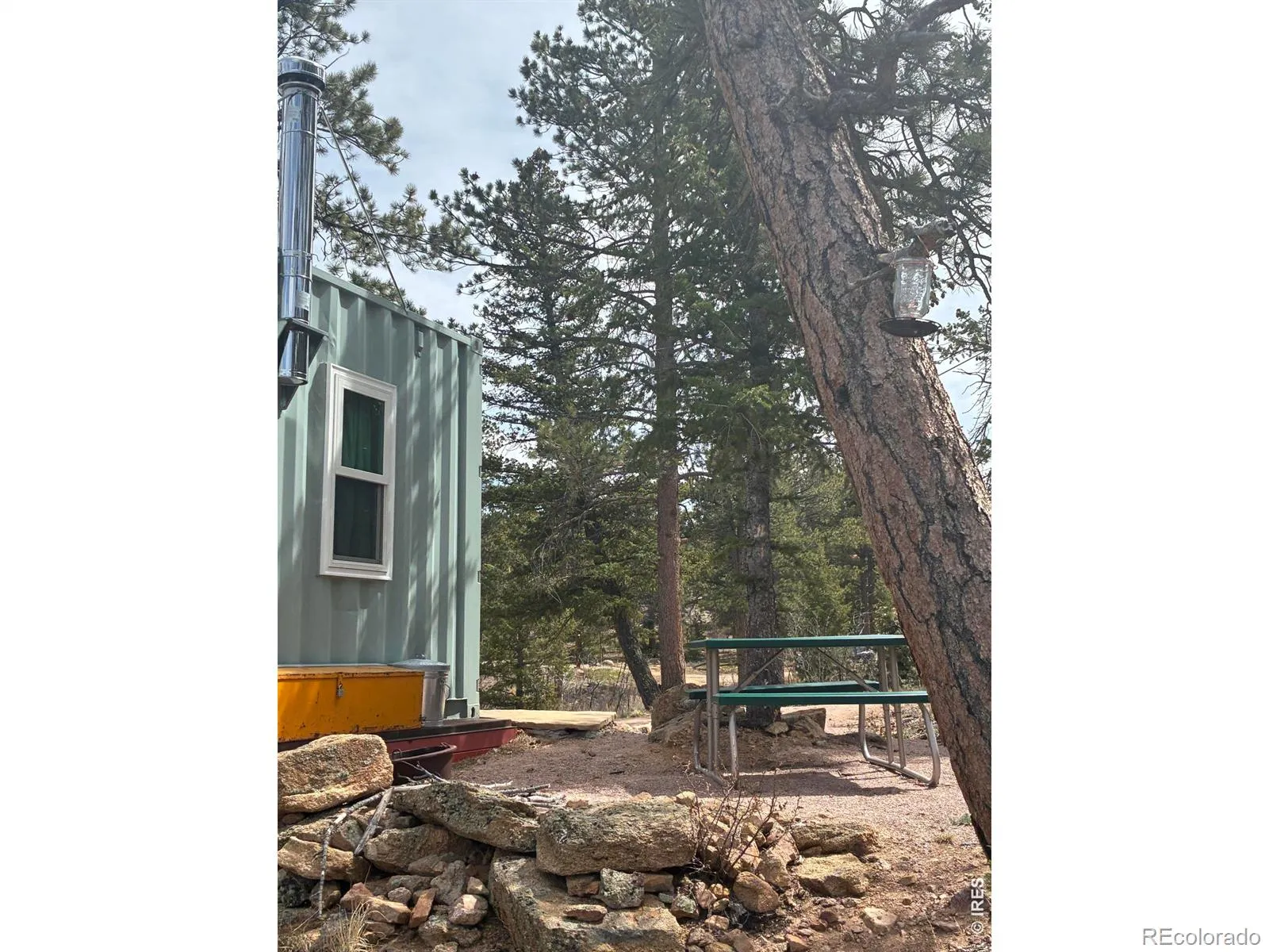 SOLAR POWERED, STEEL CONTAINER CABIN near one of Red Feather’s most beautiful lakes! This tiny home has 160 sq ft, kitchen, sleeping quarters, and a Sun-Mar compostable toilet. Two solar panels provide for your basic electric needs. The two sliding patio doors frame the view of Nokomis Lake and surrounding forest. Add a deck at these doors to complete the package. Enjoy the outdoor dining space right out the front door. Glass front, wood burning stove is located in kitchen area and easily heats this cabin. Ceilings are almost 9′ and help create an open feel. Canoe and gear included. Great access to this one..no four-wheelers required. This beautiful lot has been surveyed (Land Survey Plat). All construction has been permitted and signed off on by Larimer County (survey and building docs are available for inspection). These turn-key cabins rarely come on the market, especially at this price. Come up and check it out!