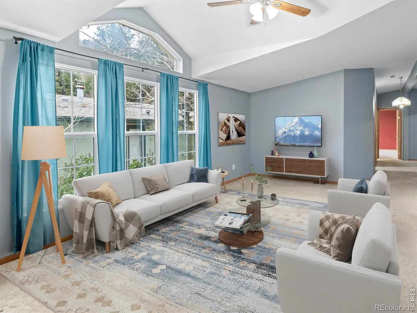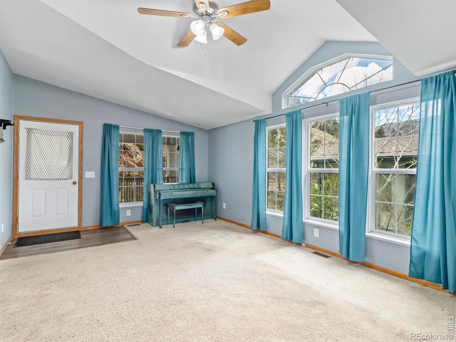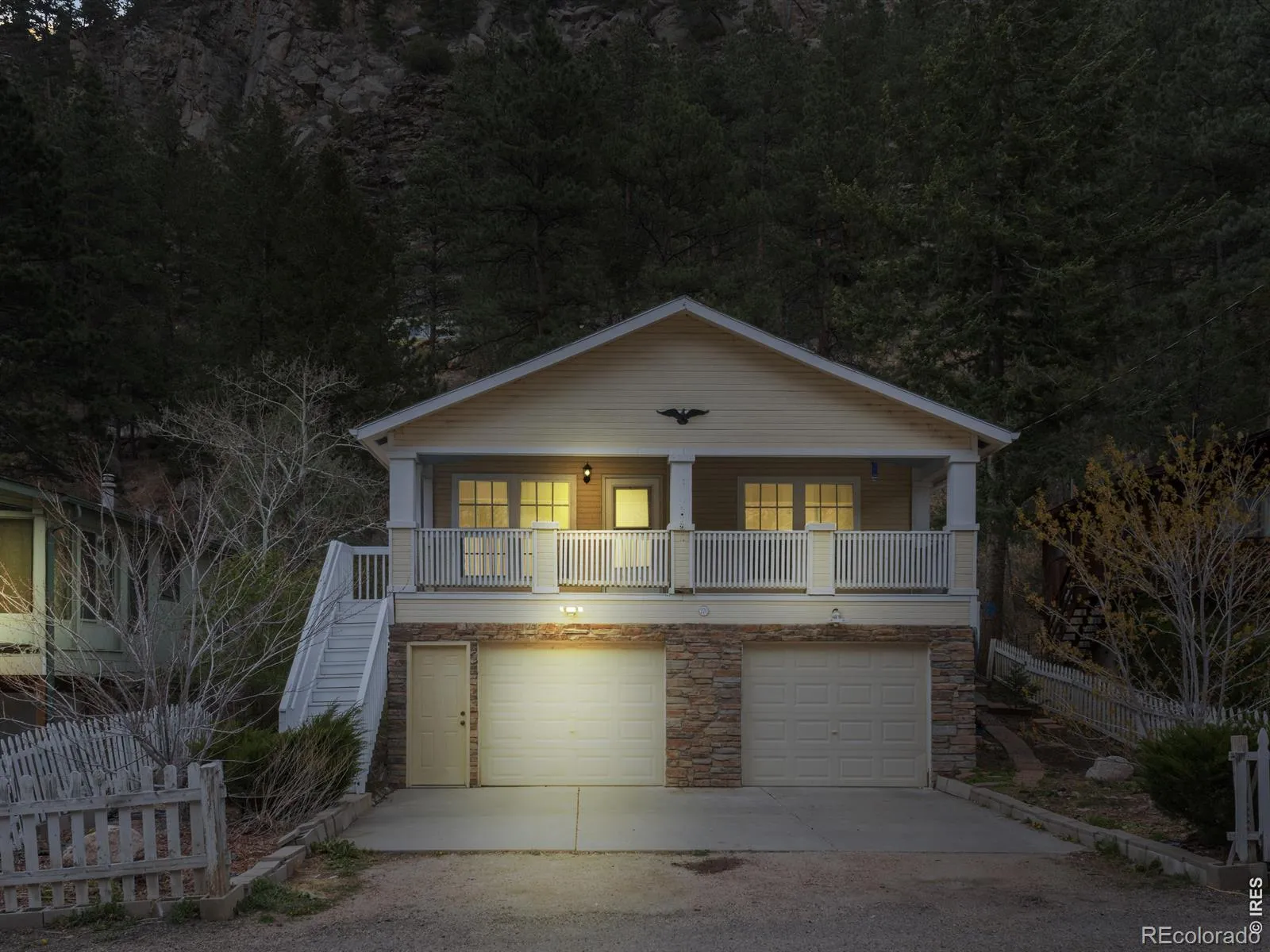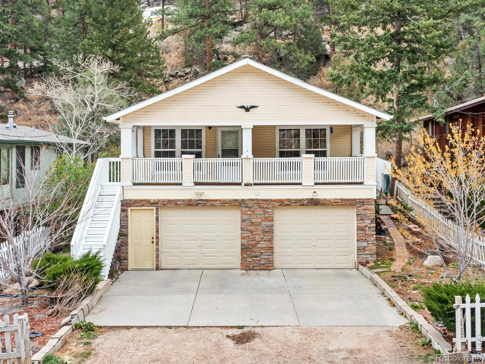 Don’t miss this rare opportunity to own a mountain home set right on the Big Thompson River. Fish from your own property or simply relax and enjoy the stunning river and mountain views from the expansive covered front porch. This inviting home offers convenient single-level living positioned above the oversized two-car garage, complete with 13×12 storage room and 13×13 workshop area. The living room features vaulted ceilings and an abundance of windows that fill the space with natural light, creating a bright and airy atmosphere. The kitchen has stainless steel appliances, a gas range and breakfast bar plus separate dining room. The generous primary suite includes a five-piece bath with large soaking tub and walk in shower and spacious walk-in closet. With three bedrooms and two full bathrooms plus laundry room, this property is ideal as a year-round residence or a peaceful second home, all within easy reach of Loveland and Estes Park. Nestled in the mountains along the Big Thompson River, this home invites you to embrace riverfront living-bring your fly rod and kayak and enjoy the serenity, recreation and beauty right outside your door.