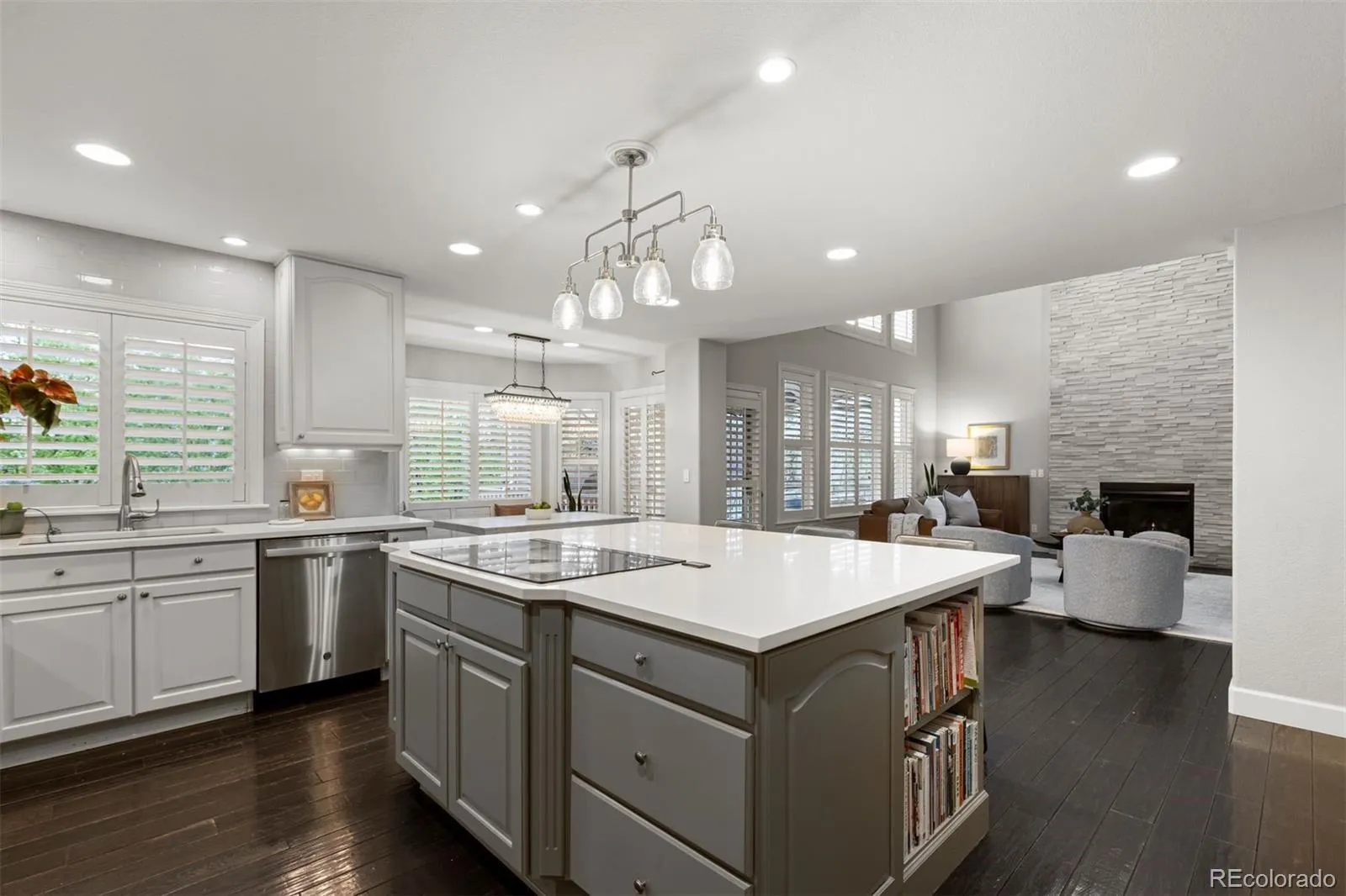 Nestled within the prestigious gated community of Heritage Hills in Lone Tree, this elegant two-story residence offers a perfect blend of luxury, comfort, and thoughtful design. Built in 2002 and recently updated, this beautiful home features just over 4,400 square feet, including five spacious bedrooms, five bathrooms plus a main floor office with custom built-ins, and a professionally finished basement designed for both relaxation and entertaining. Flooded with natural light, the main level boasts formal living and dining areas that flow seamlessly into a warm and inviting family room anchored by a stunning floor to ceiling gas fireplace with custom wrapped, stacked stonework. The chef’s kitchen is a dream, complete with quartz countertops, an expansive seamless center island with new cabinets and shelves, new appliances, new hardware, and a semi-custom banquette in the breakfast nook, ideal for everyday living and entertaining. In addition to the gorgeous kitchen upgrades, this home also boasts new paint throughout the first and second floors, wide plank true oak hardwood floors, new crown molding, new base trim, gorgeous wood shutters, and new exterior lighting. Outside is equally impressive, with a large, covered deck and mature landscaping, providing a peaceful setting for dining or relaxing. Incredibly maintained, the home also includes a three-car garage as well as access to phenomenal community amenities such as pools, tennis/pickleball courts, a clubhouse, and HOA orchestrated events for the community. Within walking distance to grocery stores, the library, the rec center, the arts center, award winning schools, as well as hiking and biking trails, this home also provides easy access to I-25 and C-470, as well as the Lone Tree light rail station and Park Meadows Mall. Convenience, security, comfort and amazing quality of life make this home a must see!