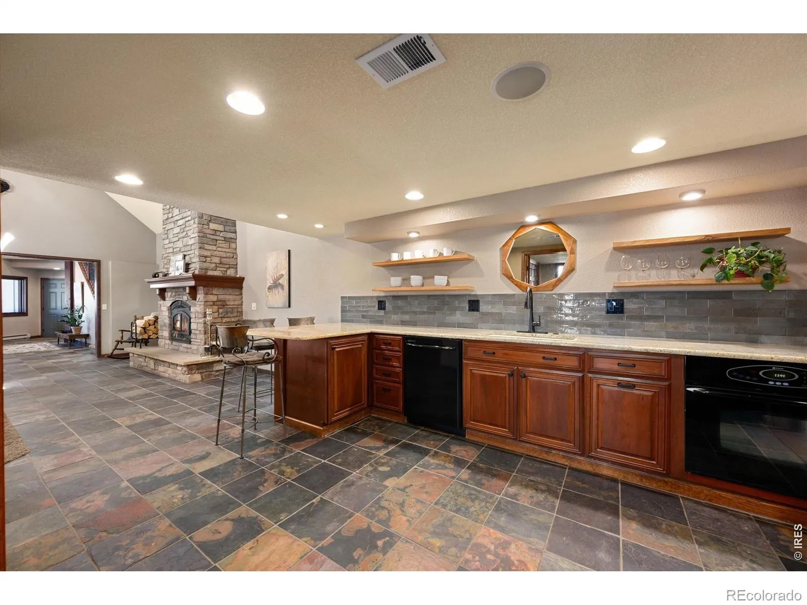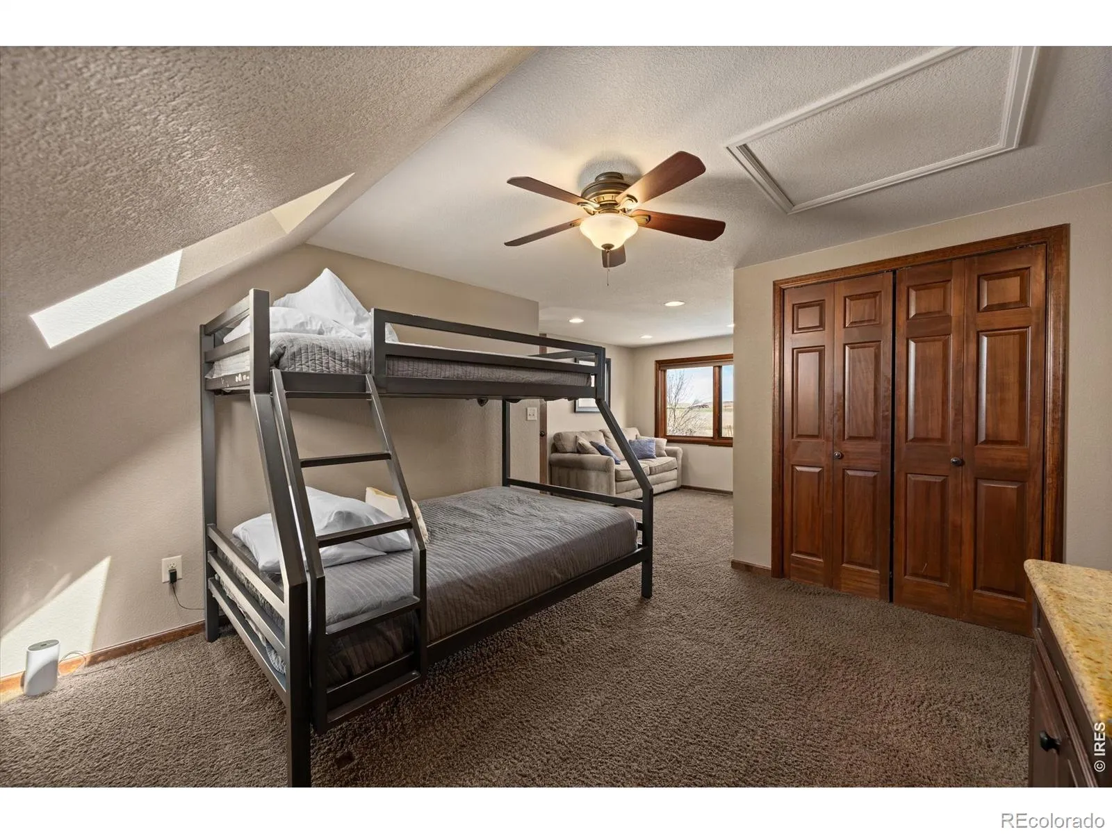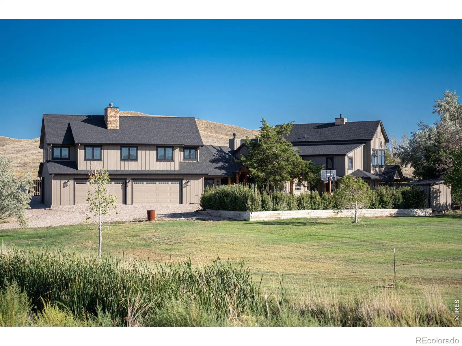 Set on 40 acres in Northern Colorado, this beautiful rural estate combines a 4,843 ft main home and an additional attached 1352 ft 2-bed + office apt that offers potential for rental income, guest quarters, or multi-generational living. With 28 irrigated acres, the property provides reliable water access through a unique combination of district water for the home, well water for landscaping/garden, and irrigation water for the acreage. A stream runs through the property as well! Inside, both homes are well-designed for everyday living and entertaining. With 7 bedrooms, 2 offices, additional flex spaces, and 5 bathrooms, the layouts offer incredible flexibility to meet your needs. In the main home, you will find an office, separate media room with wet bar, a secondary kitchen enhancing functionality for hosting, and a family room with a wood-burning stove. Additionally, a huge vaulted great room anchors the home, featuring a 2-sided gas fireplace connecting the spacious kitchen with large island perfect for hosting. Washer and dryer hookups on both levels add everyday convenience, and a private sauna creates a relaxing retreat. Large windows capture unobstructed Front Range views, filling the home with natural light and Colorado’s signature backdrop. A whole-house propane-powered generator, two tankless water heaters, and two duel system heat pumps/furnaces also make this home efficient and reliable. Outside, multiple patios, basketball court, and outdoor living areas provide space to relax, play and entertain. The property also includes a massive 1,500+ ft garage for vehicles, equipment, or workshop needs. The acreage is set up for cattle, has a chicken house with electricity, a tilled/irrigated garden area, as well as potential for building a barn for equestrian-lovers. With open skies, Front Range views, flowing water, irrigated acreage, flexible living spaces and close access to Fort Collins, opportunities abound to create the living experience of your dreams.