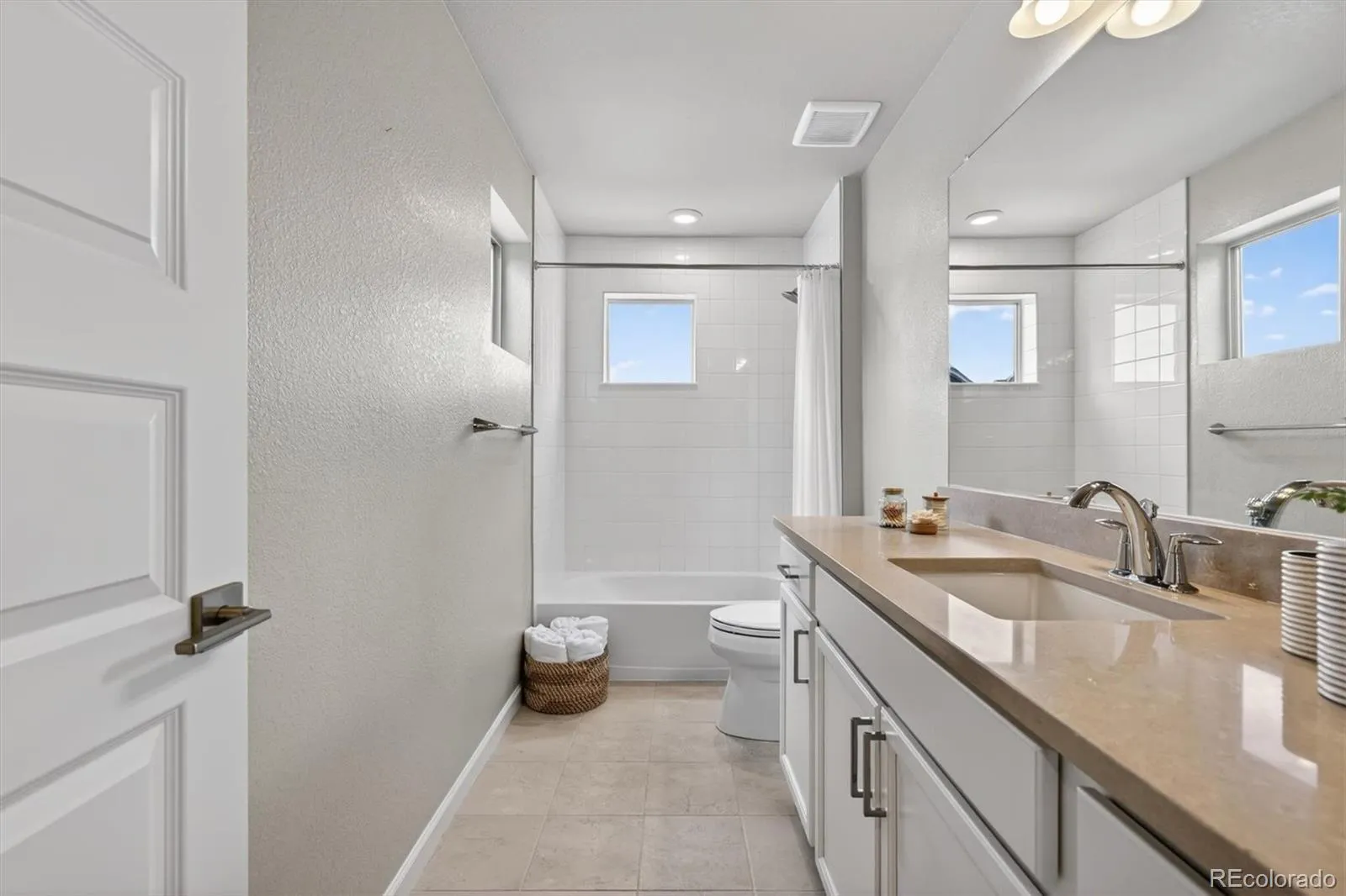 Stylish kitchen with stainless steel appliances and quartz countertops that flow seamlessly into the living space.. Move-in ready with two spacious bedrooms, three bathrooms, and a bright, airy feel in one of Superior’s most desirable neighborhoods. Welcome to 120 E Douglas St, a beautifully maintained 2-bedroom, 3-bathroom home offering 1,138 square feet of thoughtfully designed living space. From the moment you step inside, you’re greeted by abundant natural light, warm wood flooring, and a clean, modern aesthetic that creates an inviting and comfortable atmosphere. The main level features an open floor plan ideal for both everyday living and hosting, with a spacious living area that connects effortlessly to the kitchen and dining space. The kitchen is well-appointed with sleek cabinetry, stainless steel appliances, and generous counter space with seating—perfect for casual meals or gathering with friends. Upstairs, both bedrooms offer privacy and comfort, each including their own ensuite bath. Convenient upper-level laundry add to the home’s functional layout. A main-level powder room provides added convenience for guests. Situated on a desirable corner lot, this home enjoys extra natural light and a sense of openness rarely found at this size. The low-maintenance exterior and surrounding community make it easy to enjoy the Colorado lifestyle, with nearby parks, trails, shopping, and dining just moments away. Complete with an attached garage and modern systems throughout, this home is an exceptional opportunity for those seeking style, simplicity, and location in Superior.