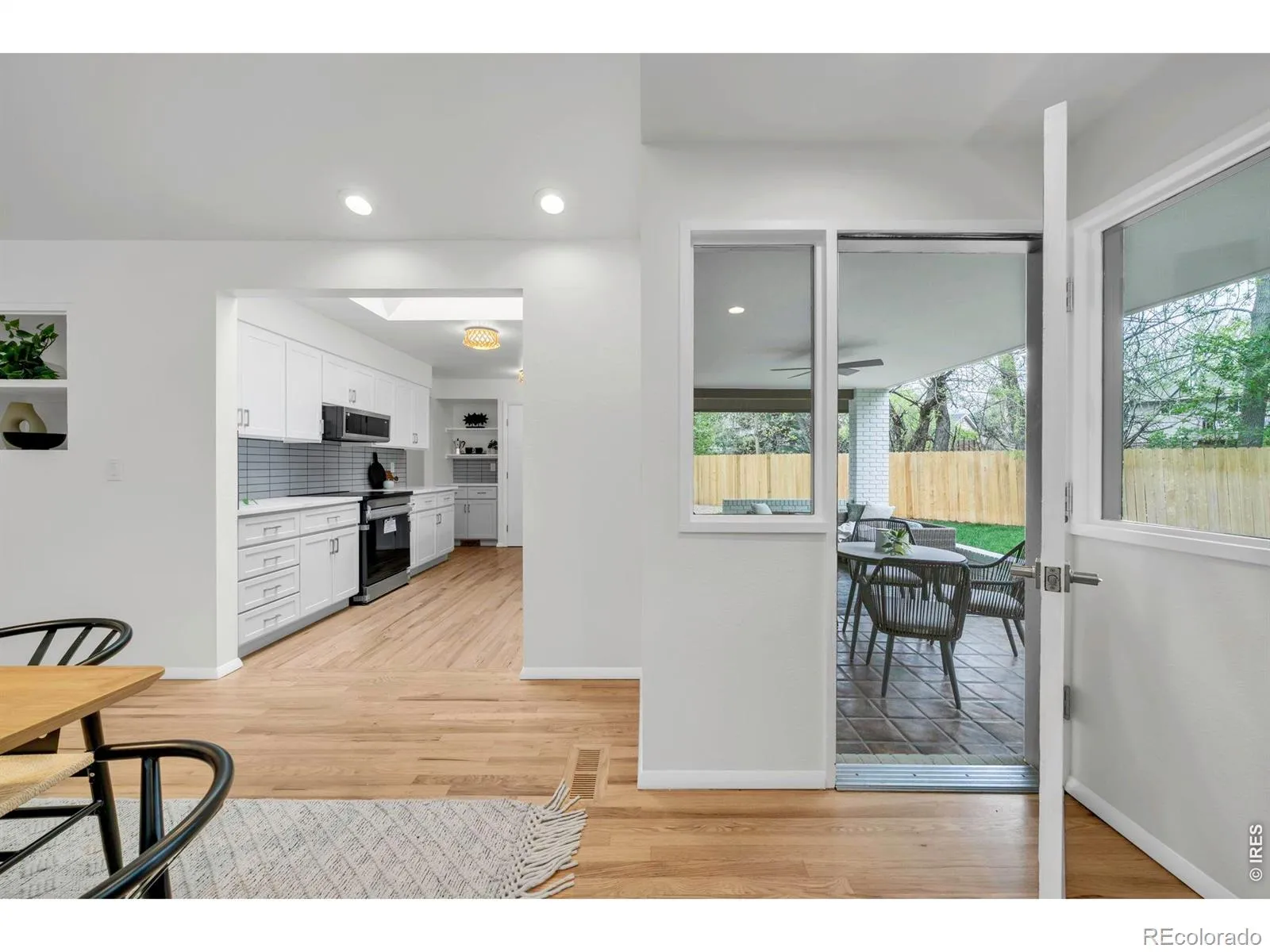 Once in a great while, a location comes along that stands out as truly special. Nestled on the quietest of cul de sacs and with a tucked away neighborhood park and playground steps away. An almost 12,000 sq ft flat lot surrounded by a lush tree canopy with the Farmers Irrigation canal running along the back of the site. Custom seventies ranch refreshed and ready to move in! New kitchen with quartz counters, new appliances, designer lighting, and special touches. Vaulted ceilings, skylights, hardwood floors. Coveted main floor primary bedroom with dual closets, a private refreshed bath, window seat, and vaulted ceiling with a wall of south facing glass. Separate wing for secondary main floor bedrooms with laundry and shared bath. Covered back patio – private and ideal for al fresco dining and fun. Expansive lawns for outdoor games and relaxation. Daylight basement with south facing windows that flood the cozy rec room with sunlight. Stone fireplace and wet bar downstairs – great for parties, movies, gaming. Fourth bedroom and full bath also downstairs. Oversized and extra deep two car garage – plus additional outdoor storage area adjacent to garage – ideal for your outdoor toys and gear. The neighborhood is friendly and quiet with three parks and two playgrounds. A tucked away gem in North Boulder!