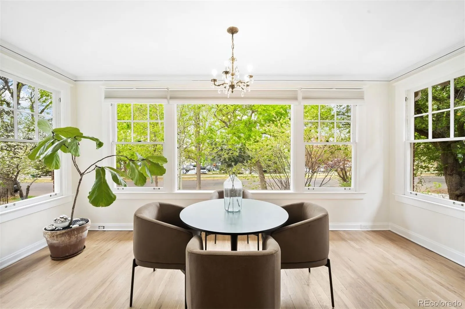 From the moment you arrive, this home leaves an impression. With its Mediterranean Revival influence, distinctive red tile roof, and timeless brick exterior, the curb appeal is both striking and enduring, a fitting introduction to what lies within. Homes like this are rare, not just for their size, but for the feeling they create. With over 3,800 finished square feet, the scale is hard to replicate and offers a sense of longevity that’s increasingly difficult to find. The rooms are generous, the ceilings tall, and sunlight pours through oversized windows, casting a warm glow across original hardwood floors. There’s a quiet sense of history here, an intangible character you can feel but can’t quite define, the kind of home that quietly becomes part of your story. Upstairs is the ideal layout, where four true bedrooms are paired with two full bathrooms, including a private primary suite with its own ensuite bath. Storage in the primary is exceptional, with four separate closets and original built-in linen cabinetry. The finished basement adds meaningful additional living space with an extra bedroom, full bathroom, and a comfortable secondary living area with its own fireplace, along with a separate entry that creates flexibility for guests, work, or simply spreading out. Three fireplaces are thoughtfully placed throughout the home, adding ambiance and charm across all levels. Details like the two-story laundry chute and vintage wall safe create moments of discovery that newer homes simply don’t have. Lovingly maintained and thoughtfully updated, including the installation of high-velocity central air conditioning serving the upper level, this is a home that has been carefully cared for and is ready for its next chapter. All set in one of Denver’s most beloved neighborhoods, and just moments from the shops and dining of 9th & Colorado, Trader Joe’s, and Cherry Creek.