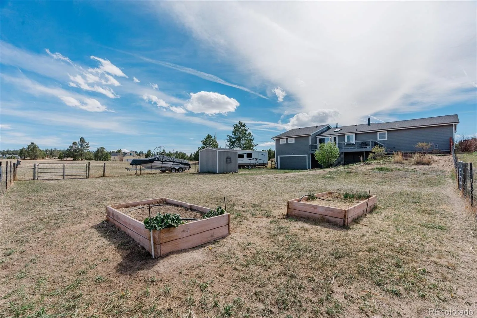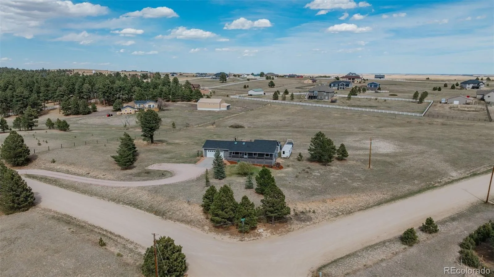 Welcome to your peaceful country retreat in Elizabeth, Colorado! Just 200 yards off pavement and situated on 5 usable acres, this well-cared-for ranch-style home offers the perfect blend of privacy, space, and potential. Whether you’re looking for room to spread out, space for animals, or a multi-generational living setup, this property has so much to offer. The home’s layout offers comfort and functionality with a welcoming feel throughout. The main level features 2 spacious bedrooms, full bathroom, the primary bedroom & bathroom, along with the laundry room, kitchen and dining room. Newer interior paint and newer stainless steel kitchen appliances. The oversized 2-car garage on this level offers plenty of space for vehicles, tools, or toys. Downstairs, the walkout basement is a blank canvas with a finished bathroom already in place, its own separate entrance and a 2 car garage—making it ideal for adding a mother-in-law suite, rental unit, or expanded living space. 8×10 storage shed, small fully fenced yard, new sewer line from house to tank and newer roof. This one is a must see! The recent community vote was in favor of dissolving the community covenants. It is a multi-step process and the Board is working through each phase. Please visit the community website for additional information.